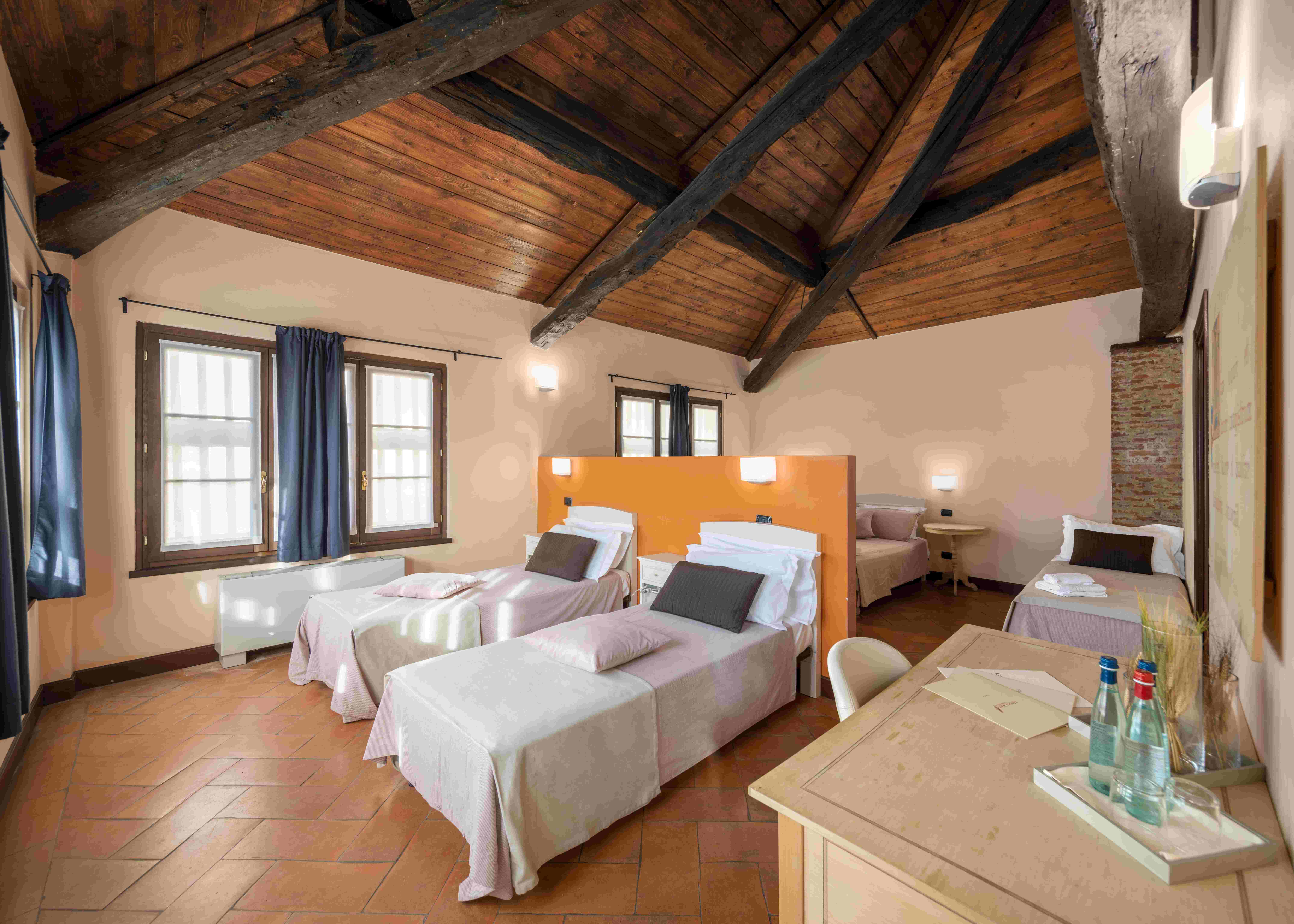 Camere moderne, ricavate nelle antiche stanze dei contadini. L'Hotel un tempo era lacascina che coltivava derrate alimentari per l'adiacente Abbazia di Morimondo. La vista di queste camere è nella piazza centrale o nel cortile interno privato. Il recupero degli antichi soffitti e di antichi armadi rendono queste camere accoglienti e confortevoli.