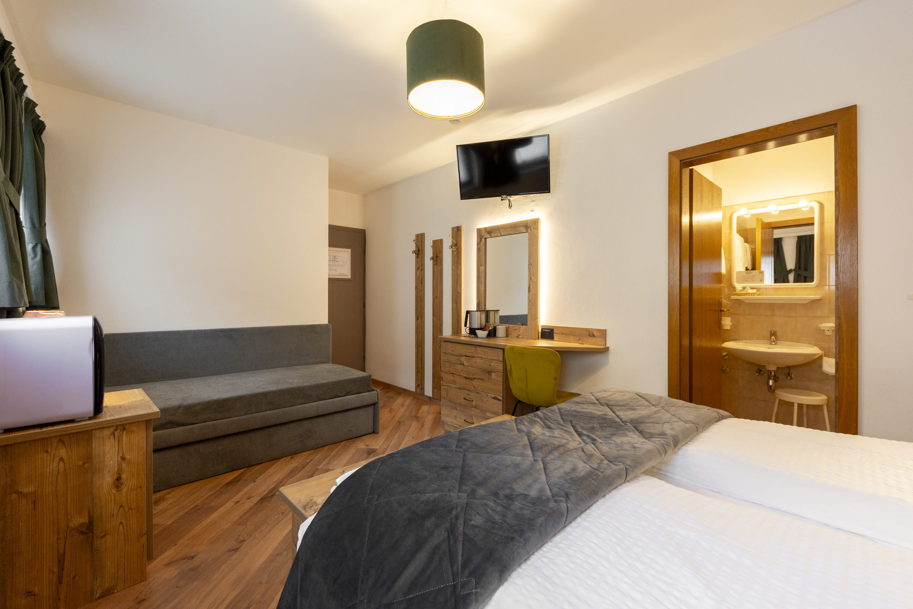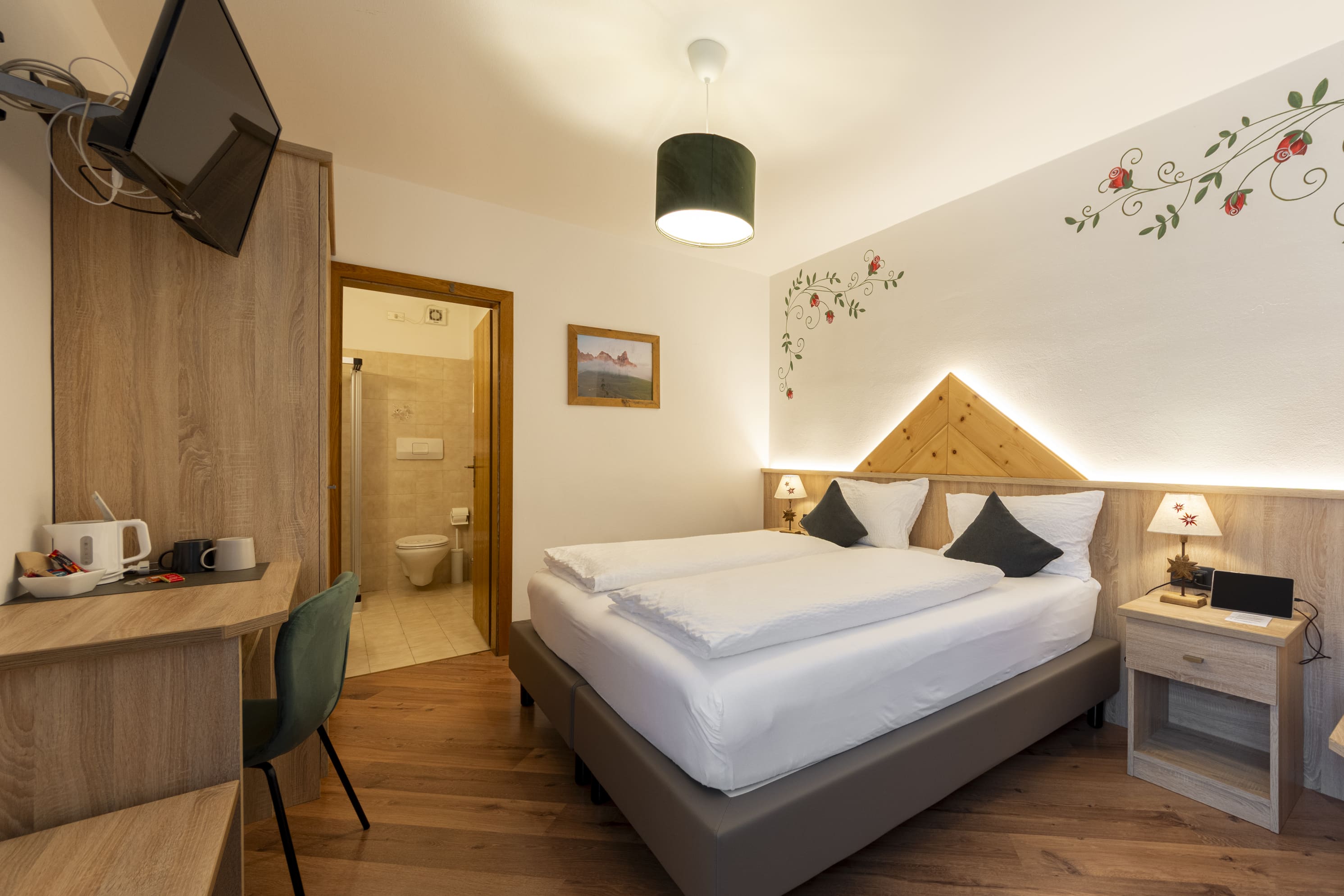 Alcune dotate di balcone, sono inoltre fornite di scrivania per eventuali necessità lavorative e un bagno con set di cortesia. Sia che tu sia in viaggio per lavoro o per piacere, le nostre Dolomites Room ti faranno sentire come a casa.