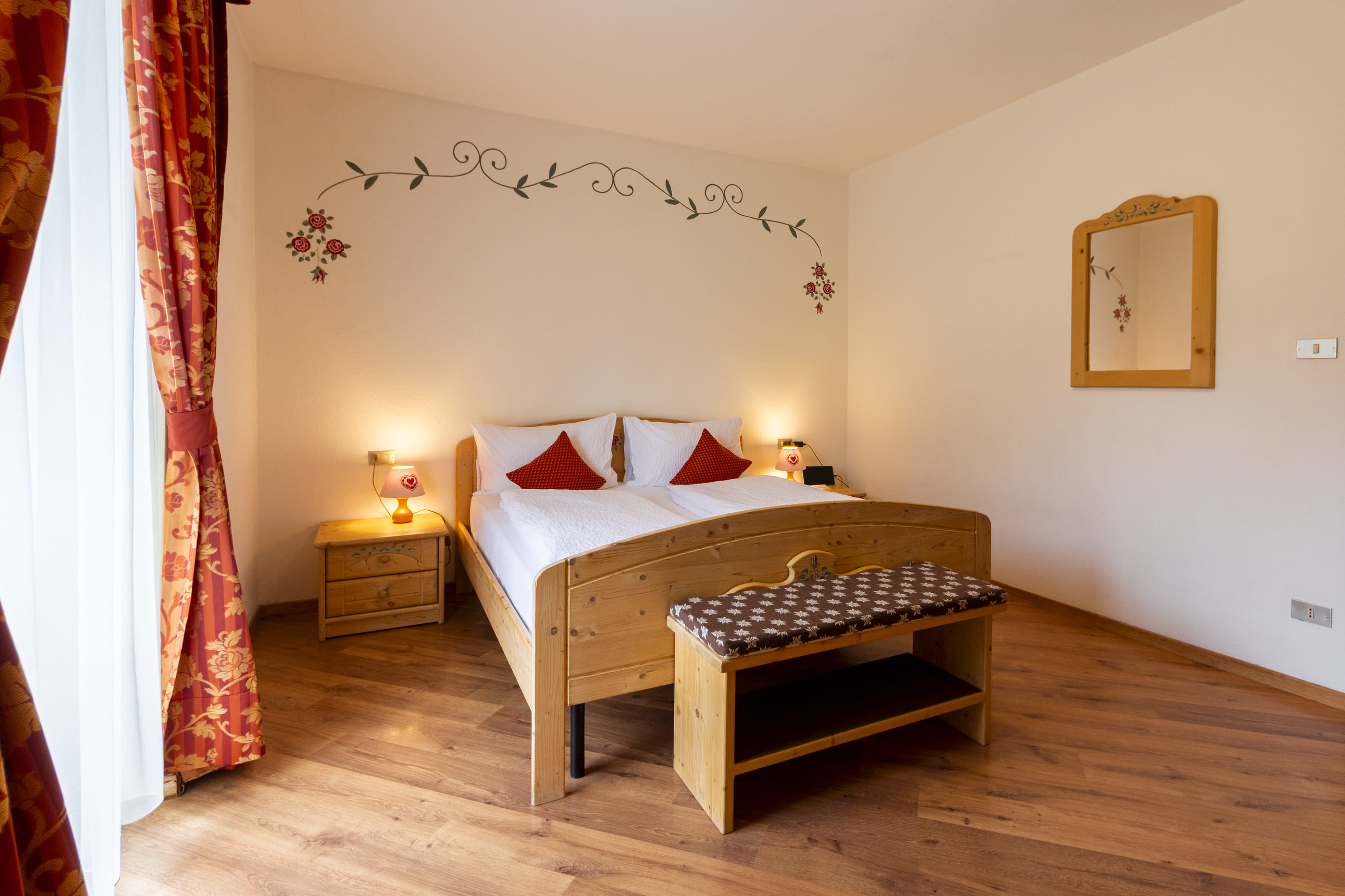 Dalle finestre della camera, potrai ammirare la magnifica vista delle Dolomiti. Questo panorama straordinario ti accompagnerà per tutto il soggiorno, offrendoti un rifugio accogliente e rilassante. Siamo certi che la tua permanenza qui sarà indimenticabile.