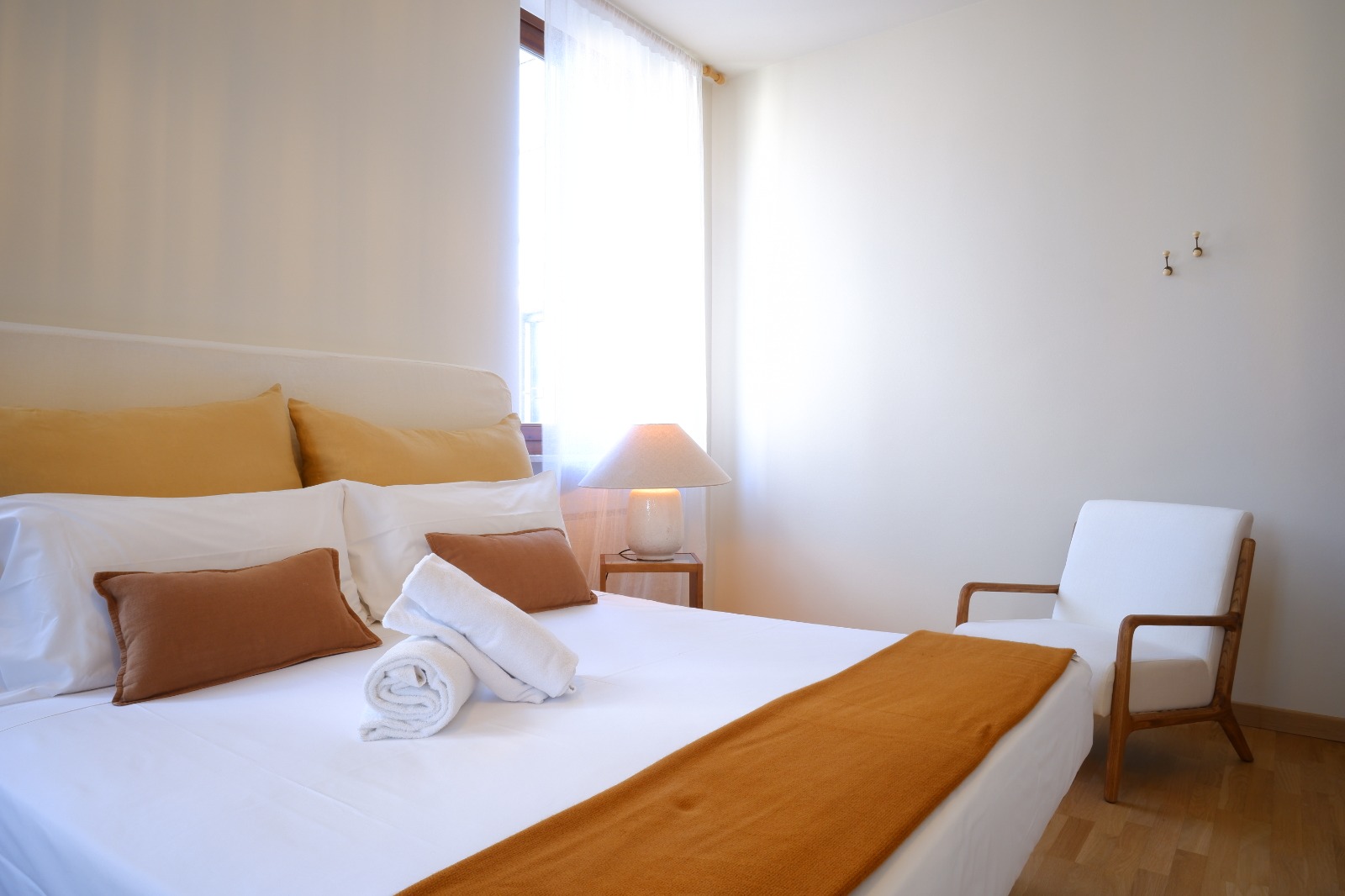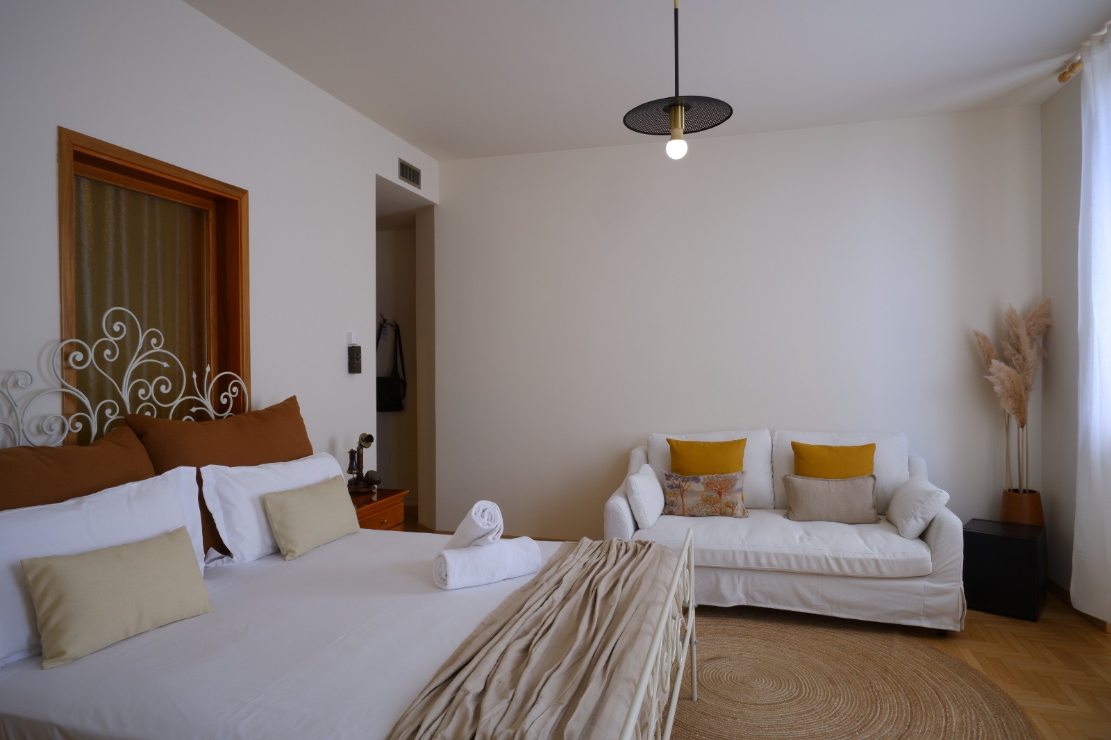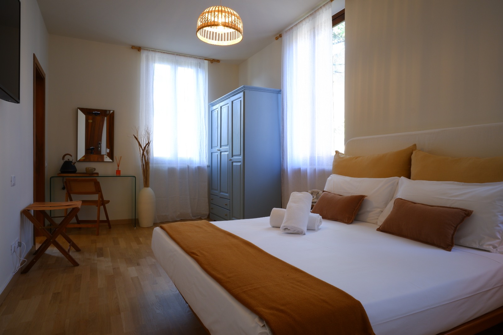 SUITE: (soggiorno 18mq, camera 20 mq, bagno 9 mq) Disponibilità molto limitata, arredamento moderno con alcune soluzioni originali, come la vasca idromassaggio che si affaccia con una vetrata sulla camera da letto.