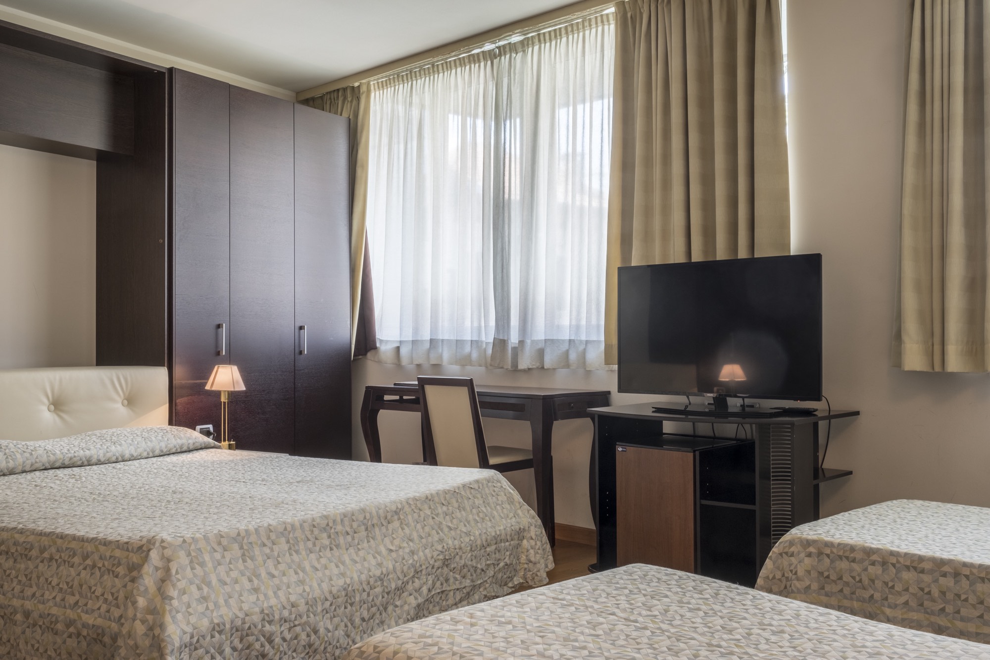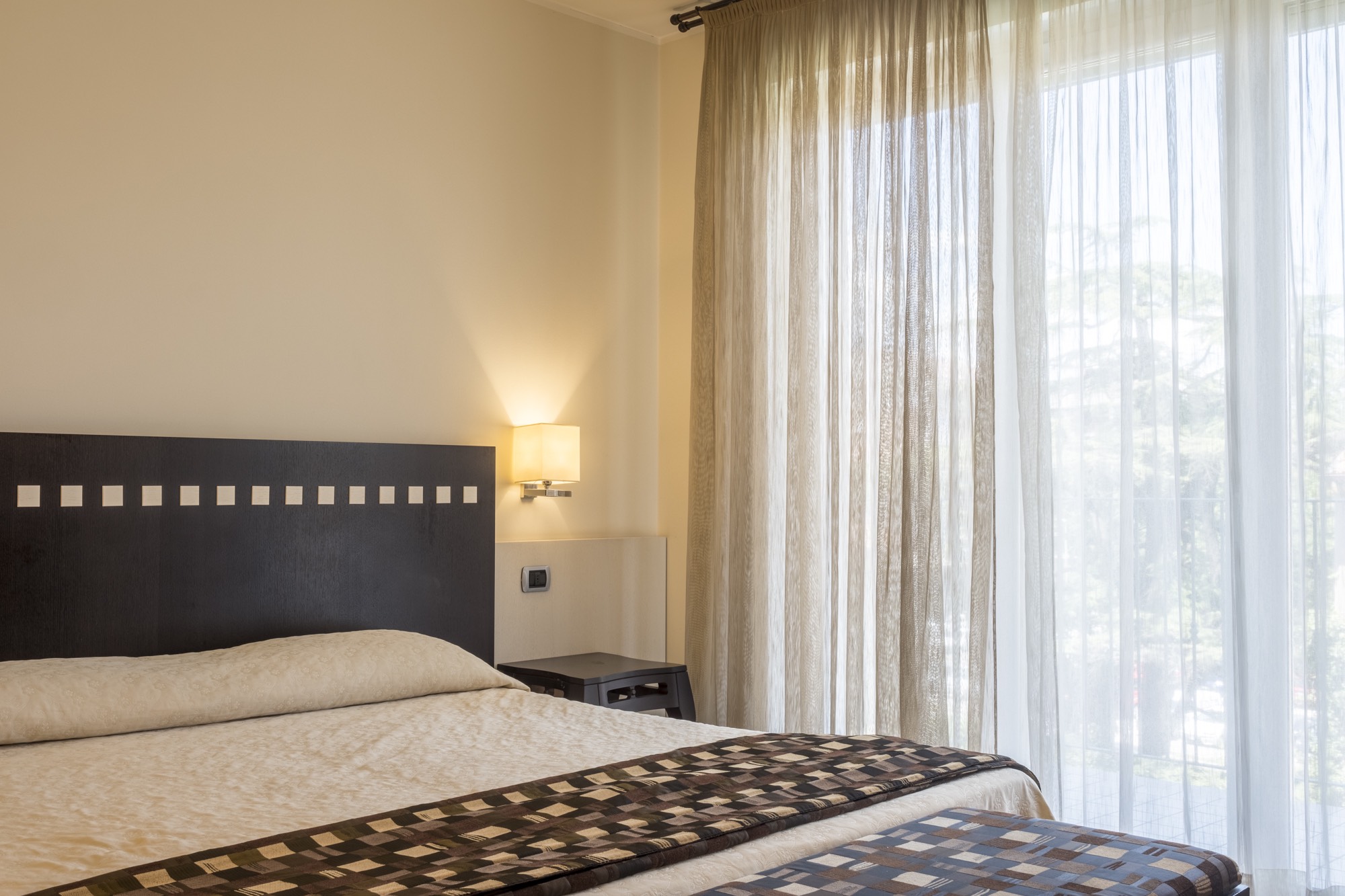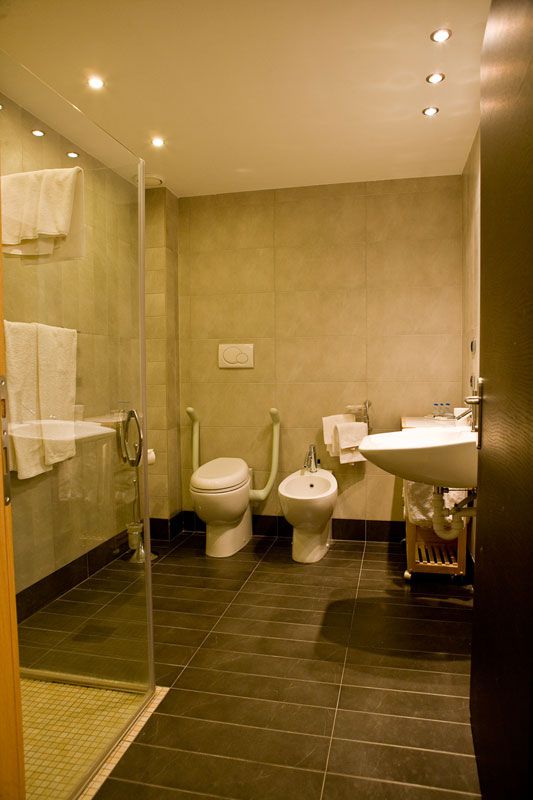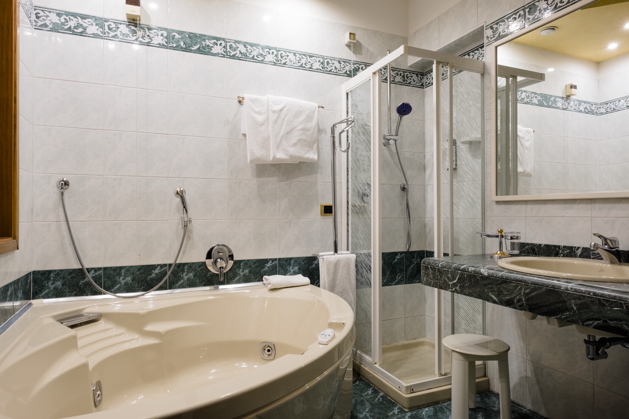 Le camere che affacciano a nord hanno un balcone. I bagni in maggioranza hanno sia la vasca idromassaggio e sia la doccia, pochi hanno solo uno dei due accessori, ma tutti sono rivestiti da un gres ceramico che incorpora un film in biossido di titanio: sotto l’azione della luce il materiale emette ossigeno, autoigienizzandosi e purificando l’aria. Una tecnologia disponibile in pochissimi ambienti a livello mondiale
