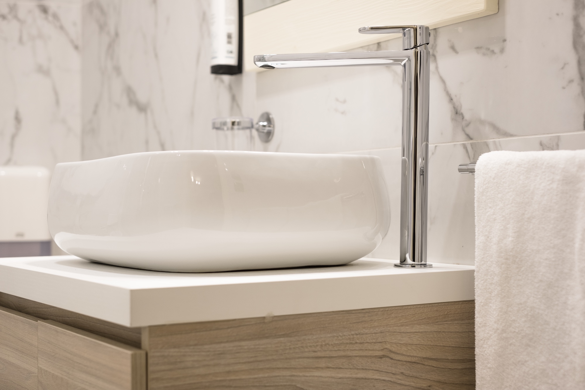 Il bagno è accessibile e dotato di doccia a filo pavimento, adotta nei rivestimenti la tecnologia “Oxygena”: un gres ceramico che incorpora un film in biossido di titanio: sotto l’azione della luce il materiale emette ossigeno, autoigienizzandosi e purificando l’aria.