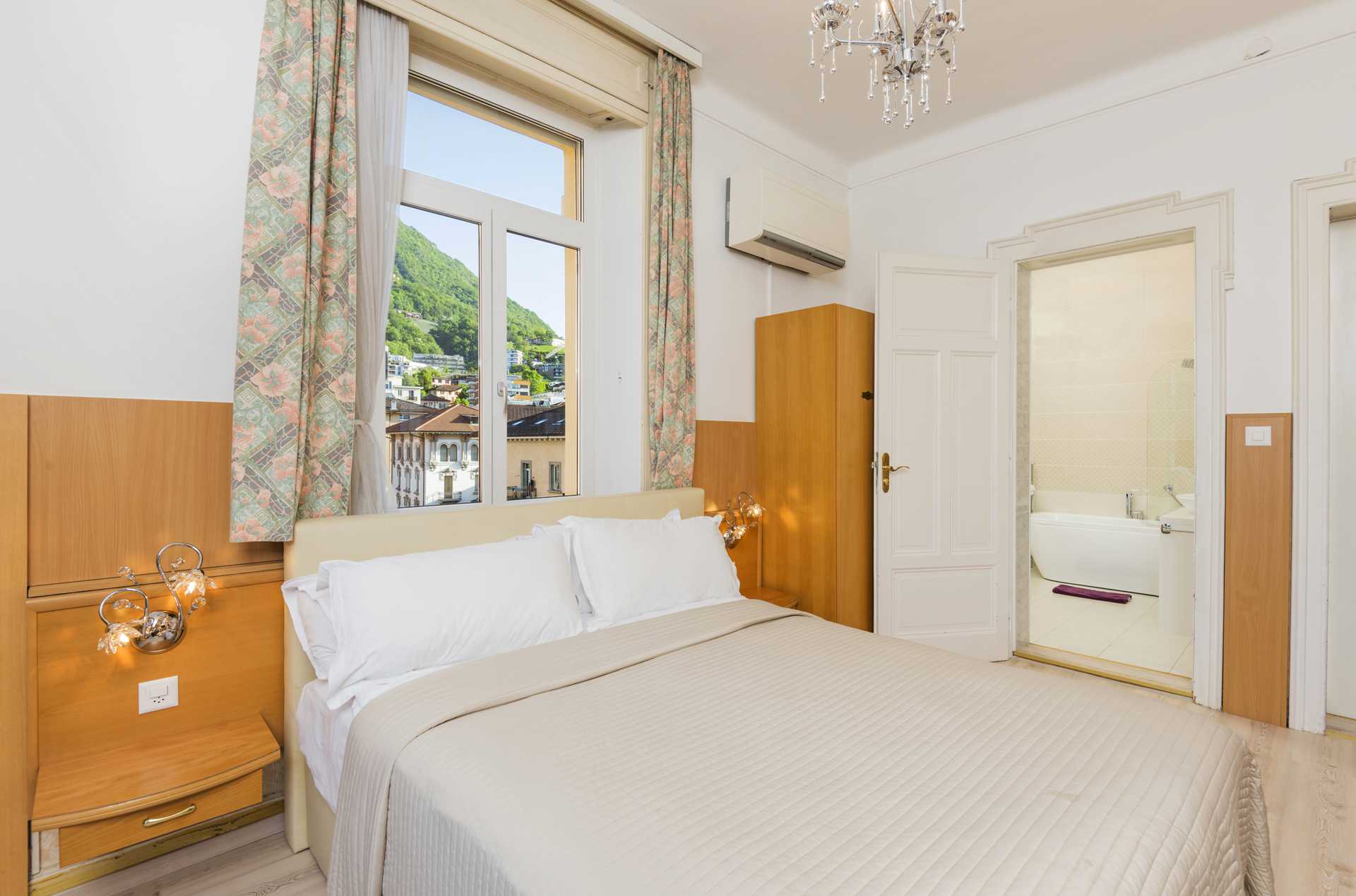 Doppia Superior Le nostre stanze Superior si affacciano sul lato opposto dell’hotel, garantendo una visuale sul comune di Paradiso e dispongono di un letto matrimoniale (larghezza 160 cm) comodini con abat-jour, tv schermo piatto, armadio a quattro ante, divano, cassaforte, bollitore e minibar.