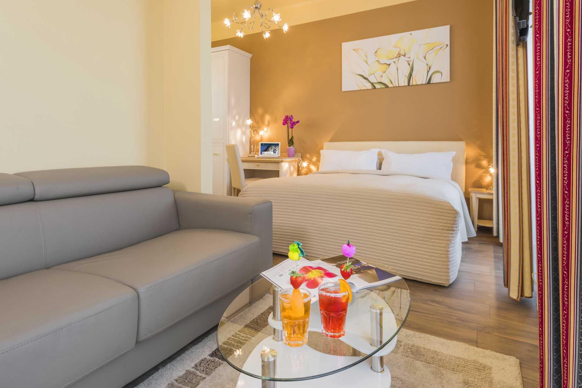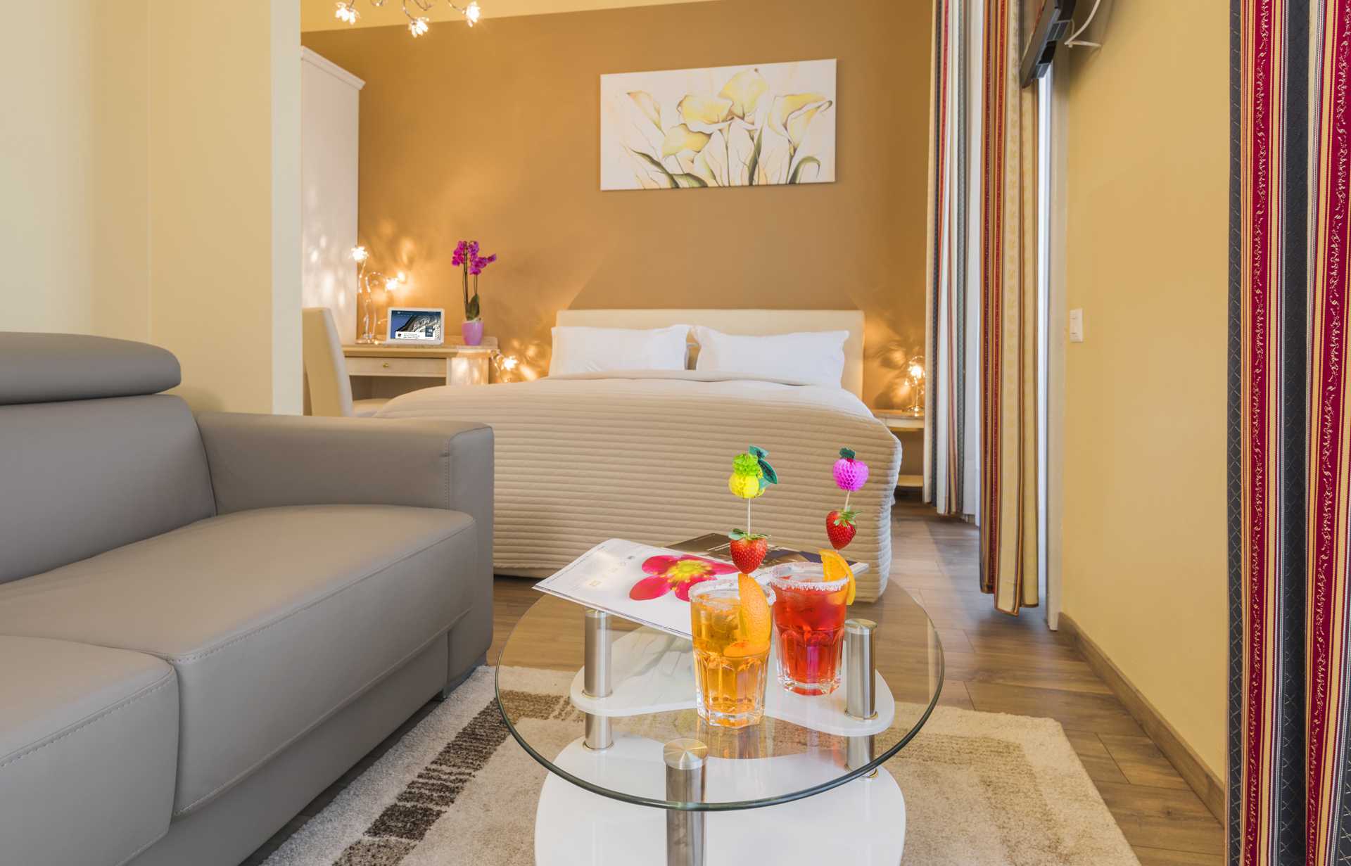 Le nostre stanze doppie si affacciano sul lato opposto dell’hotel, garantendo una visuale sul comune di Paradiso e dispongono di un letto matrimoniale (larghezza 160 cm) comodini con abat-jour, tv schermo piatto, armadio da due a tre ante, cassaforte, bollitore e minibar.