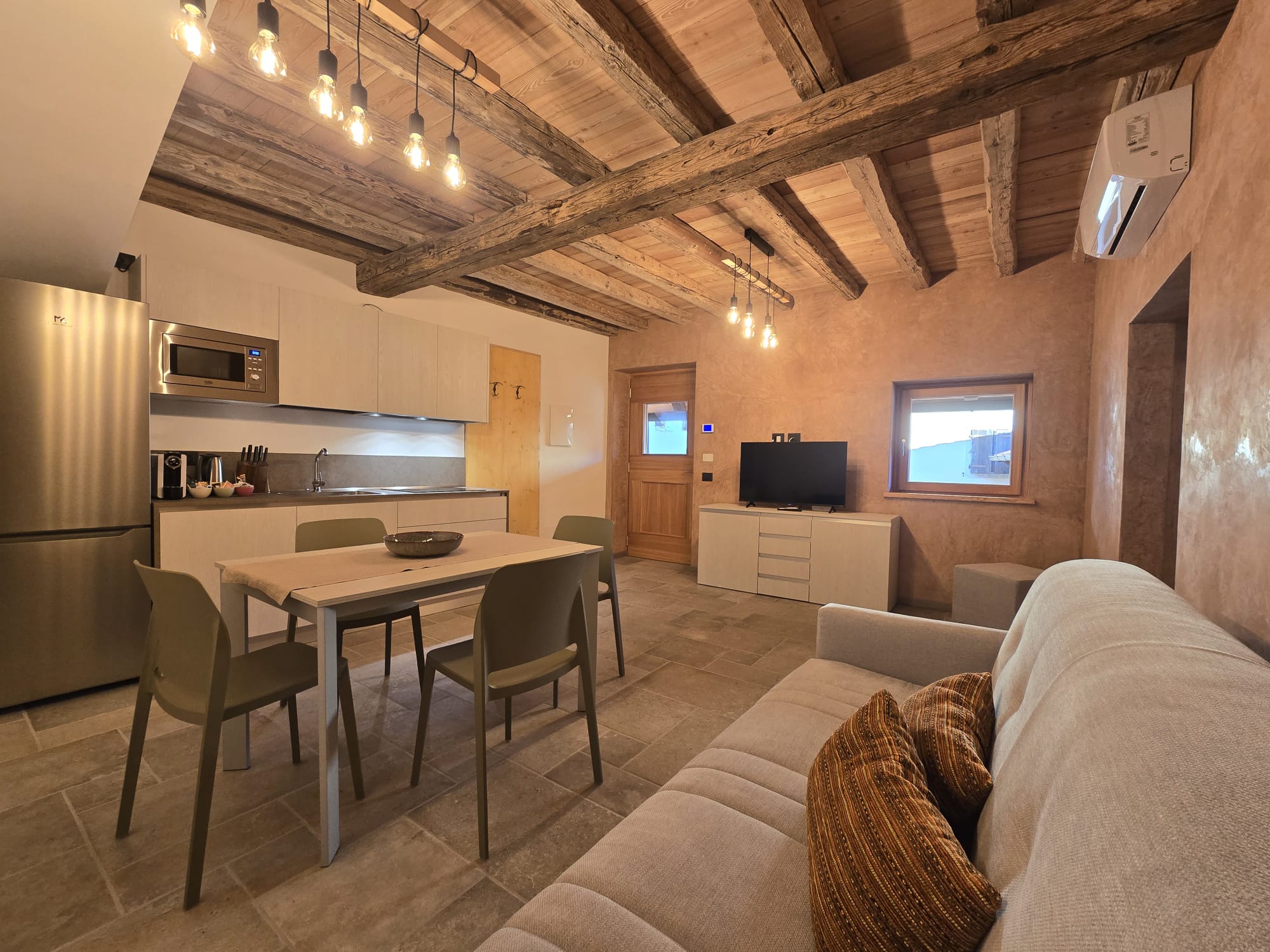 Di nuovissima ristrutturazione, l'antico stavolo è stato ammodernato con la costruzione di 2 comodi e confortevoli appartamenti costituiti da una camera da letto matrimoniale, bagno, zona giorno e cucina, completamente arredati. Il salotto ospita un divano letto matrimoniale perfetto per adulti e bambini.