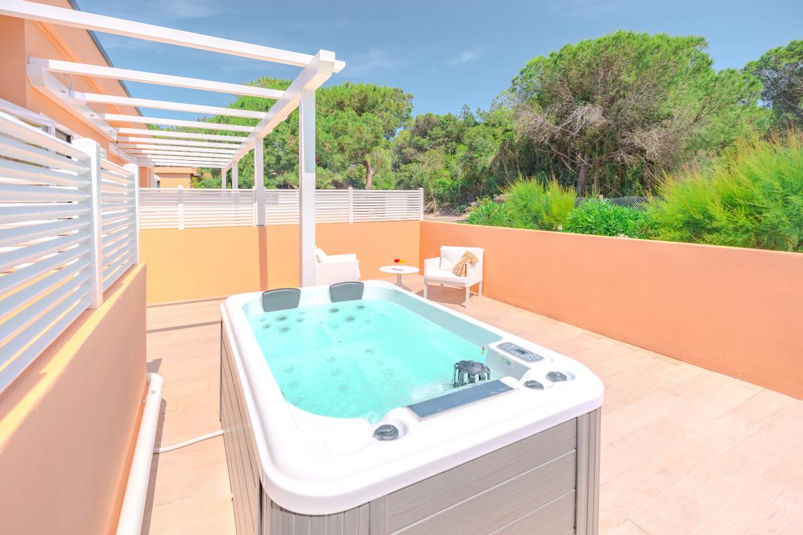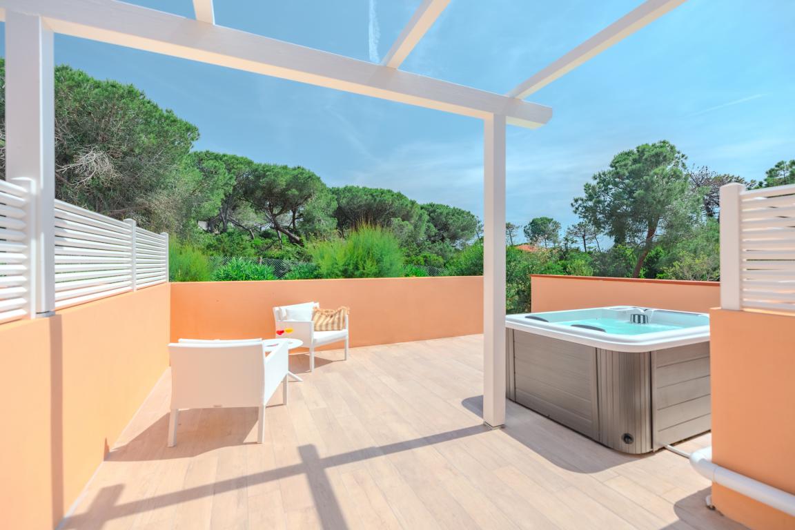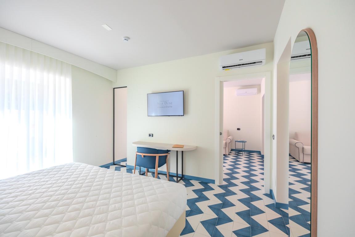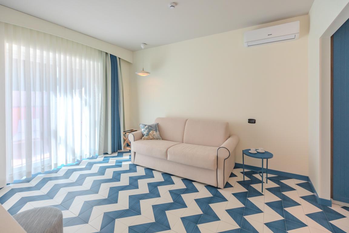 Situata all’interno di Villa Elba al piano rialzato, offre da 35 a 40 mq di spazio con ambienti separati e letto matrimoniale King Size e materasso Dorelan XXL (200x200); dispone di una terrazza privata di 30 mq dove potrai godere dell’idromassaggio ed immergerti nel benessere più totale. Nel prezzo del soggiorno avrai incluso parcheggio auto riservato e nel periodo dal 10.05 al 30.09 un grande gazebo con tre lettini e due poltroncine registe presso la nostra incantevole spiaggia attrezzata “Acacia” di fronte all’Hotel. Fuori dal periodo indicato verrà offerto un ombrellone con due lettini e una poltroncina regista.