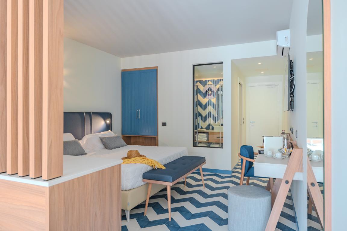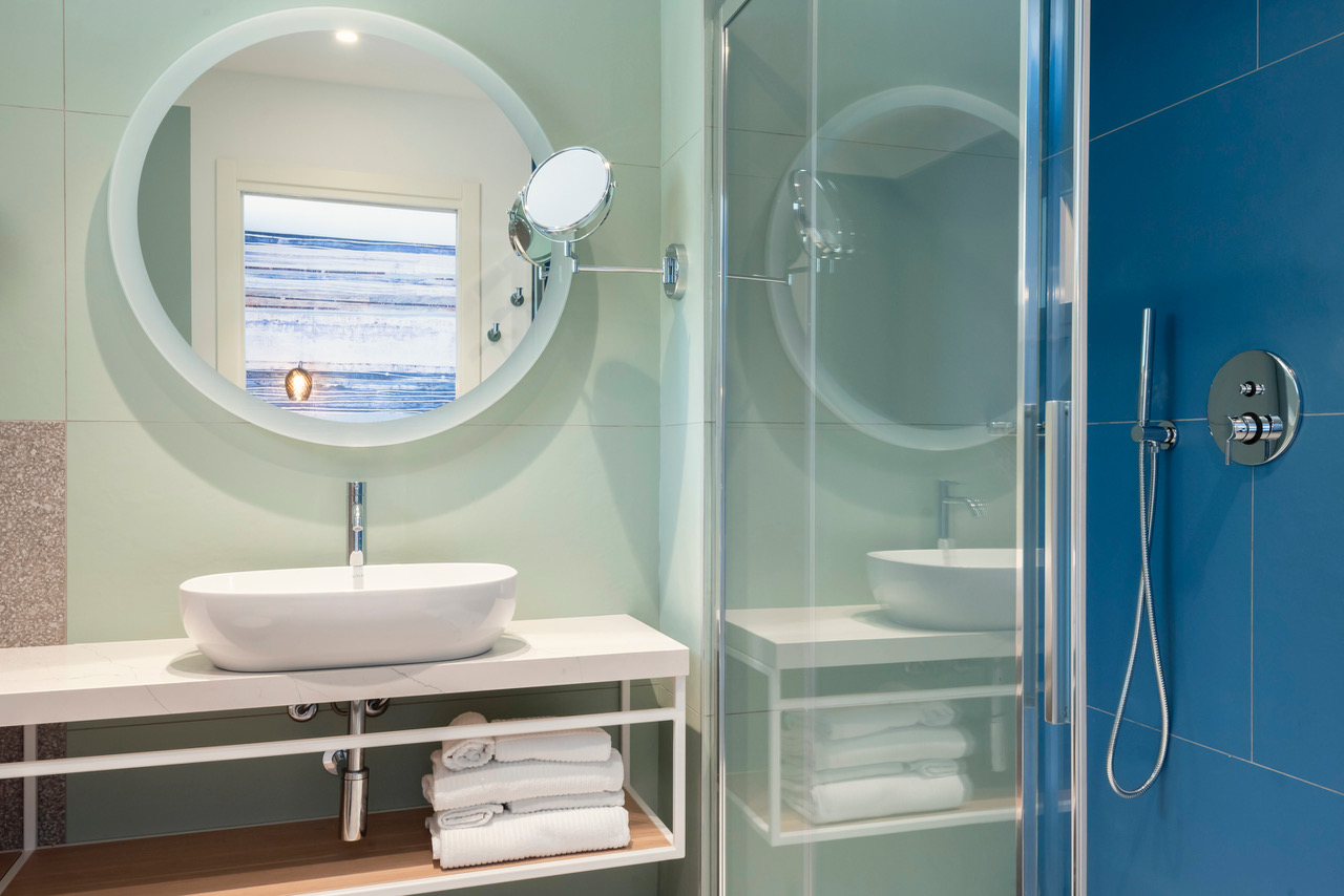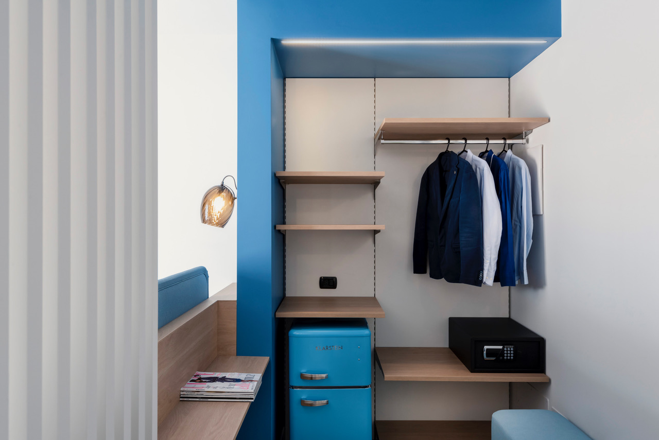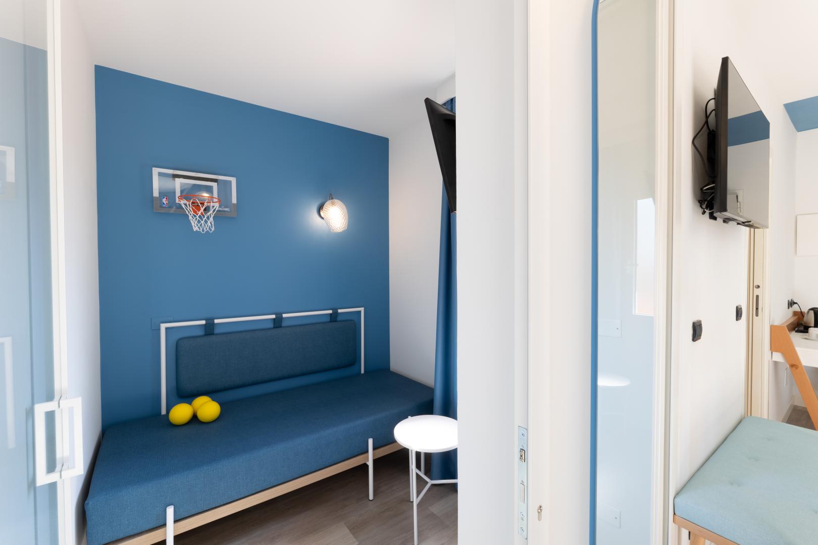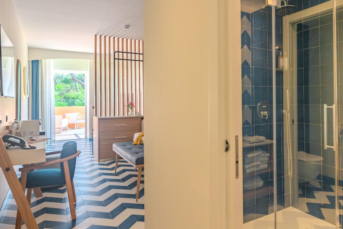 La esclusiva Superb room è stata realizzata nel 2024 dagli architetti dello Studio Bonfante nei colori bianco, blu e azzurro che trasmettono toni vivaci dal sapore mediterraneo.