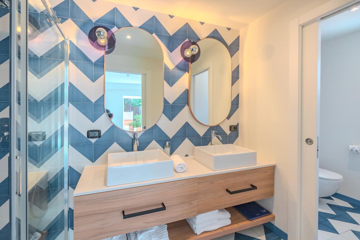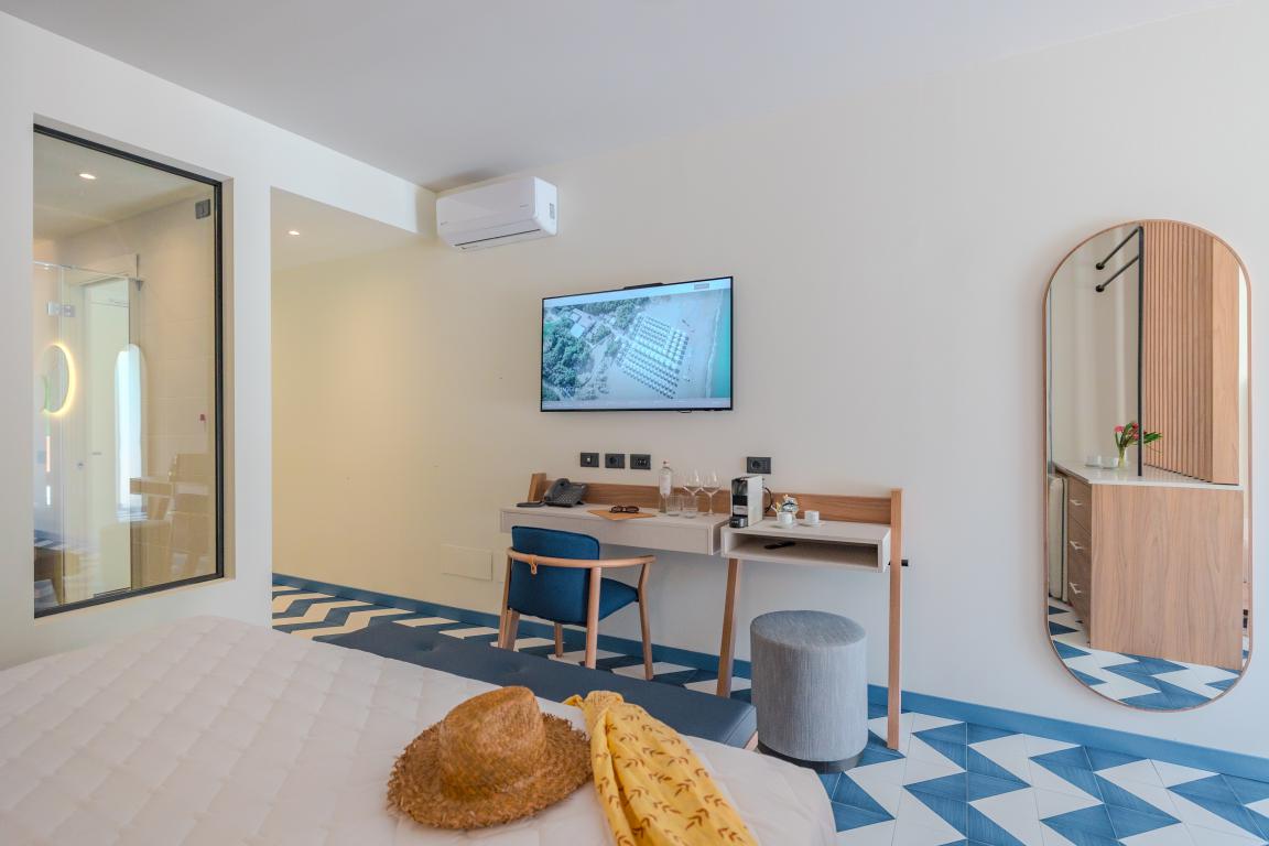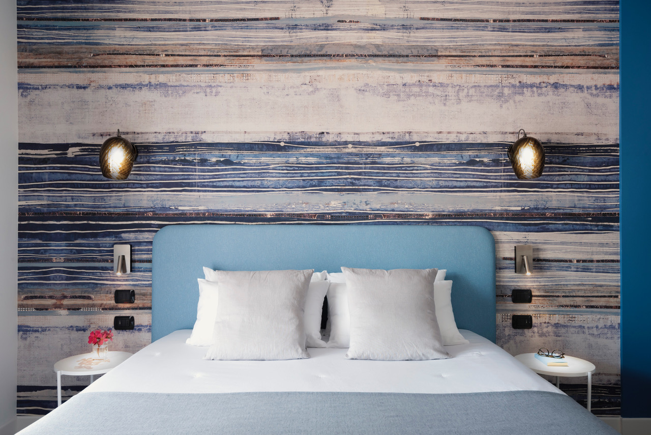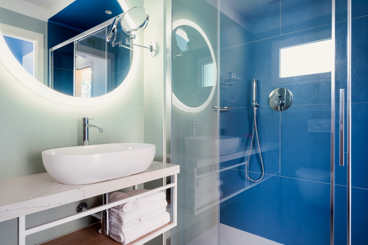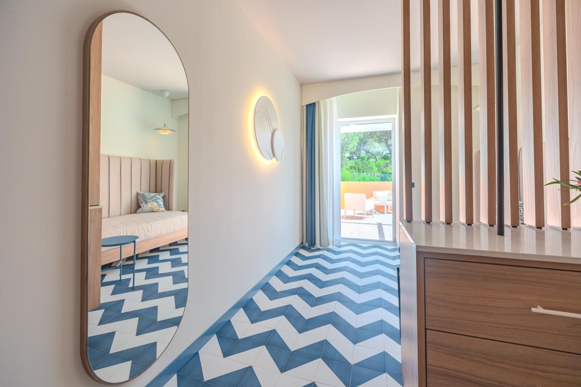 La esclusiva Superb room è stata realizzata nel 2024 dagli architetti dello Studio Bonfante nei colori bianco, blu e azzurro che trasmettono toni vivaci dal sapore mediterraneo.