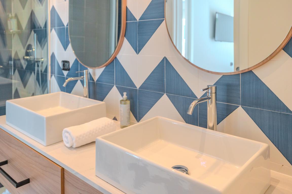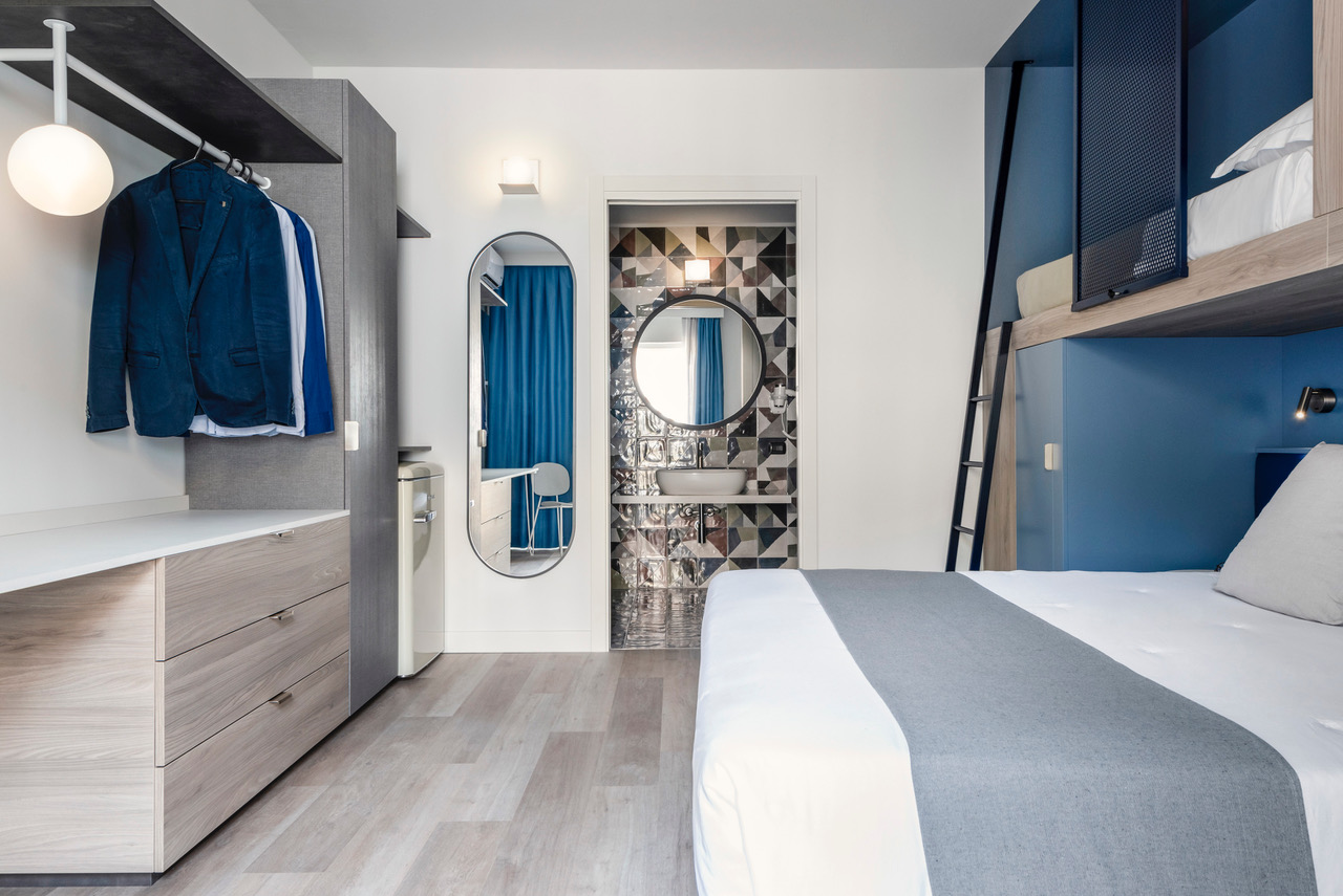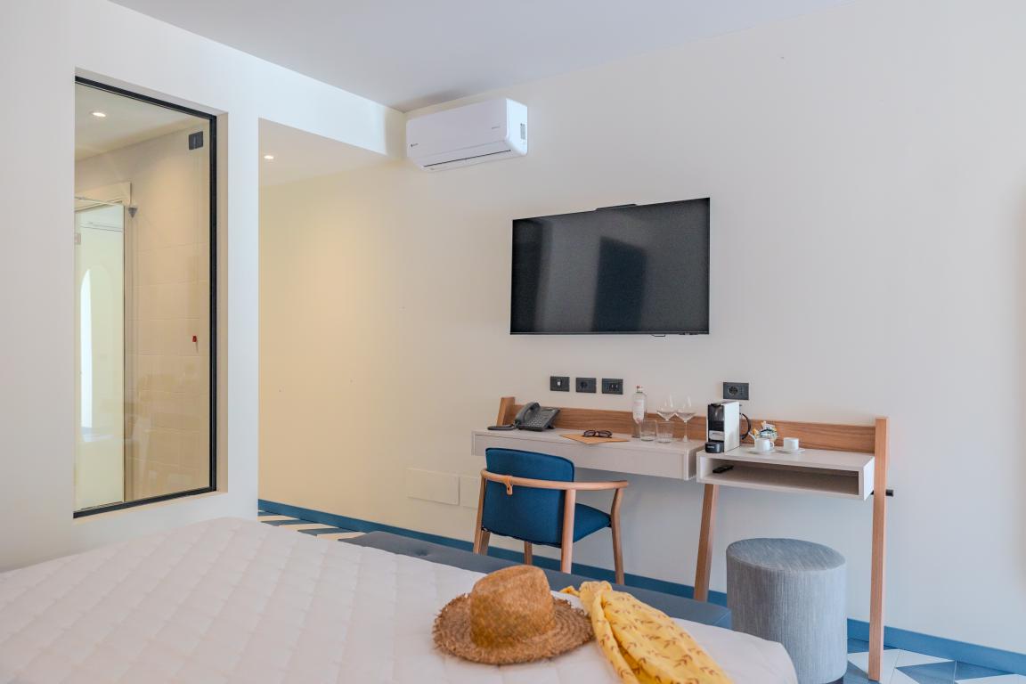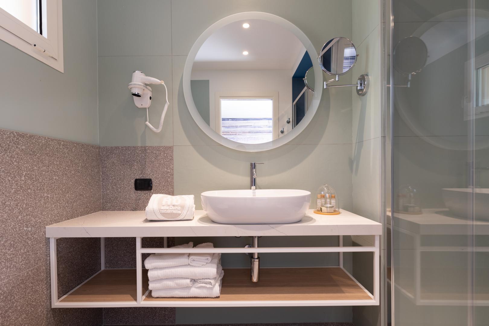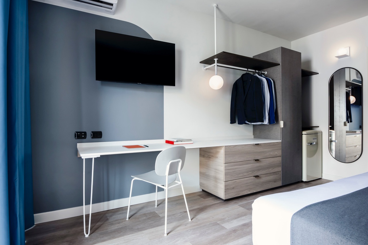 La esclusiva Superb room è stata realizzata nel 2024 dagli architetti dello Studio Bonfante nei colori bianco, blu e azzurro che trasmettono toni vivaci dal sapore mediterraneo.