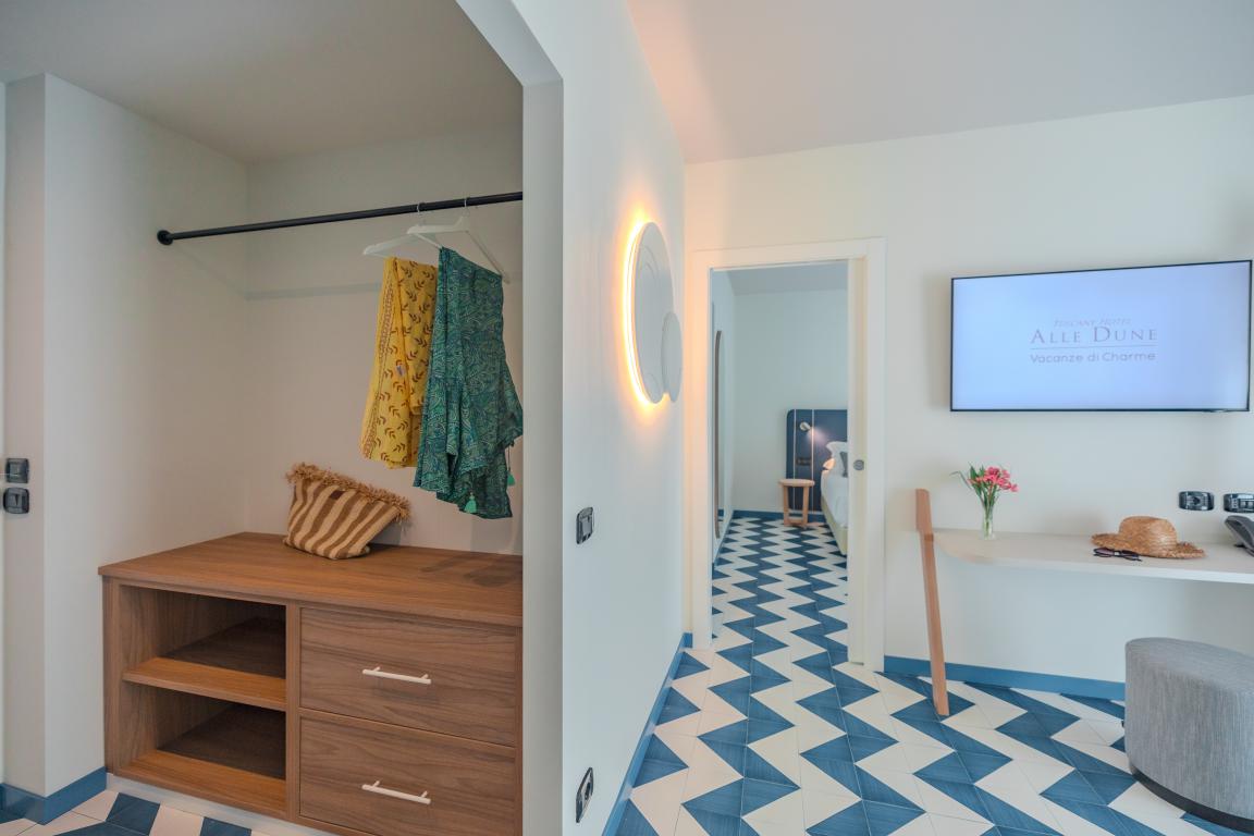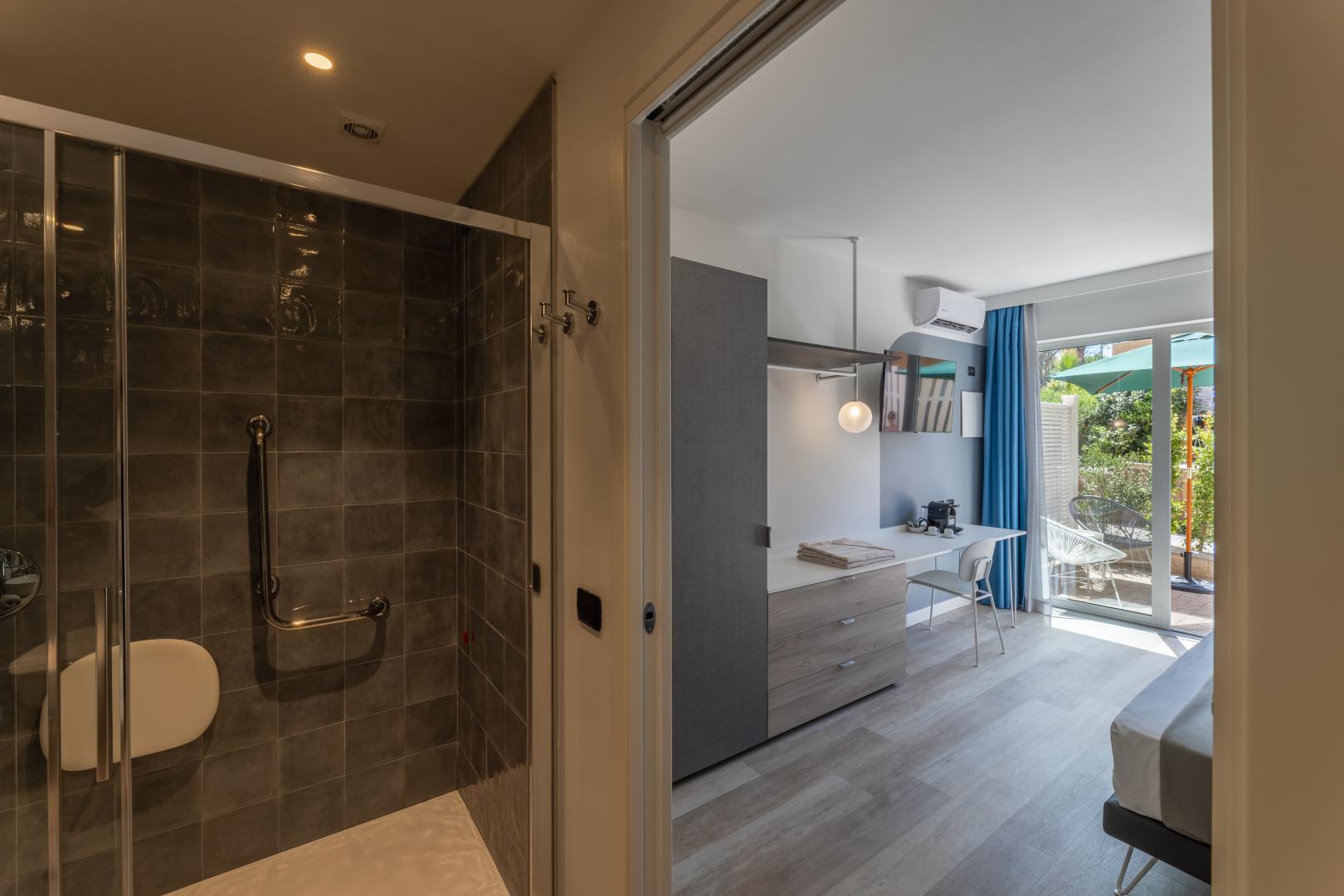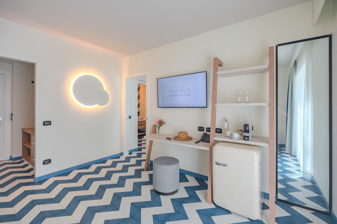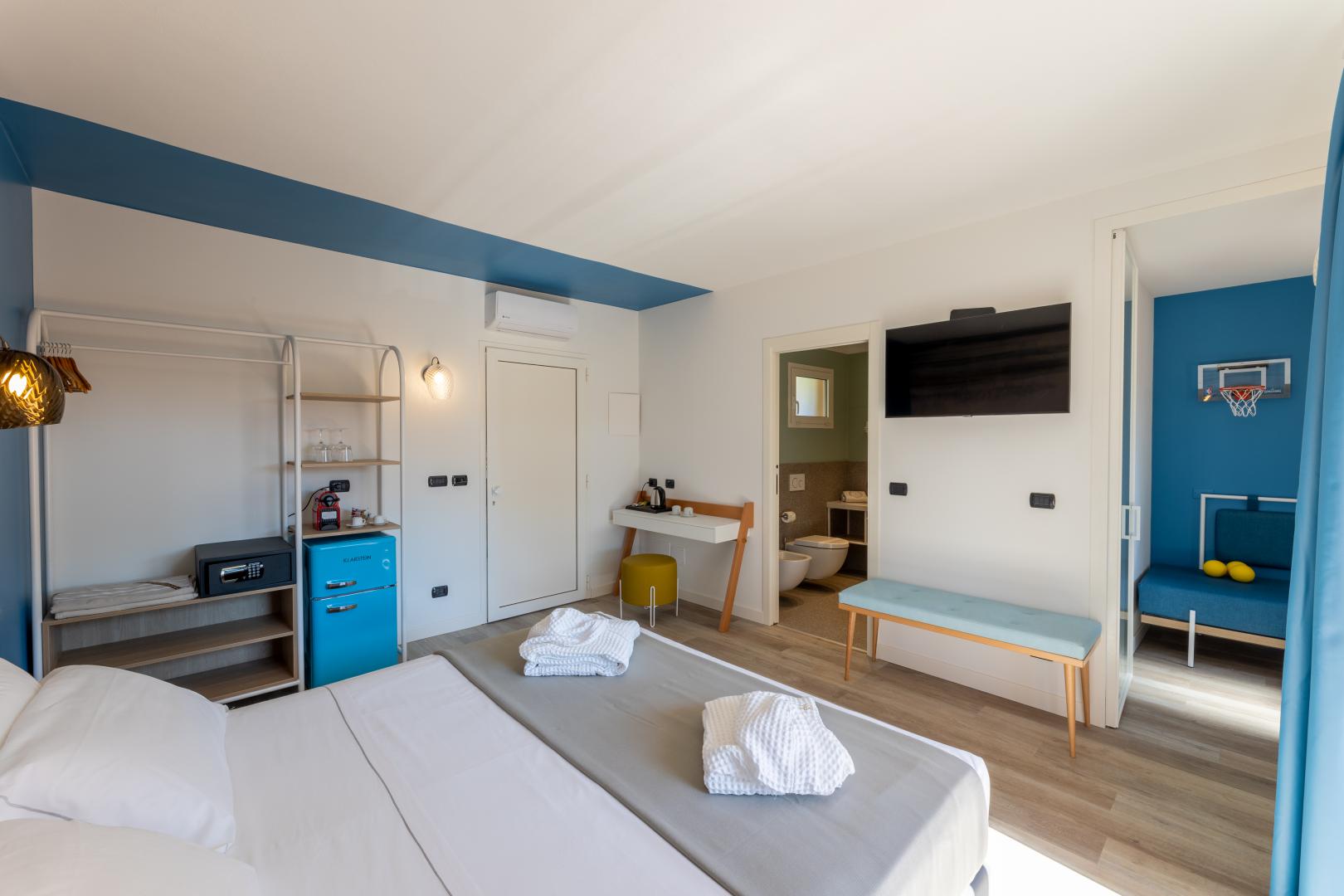 Di recentissima realizzazione, è stata progettata dagli architetti dello Studio Bonfante e dunque ricca di dettagli contemporanei. Dispone di un ampio bagno e divano letto singolo in una camera separata, è allestita con letto matrimoniale King Size con materasso Dorelan (180X200). Nel prezzo del soggiorno avrai incluso parcheggio auto riservato e nel periodo dal 10.05 al 30.09 un grande gazebo con tre lettini e due poltroncine registe presso la nostra incantevole spiaggia attrezzata “Acacia” di fronte all’Hotel. Fuori dal periodo indicato verrà offerto un ombrellone con due lettini e una poltroncina regista.