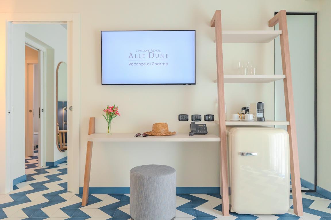 La esclusiva Tuscany Suite è stata realizzata nel 2024 dagli architetti dello Studio Bonfante nei colori bianco, blu e azzurro che trasmettono toni vivaci dal sapore mediterraneo.