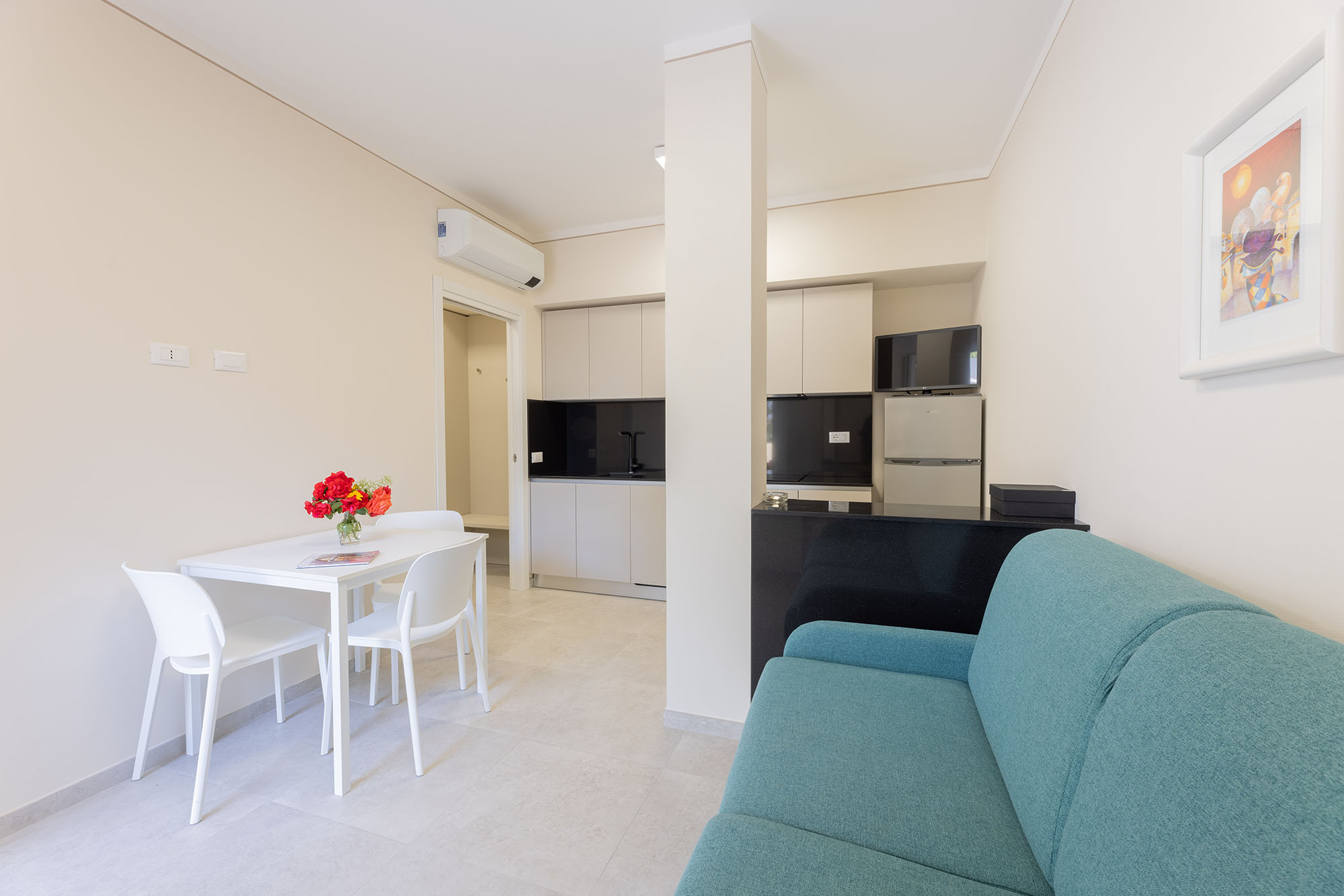 (Le immagini presenti sono a scopo puramente illustrativo e potrebbero non corrispondere esattamente alla disposizione o agli arredi dei bungalow e appartamenti.)