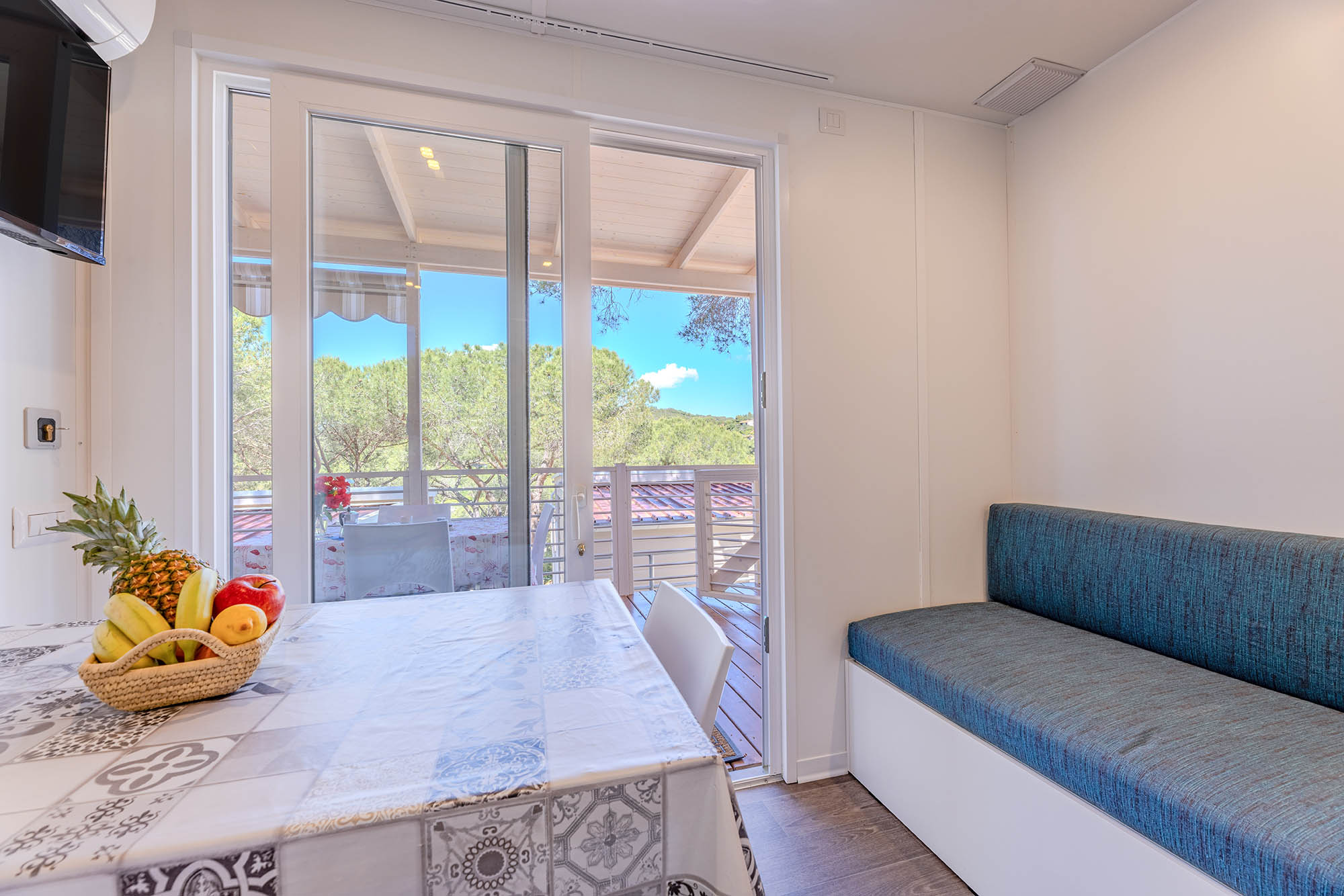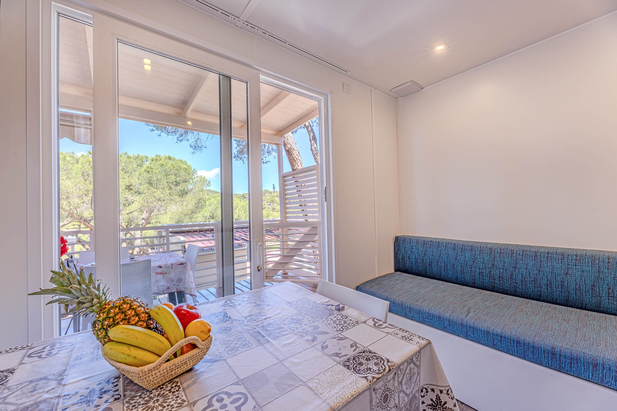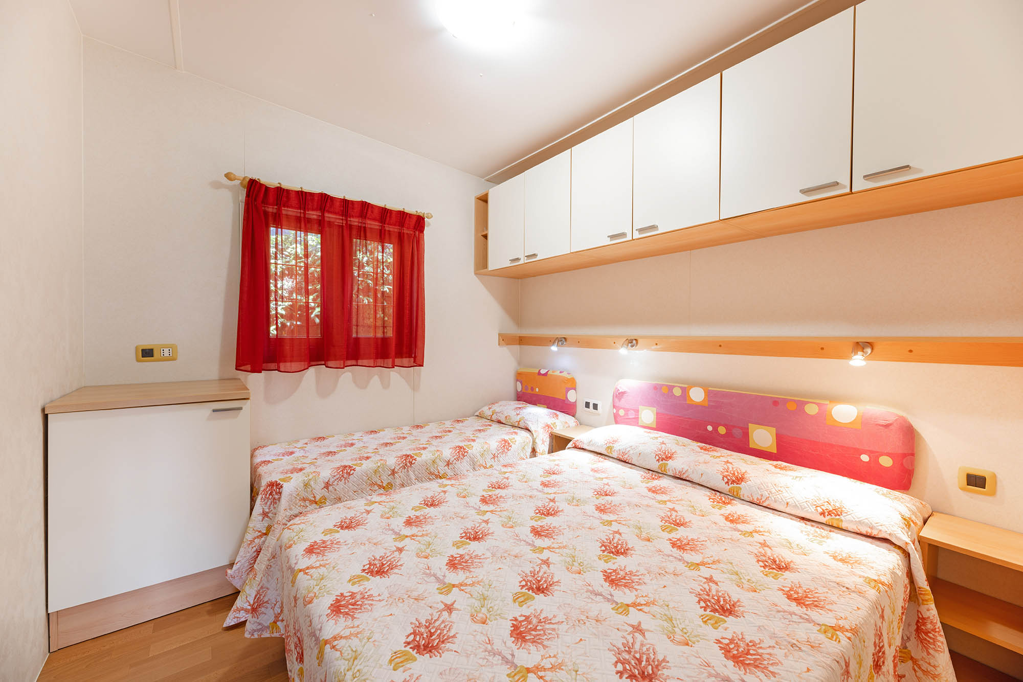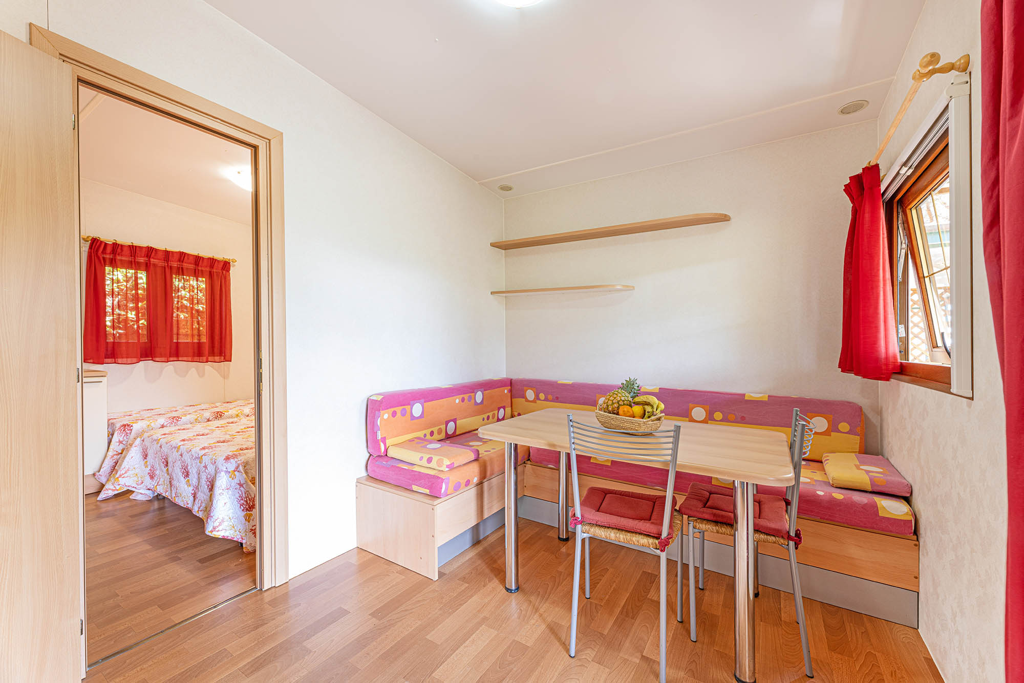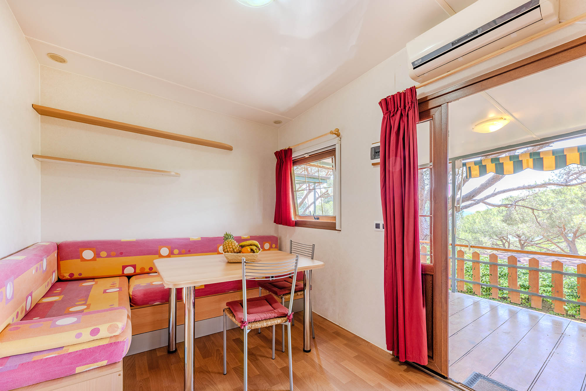 Bungalow trilocale composto da un soggiorno con angolo cottura, una camera matrimoniale e una camera con due letti singoli, bagno con doccia, aria condizionata, TV-sat e una veranda attrezzata dove potete trascorrere le vostre serate in tranquillità.
