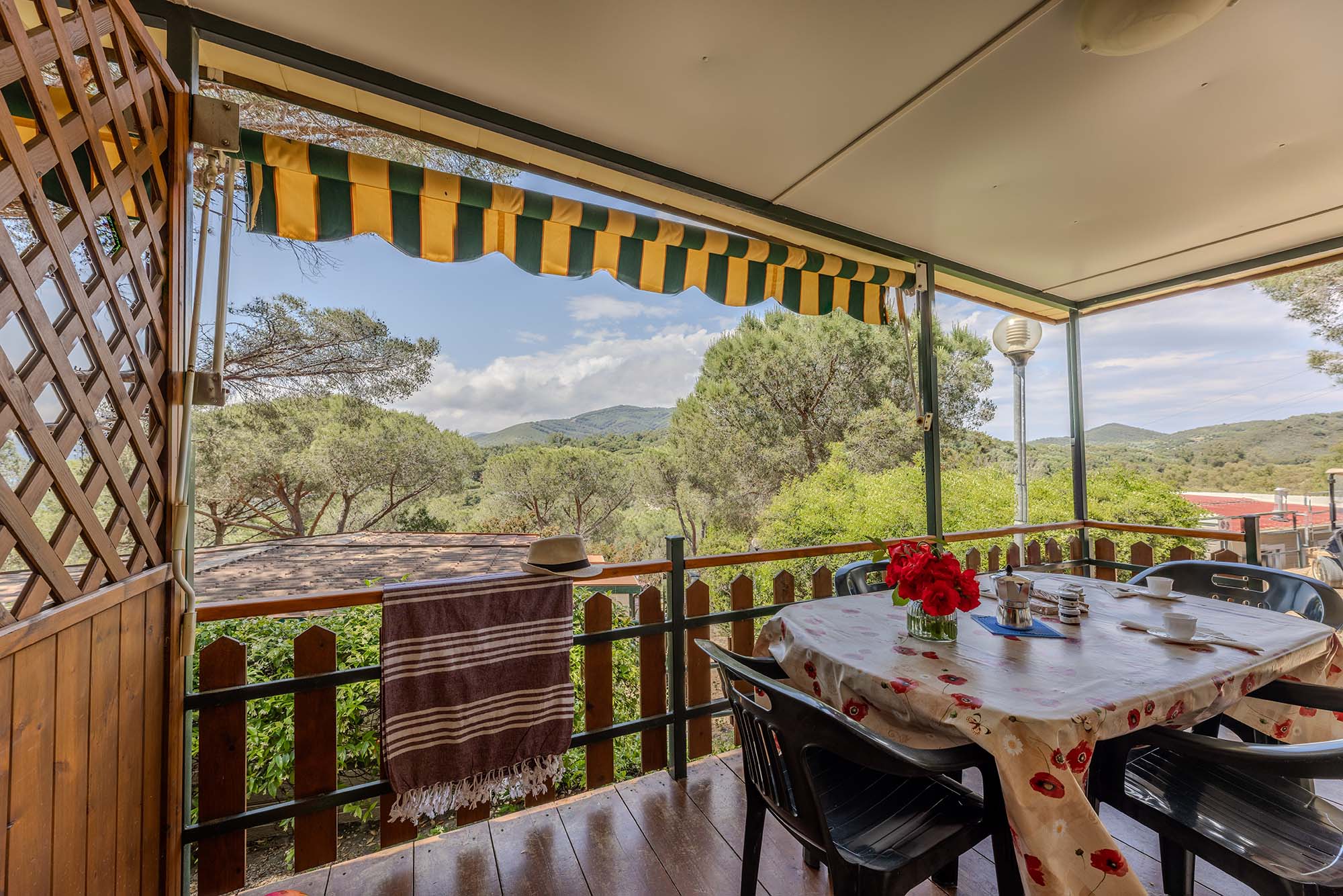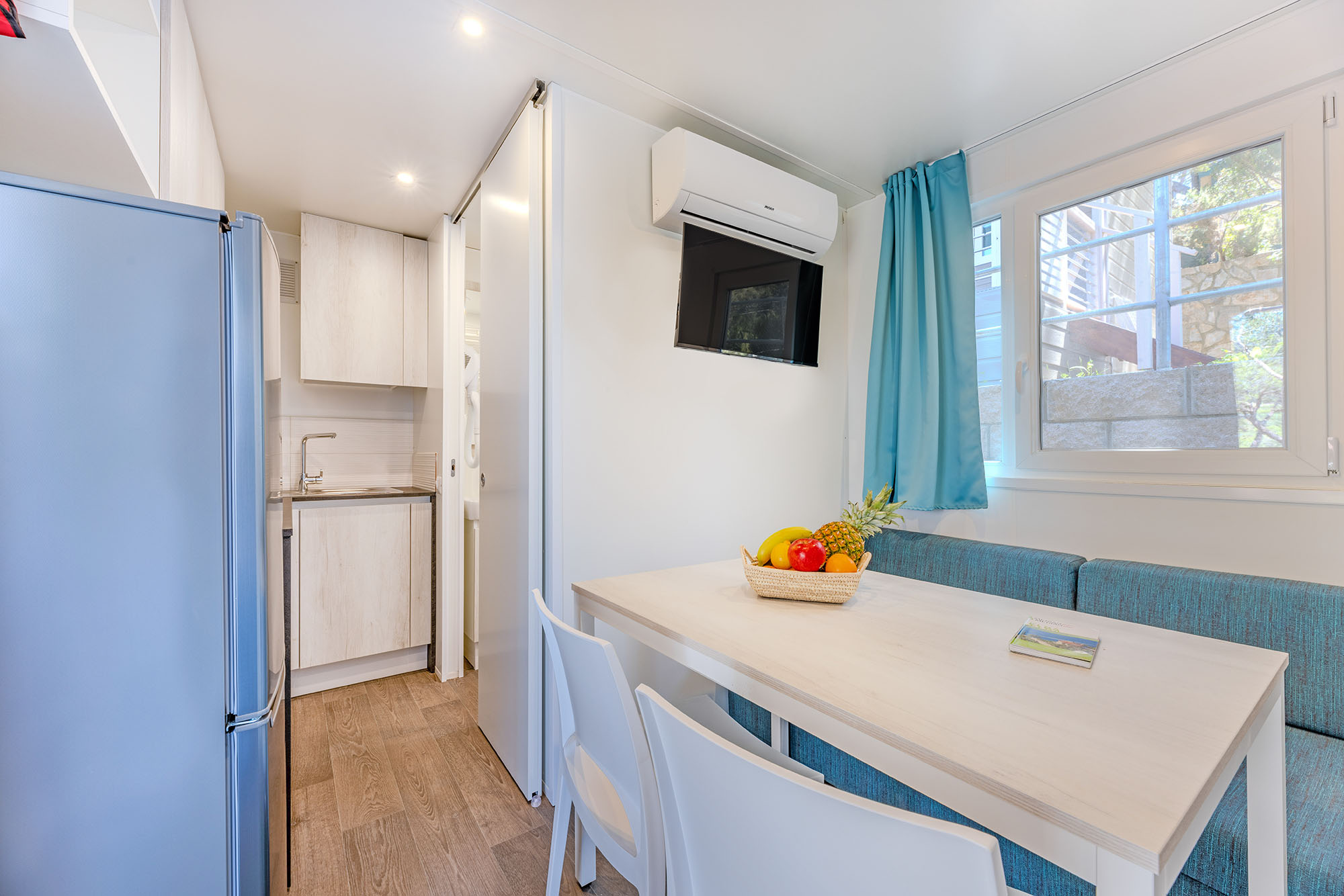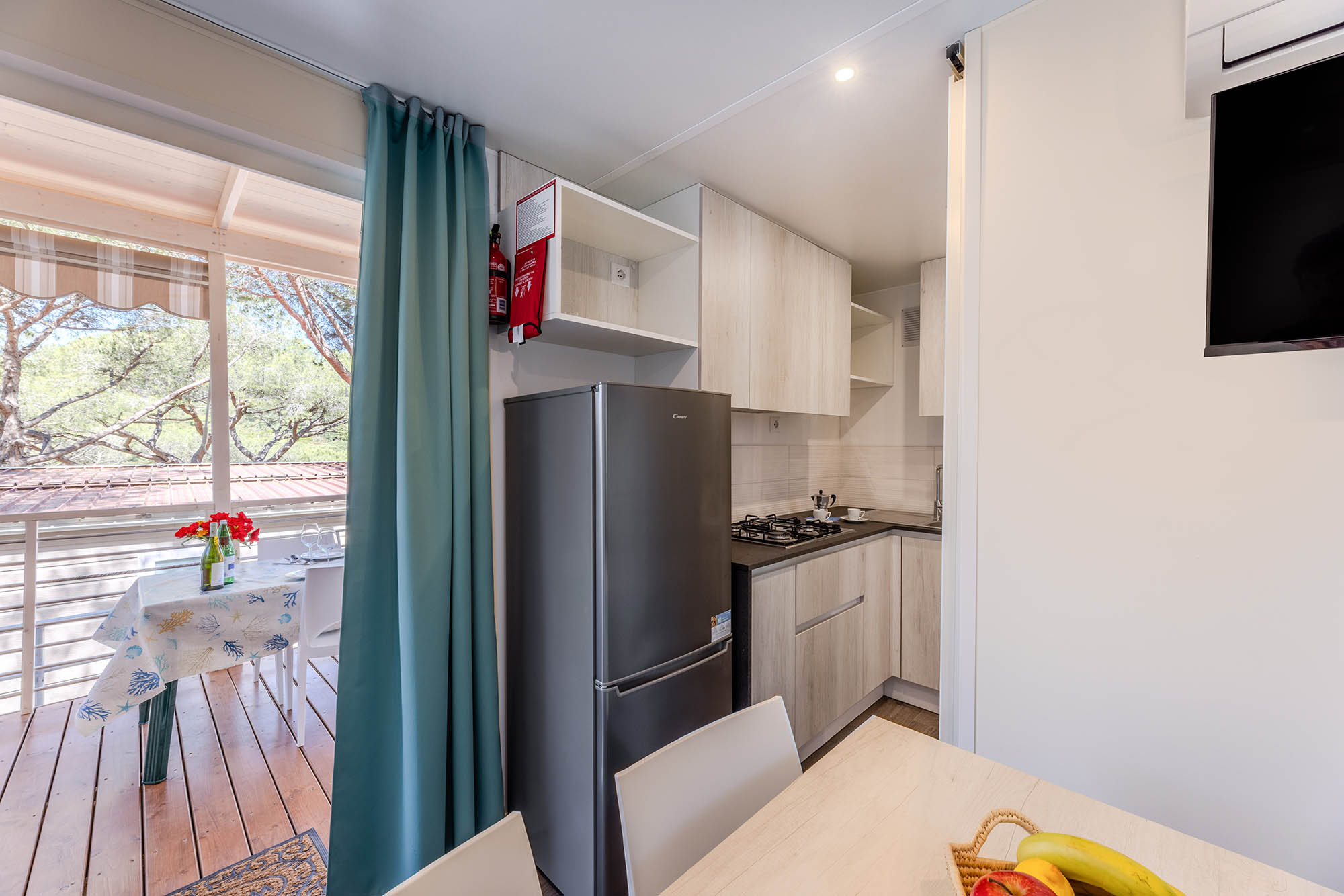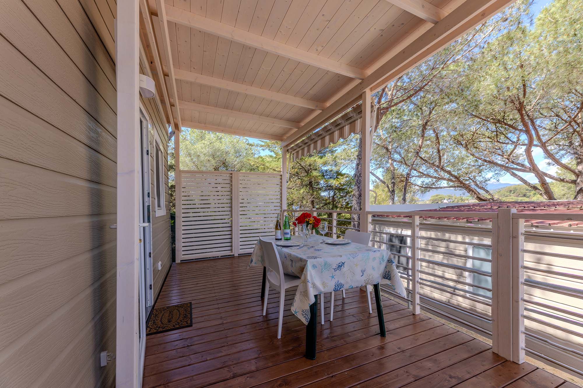 Bungalow trilocale composto da un soggiorno con angolo cottura, una camera matrimoniale e una camera con due letti singoli, bagno con doccia, aria condizionata, TV-sat e una veranda attrezzata dove potete trascorrere le vostre serate in tranquillità.