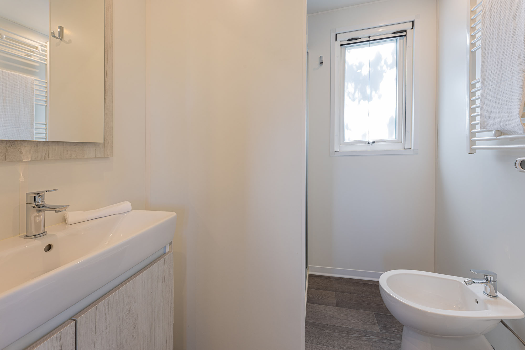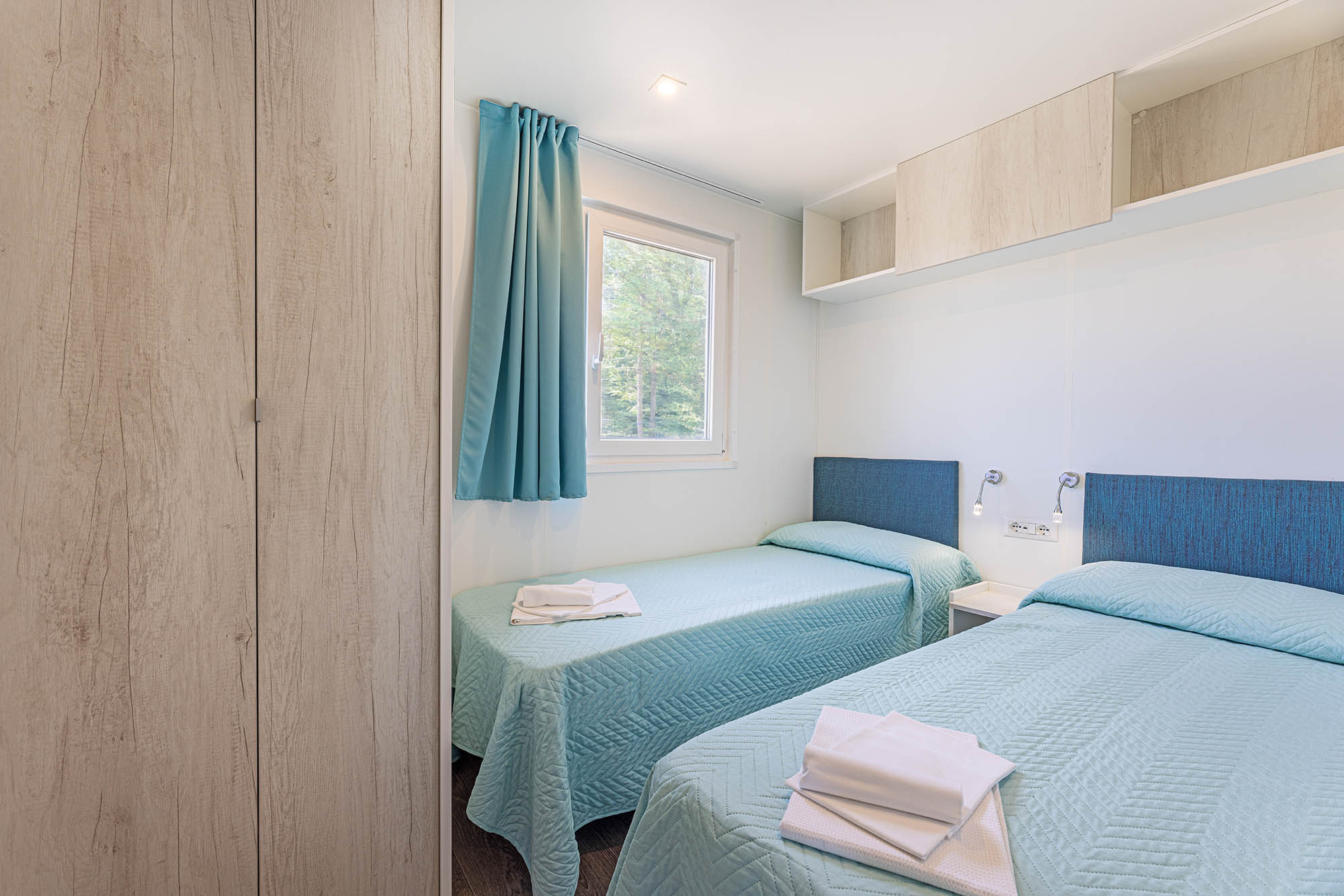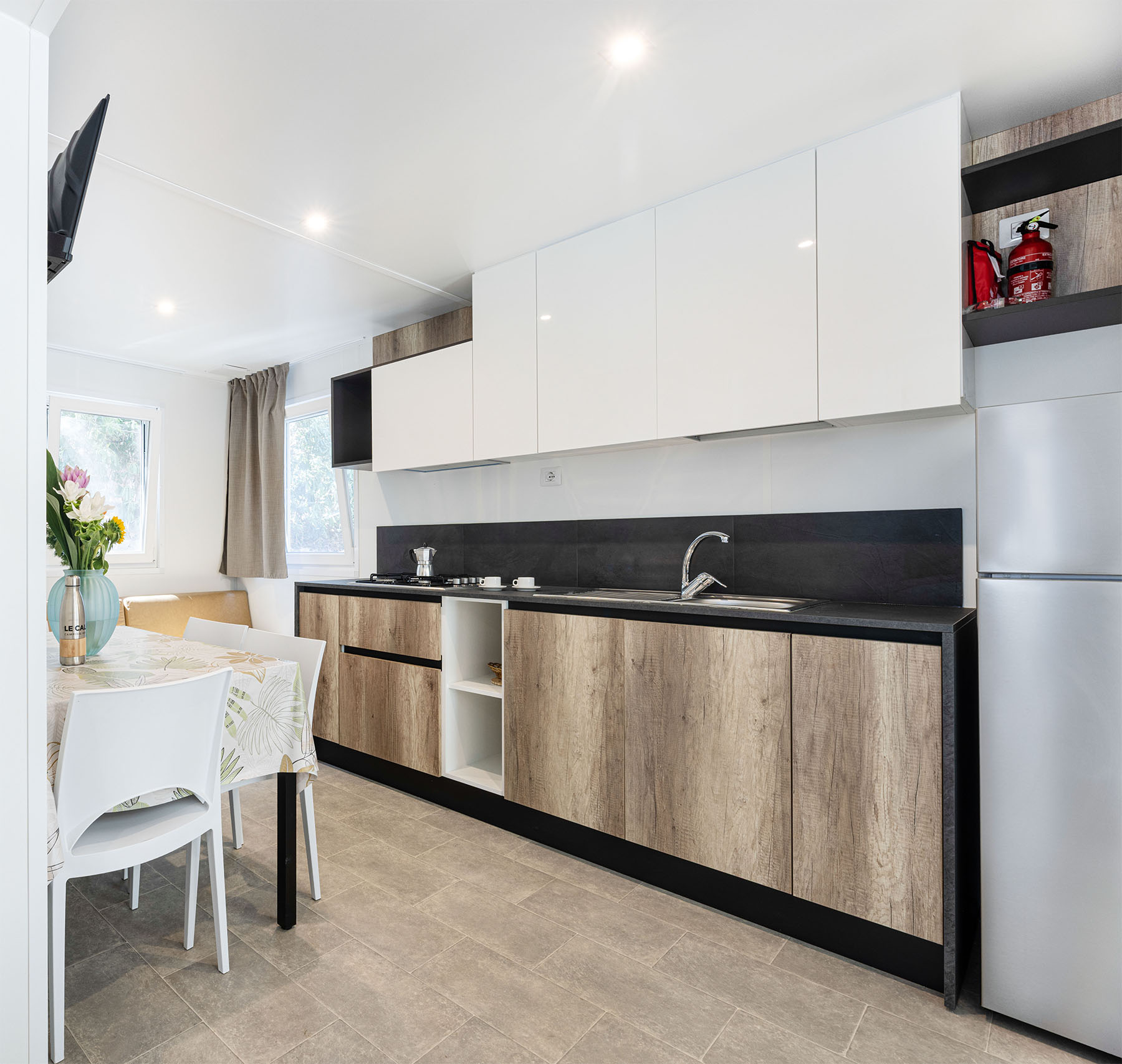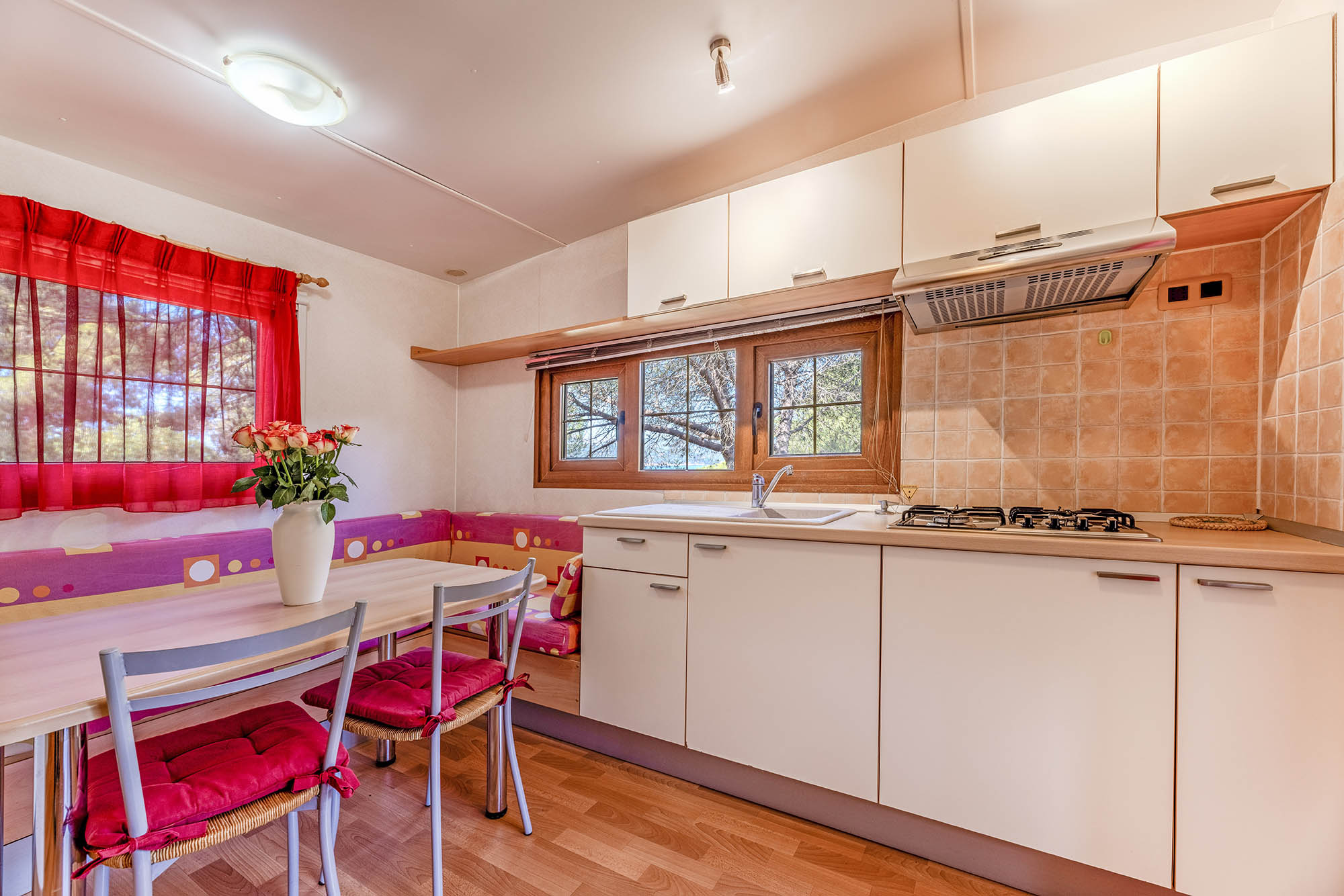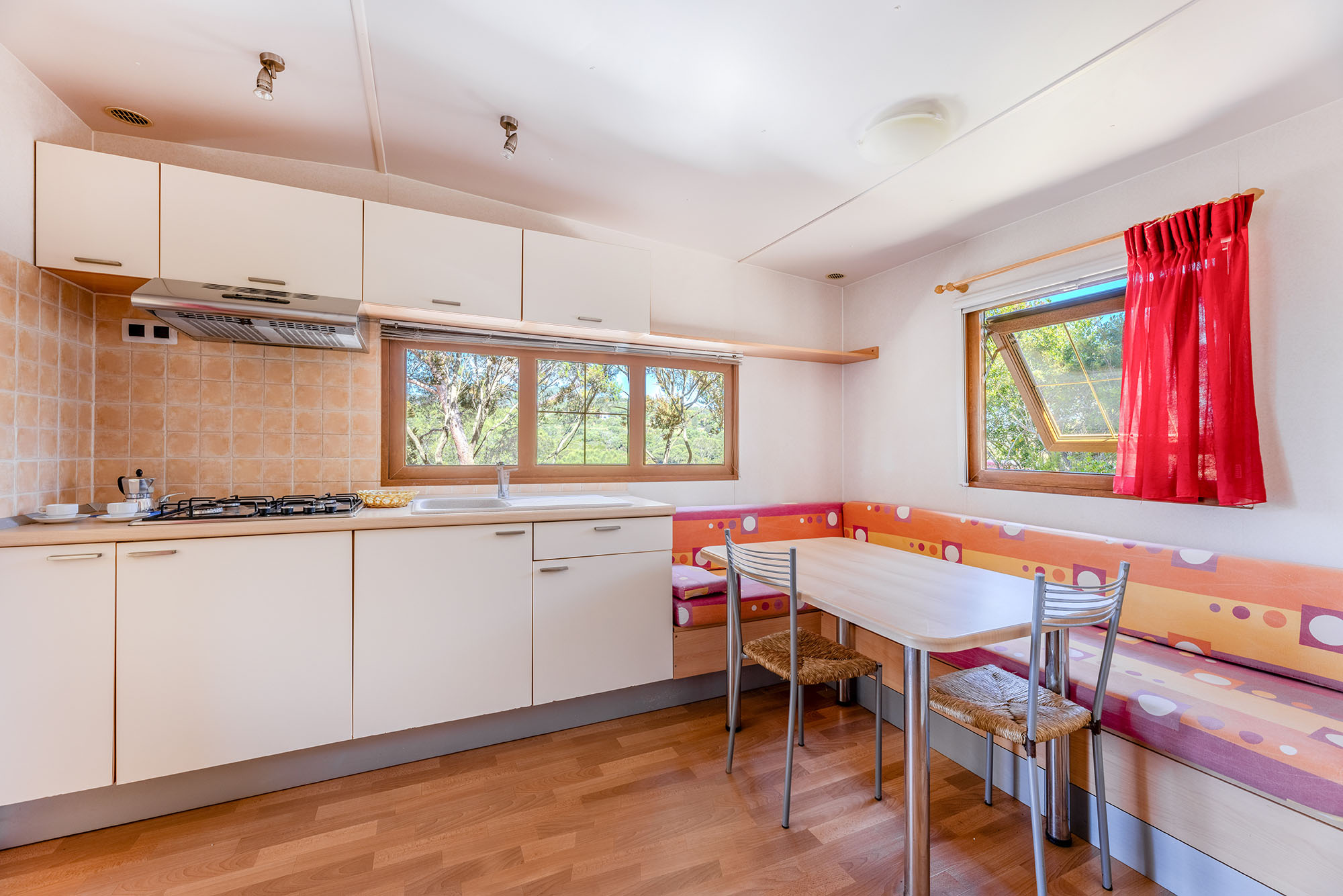 Bungalow trilocale composto da un soggiorno con angolo cottura, una camera matrimoniale e una camera con due letti singoli, bagno con doccia, aria condizionata, TV-sat e una veranda attrezzata dove potete trascorrere le vostre serate in tranquillità.