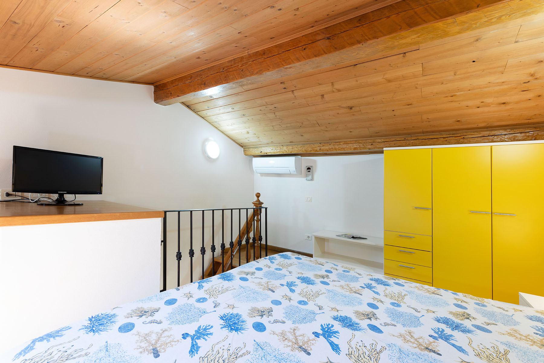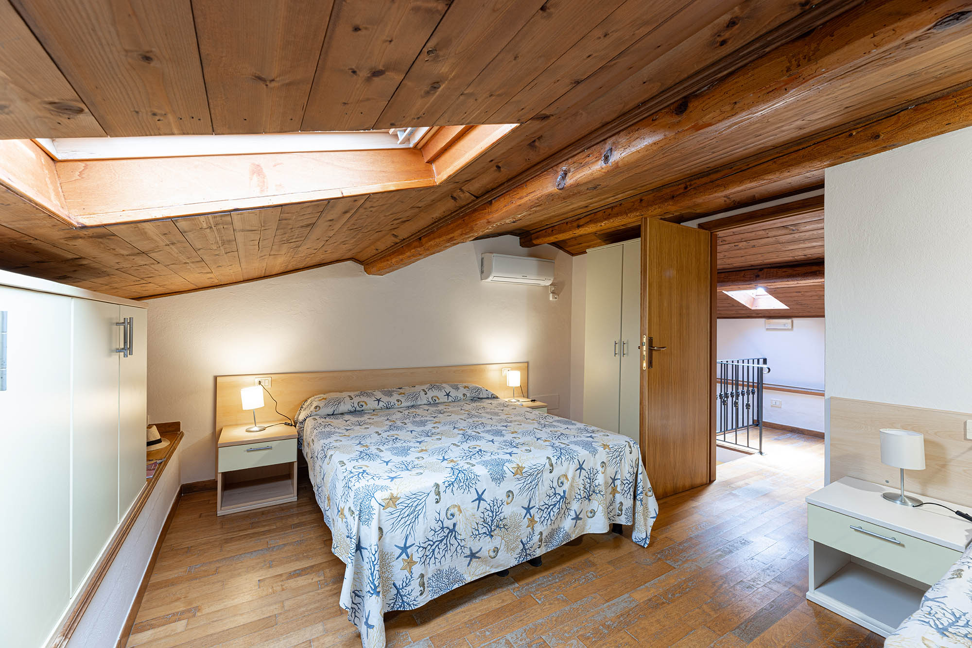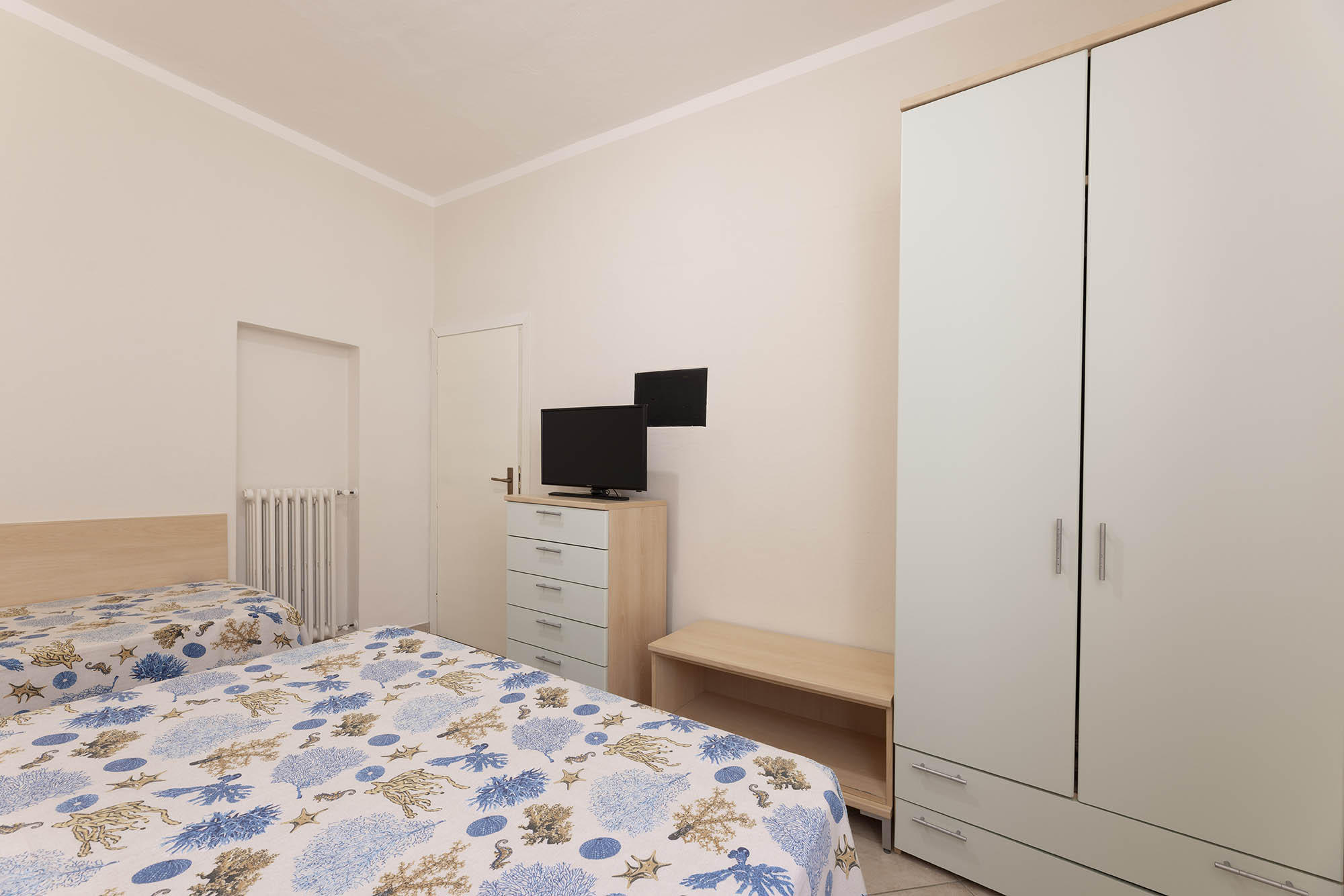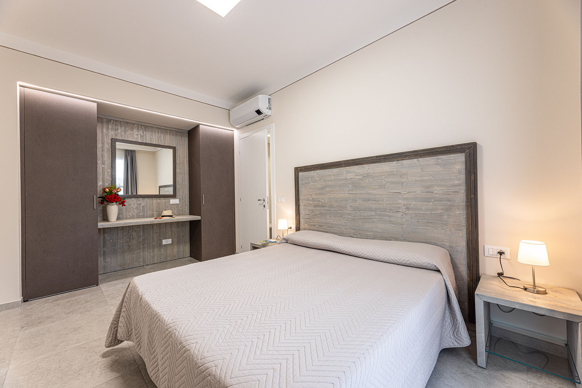 Camera con letto matrimoniale, bagno con doccia, aria condizionata, tv-sat e parcheggio privato. Camera vicino al mare.