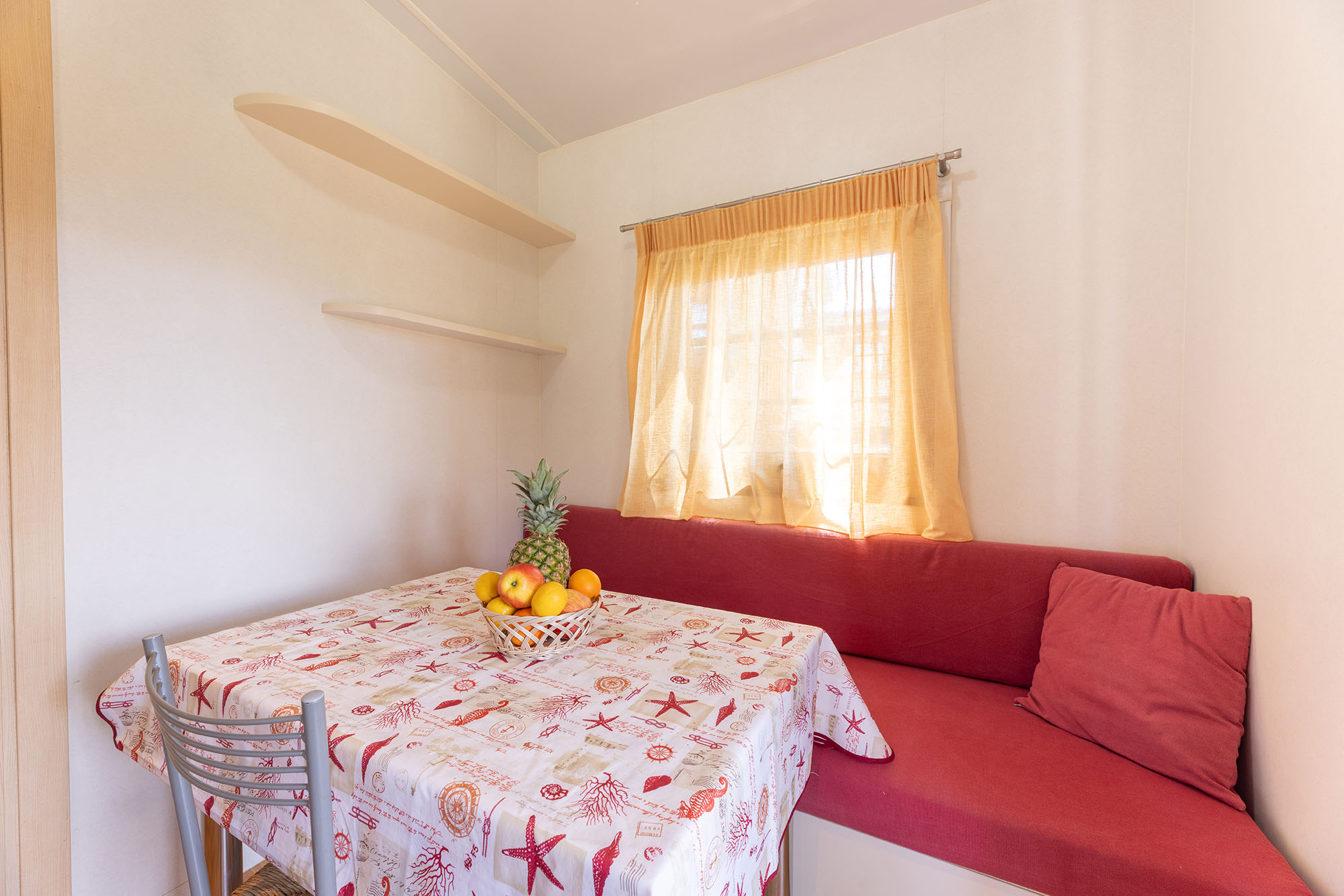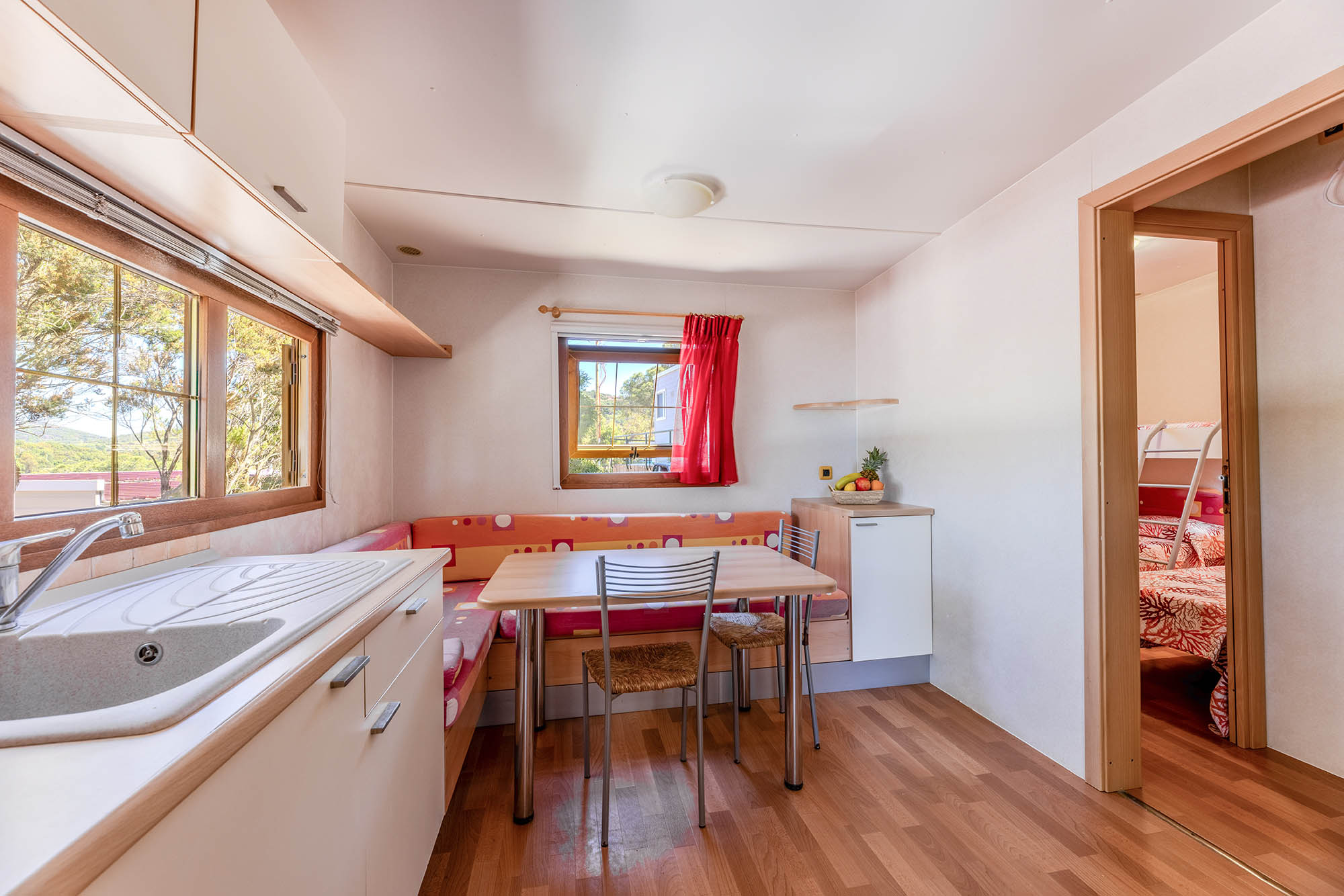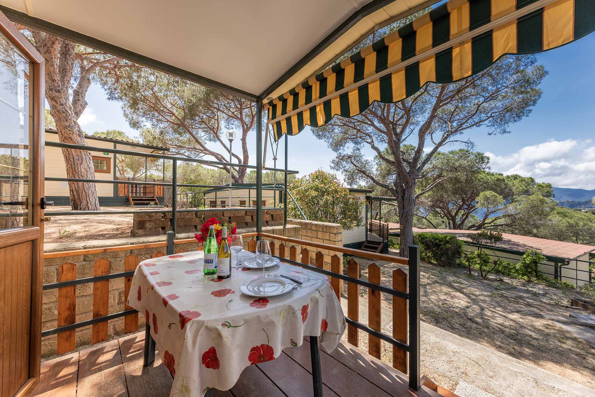 Bungalow trilocale composto da un soggiorno con angolo cottura, una camera matrimoniale, una camera con letto a castello, bagno con doccia, tv-sat, aria condizionata e una veranda attrezzata dove potete trascorrere le vostre serate in tranquillità.