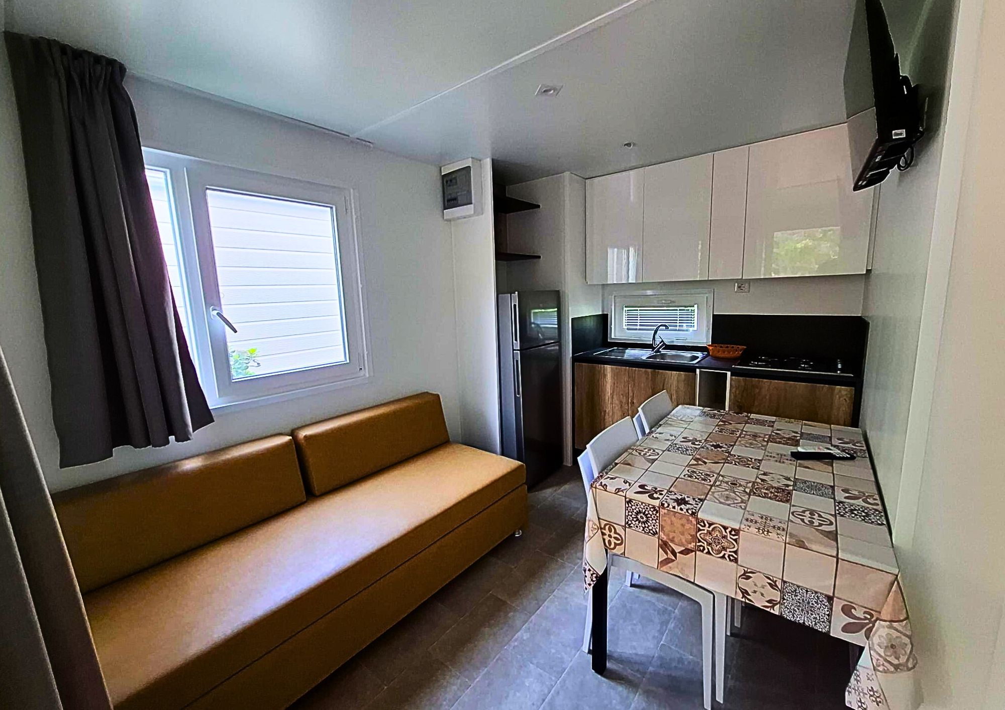 bungalow bilocale composto da una camera matrimoniale con un letto singolo, soggiorno con angolo cottura , una dinette, bagno con doccia, tv-sat, aria condizionata e veranda attrezzata dove potete trascorrere le vostre serate in tranquillità.