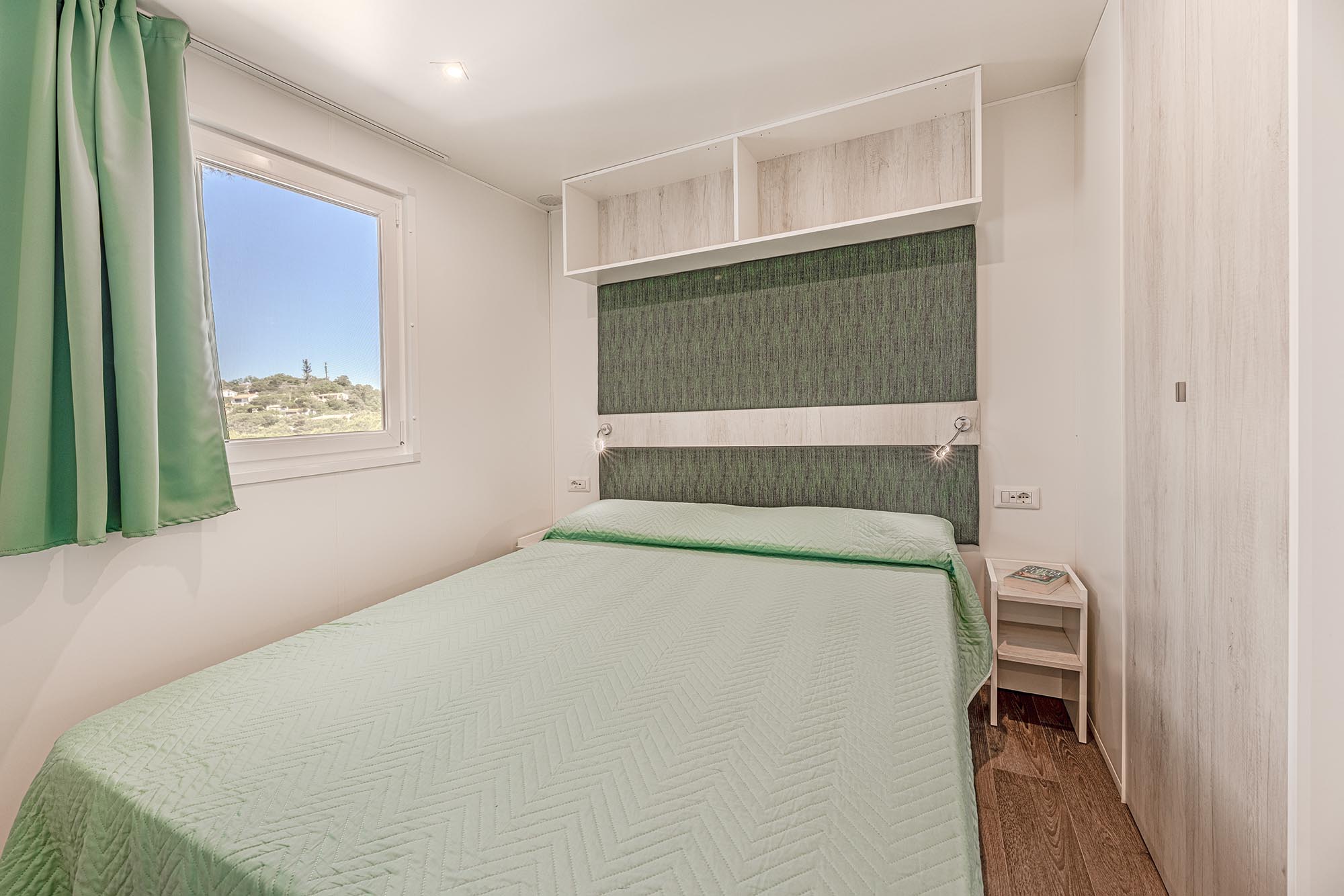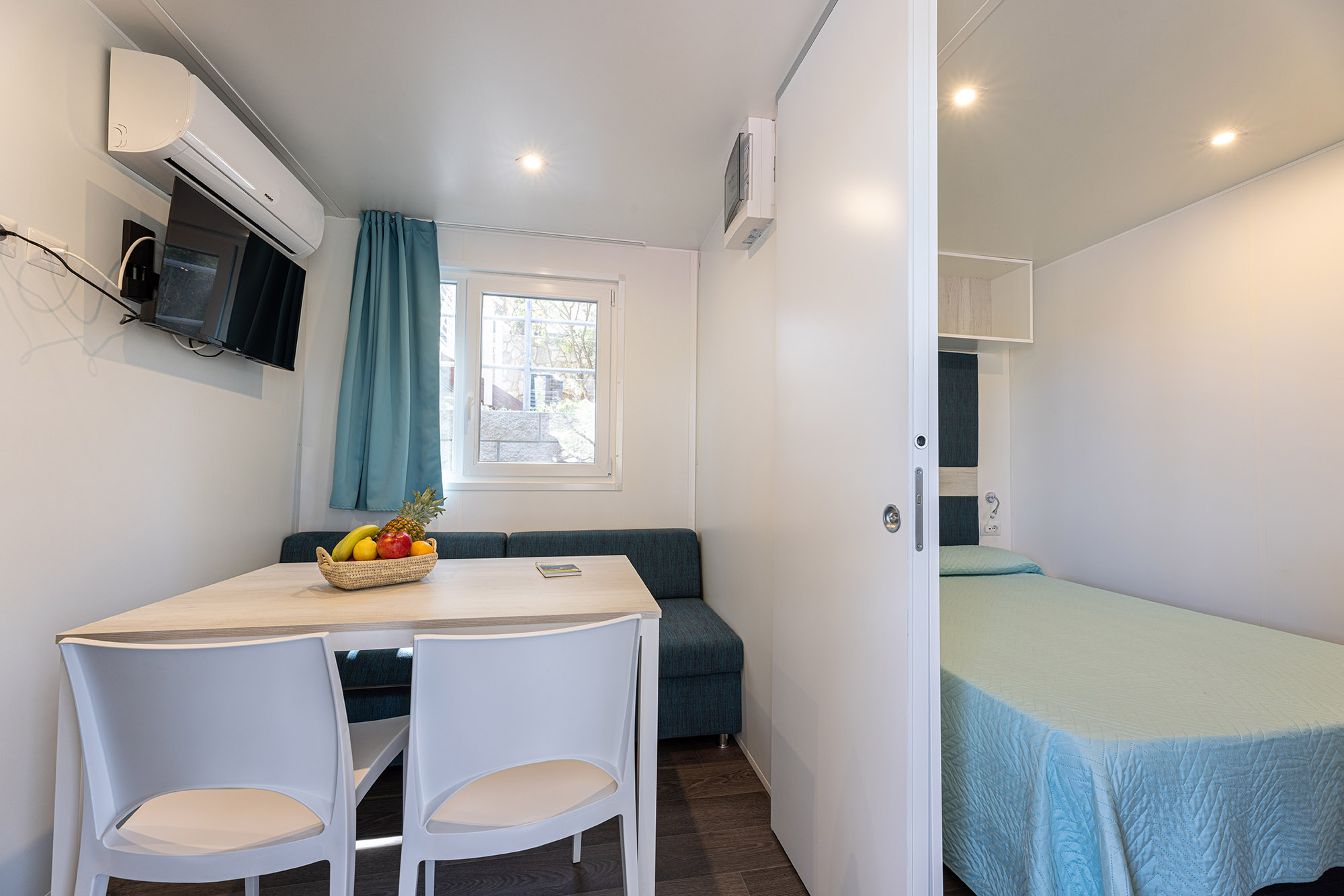 Bungalow bilocale composto da un soggiorno con angolo cottura, una camera da letto matrimoniale, bagno con doccia, aria condizionata, tv-sat e veranda attrezzata dove potete trascorrere le vostre serate in tranquillità.