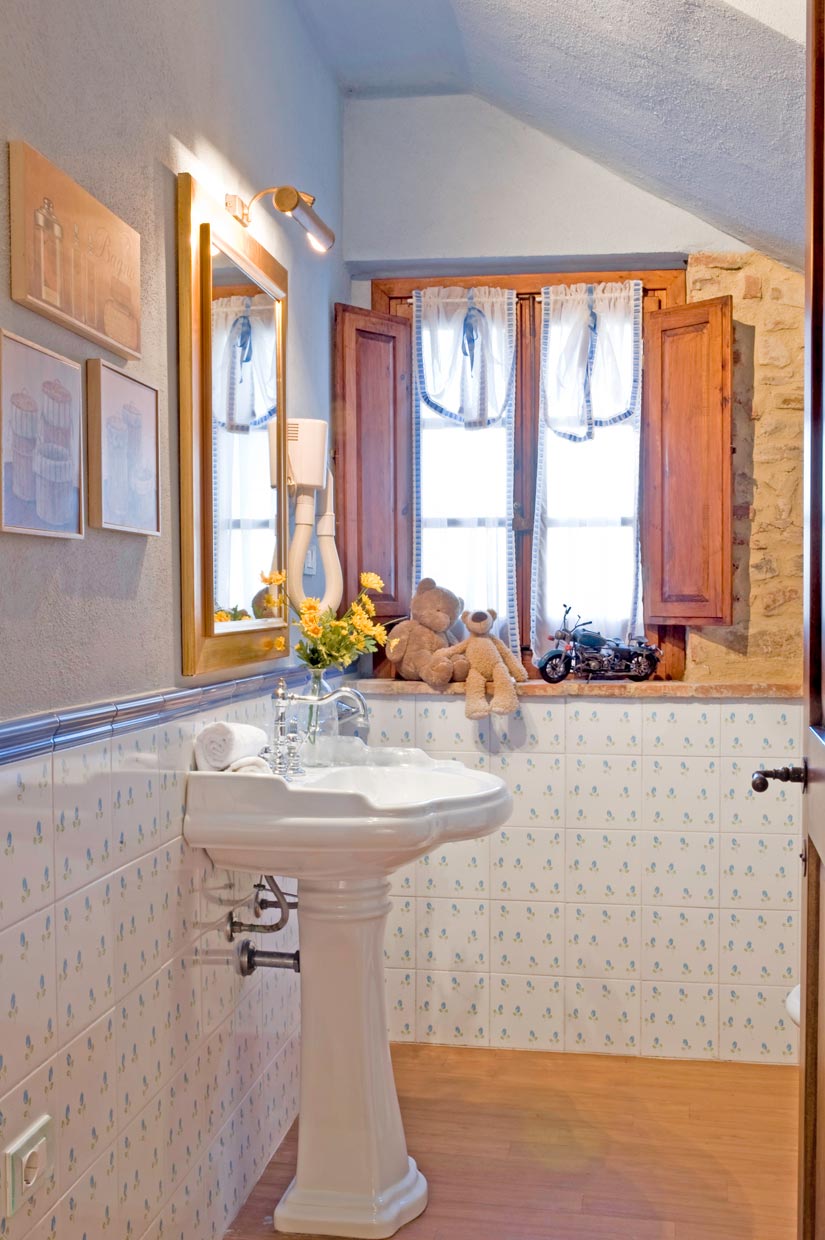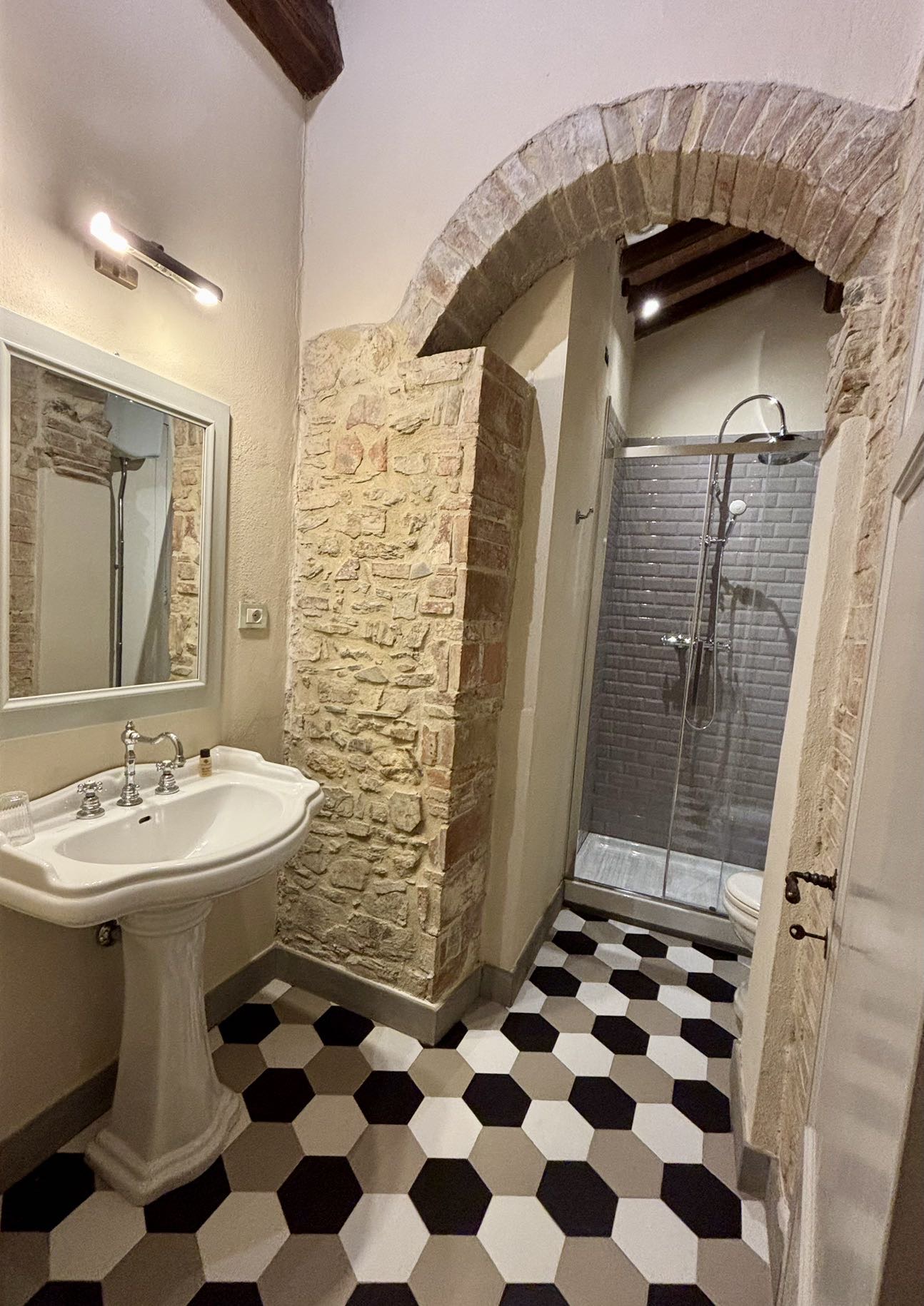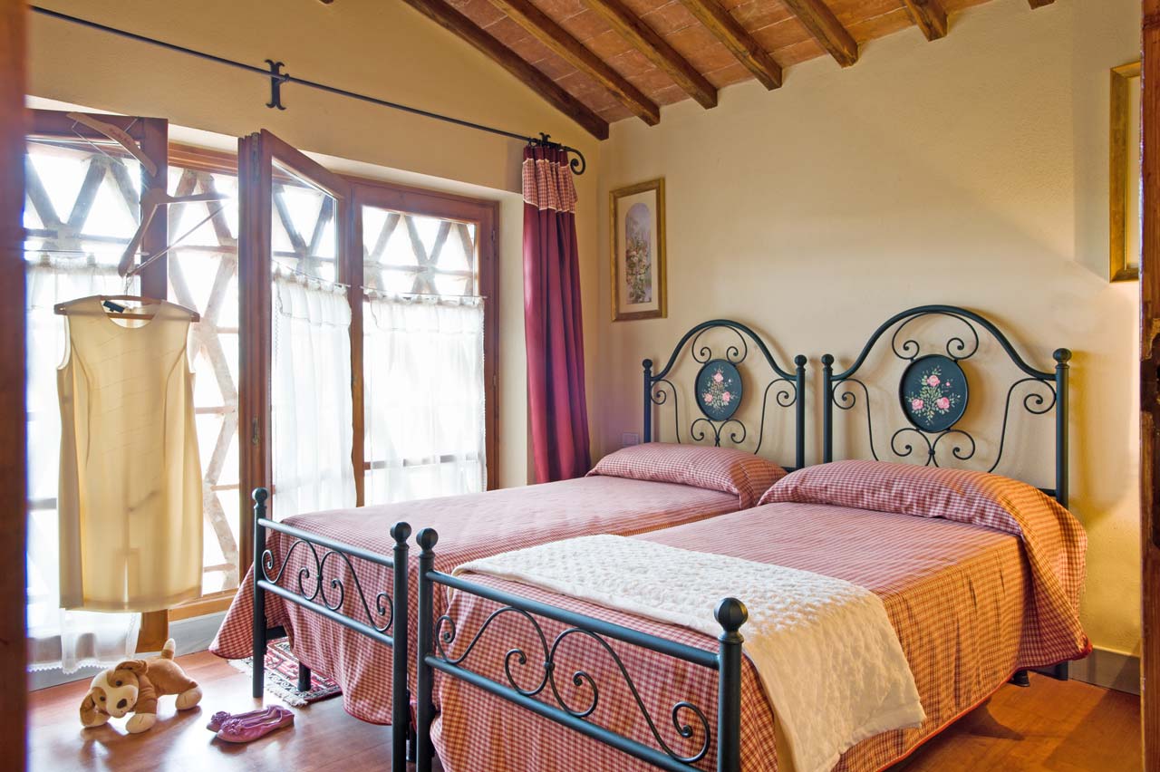 Al primo piano due camere matrimoniali, una camera doppia e due bagni con doccia, di cui uno interno alla camera ed uno nel corridoio.