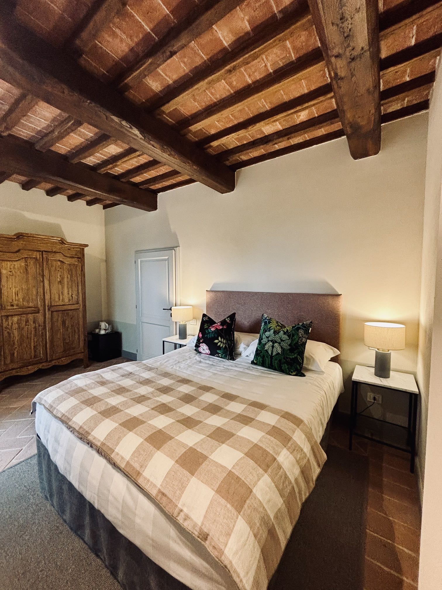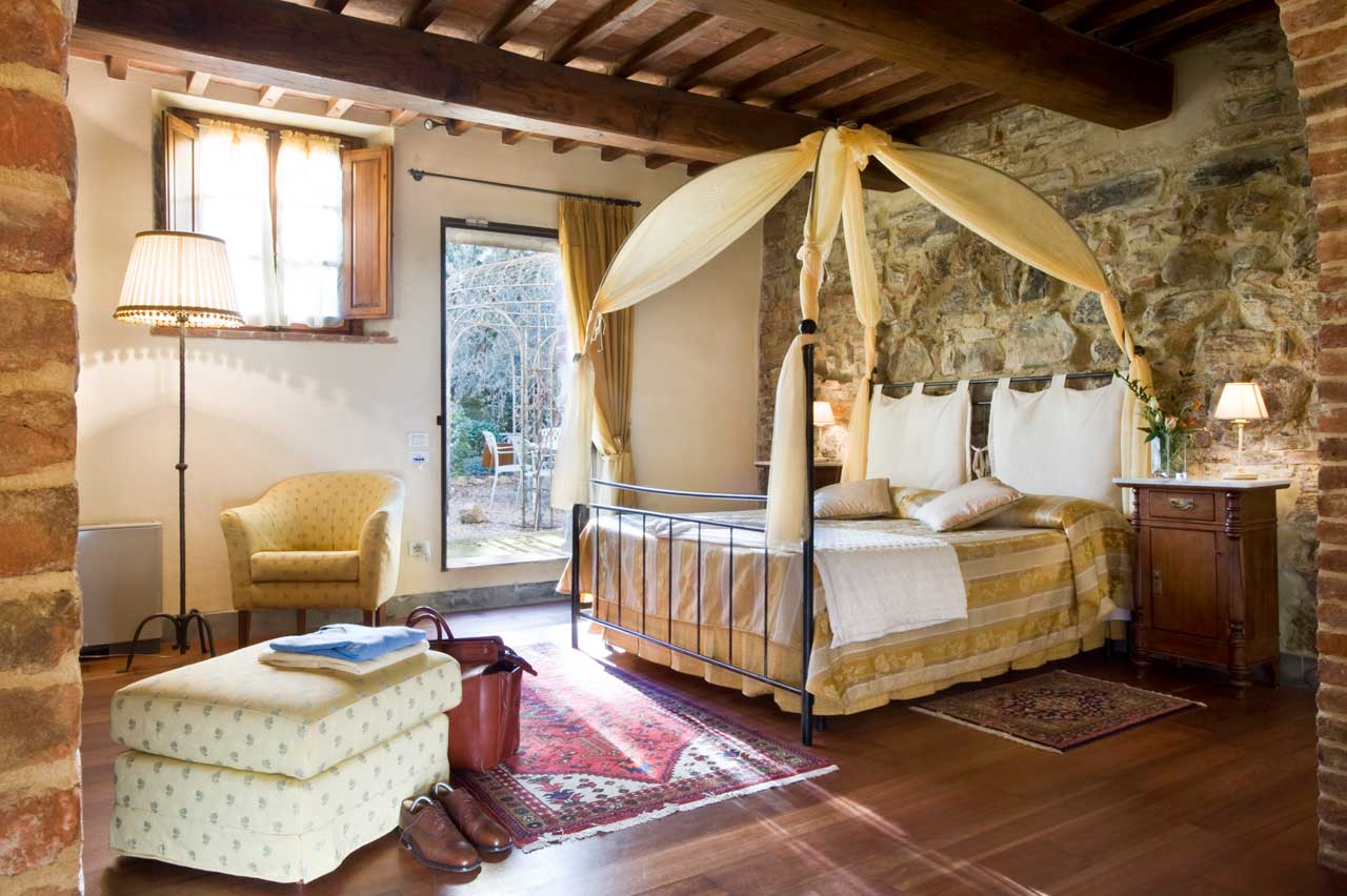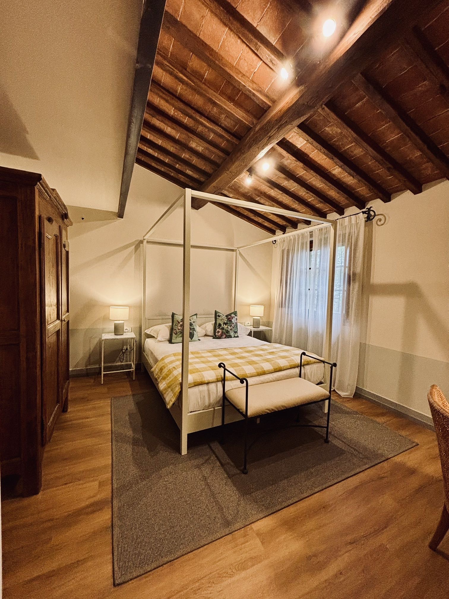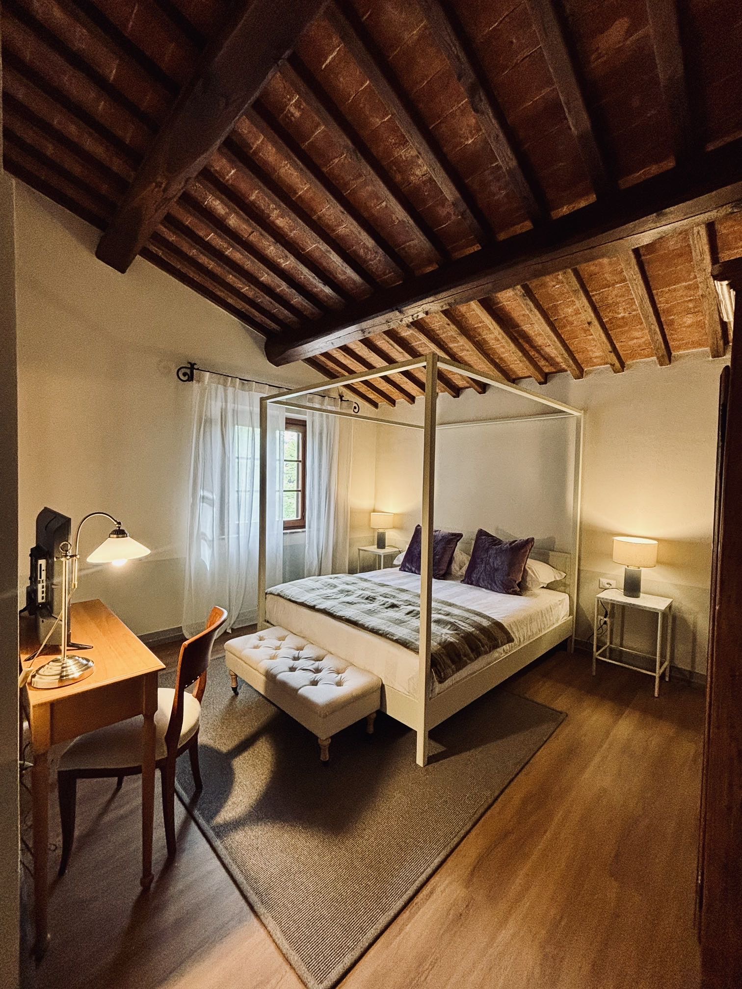 Le nostre luminose Camere Deluxe si trovano al piano terra e al piano superiore del corpo centrale, autentica espressione dello stile toscano con caldi pavimenti in parquet, travi a vista e letto a baldacchino; vi lascerete andare ad un’esperienza senza tempo dove il relax e la calma sono i protagonisti, ma sempre con uno standard dei servizi personalizzato e contemporaneo.