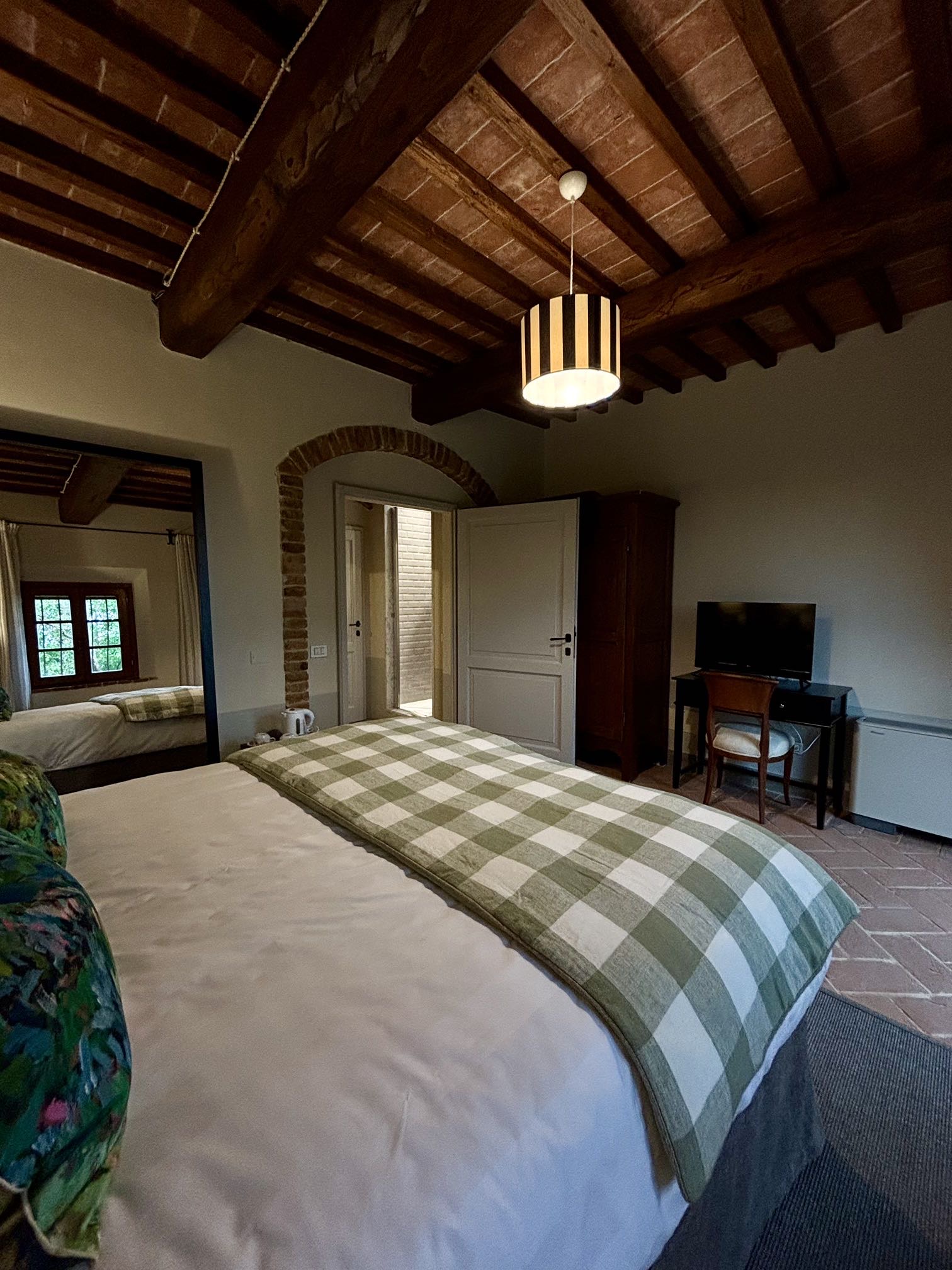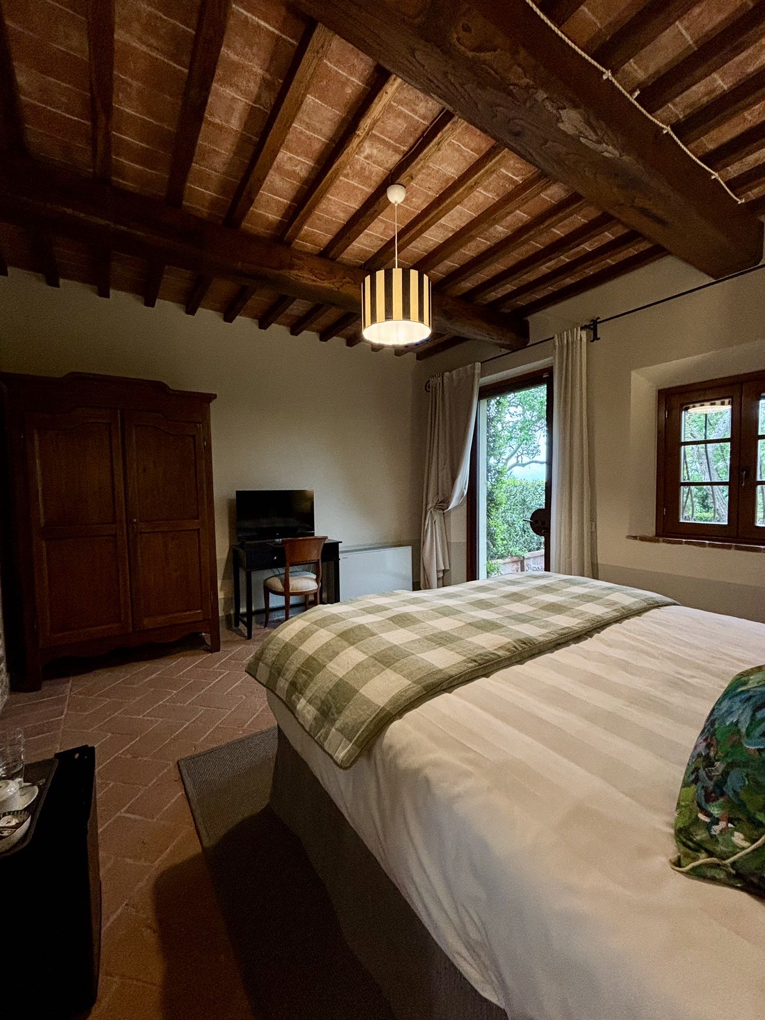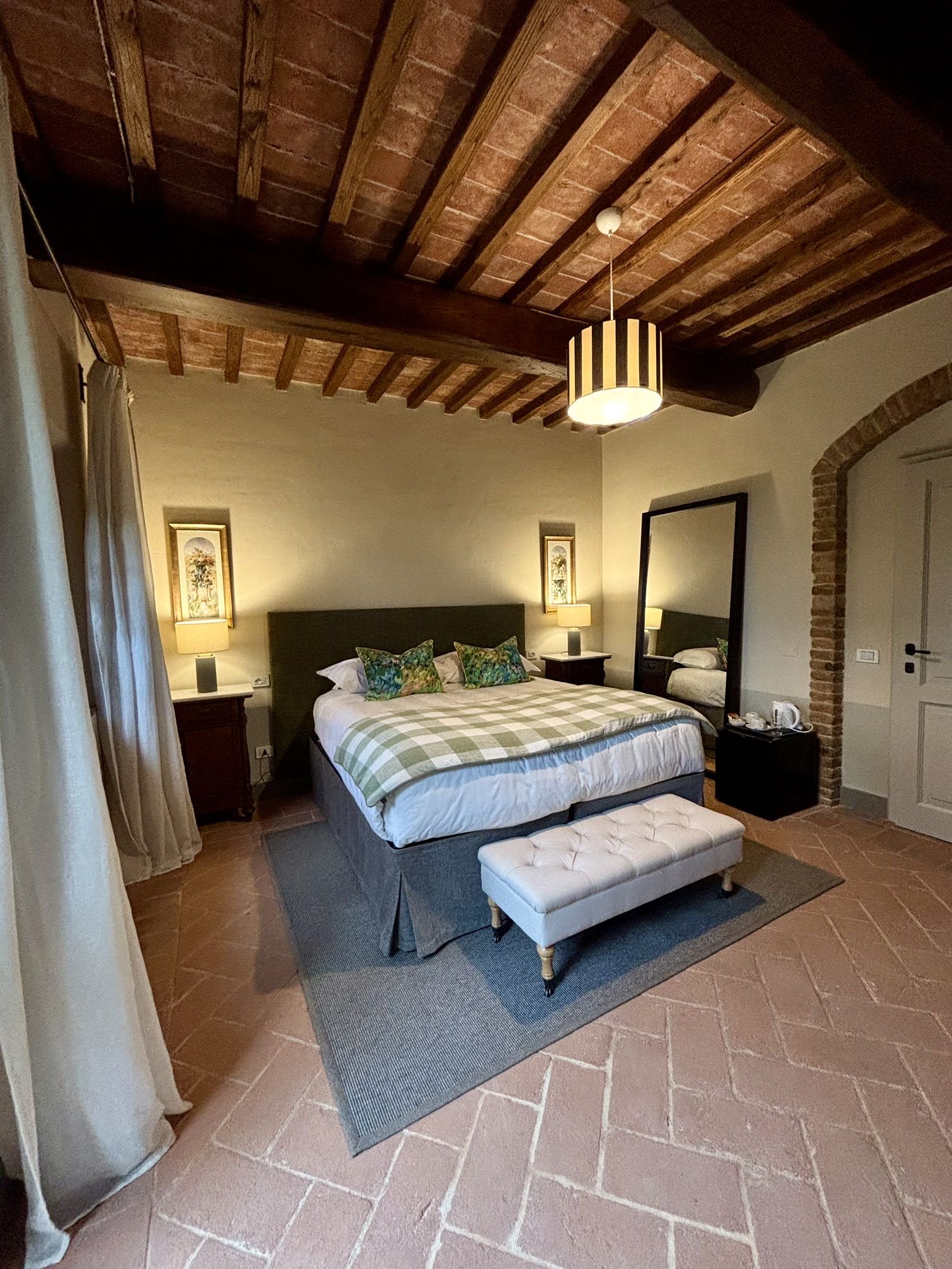 Le nostre luminose Camere Deluxe si trovano al piano terra e al piano superiore del corpo centrale, autentica espressione dello stile toscano con caldi pavimenti in parquet, travi a vista e letto a baldacchino; vi lascerete andare ad un’esperienza senza tempo dove il relax e la calma sono i protagonisti, ma sempre con uno standard dei servizi personalizzato e contemporaneo.