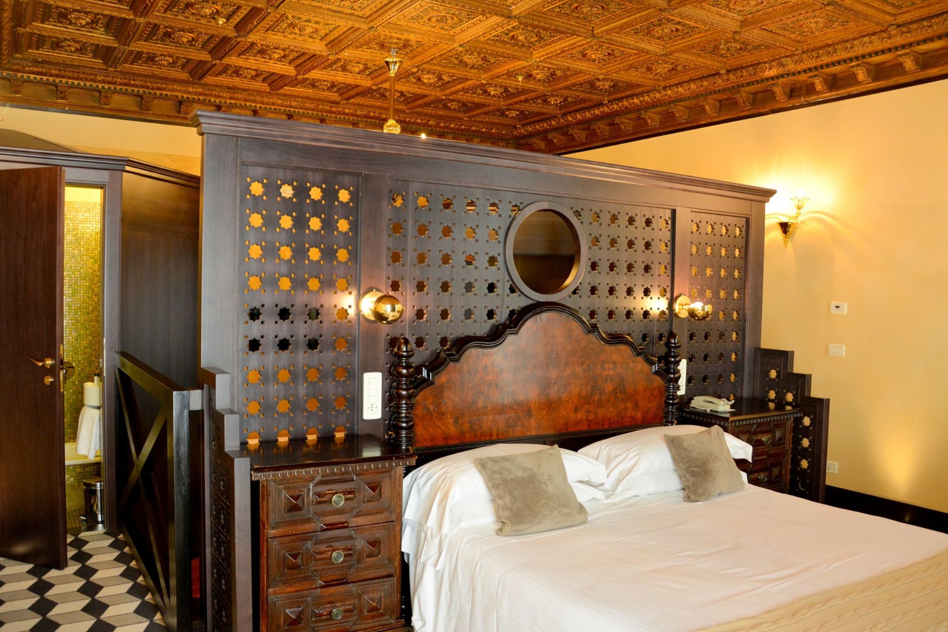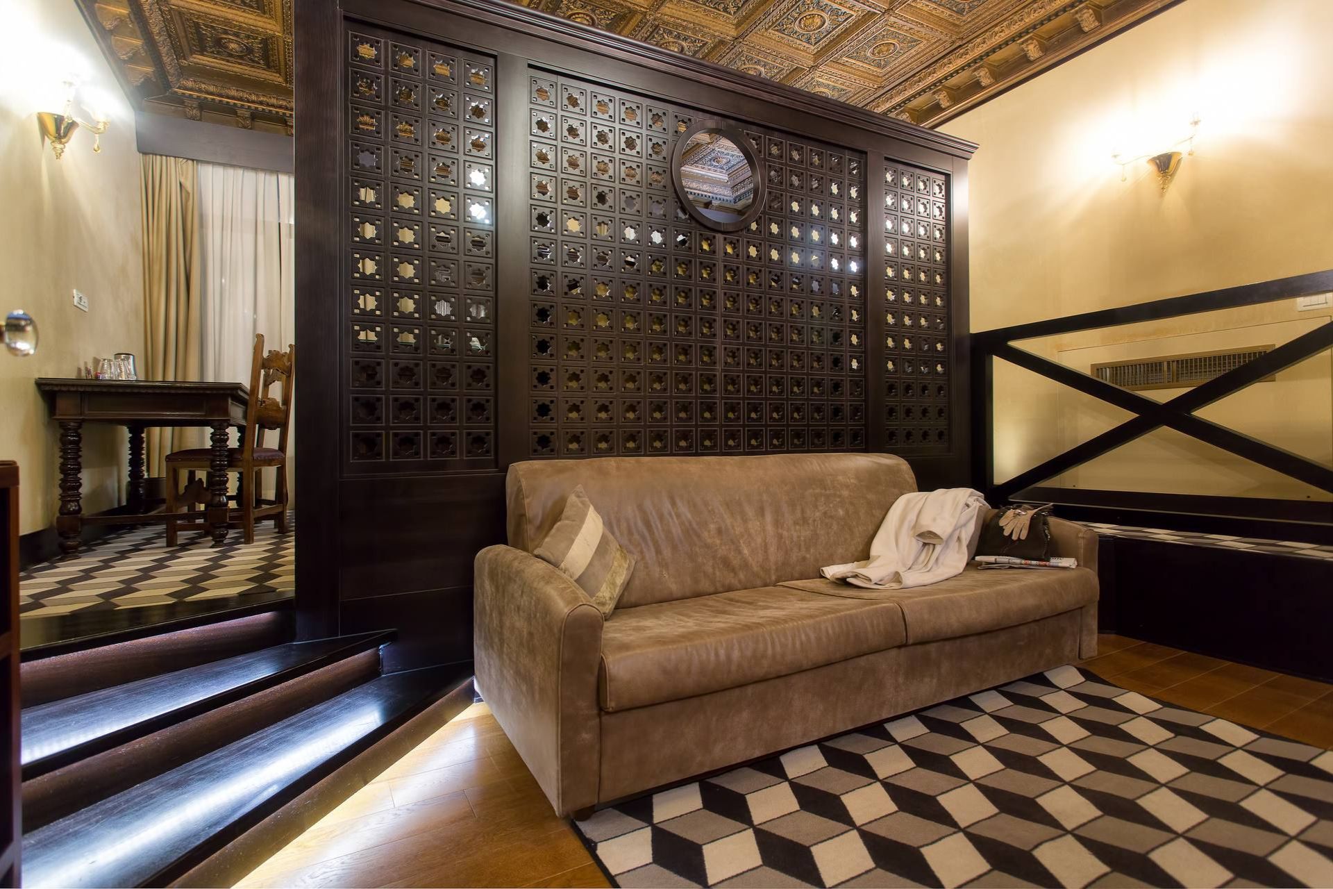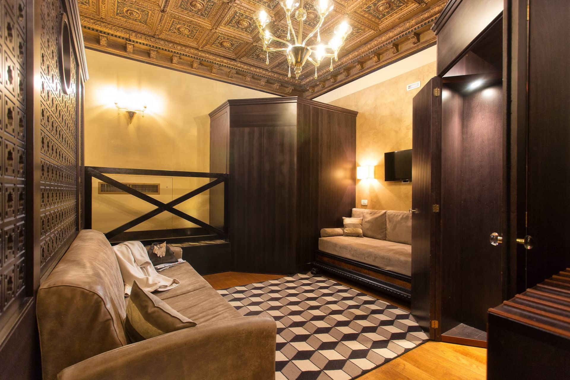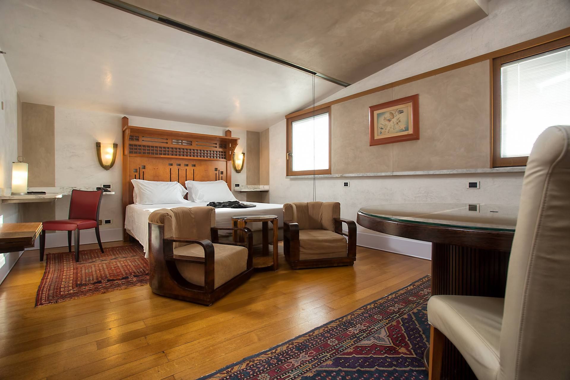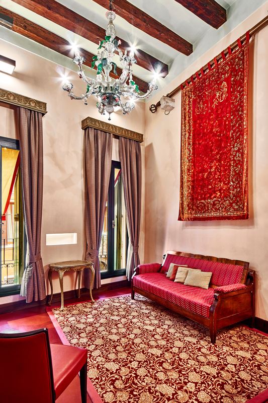I soffitti con affreschi, decorazioni in stucco o travi a vista sono abbinati a tappezzerie moderne; i punti luce creano una particolare atmosfera soffusa, i bagni spaziosi, rivestiti da marmi policromi o mosaico vitreo, sono provvisti di ogni comfort; l'effetto d'insieme è di una perfetta armonia tra spazi, luci e colori.