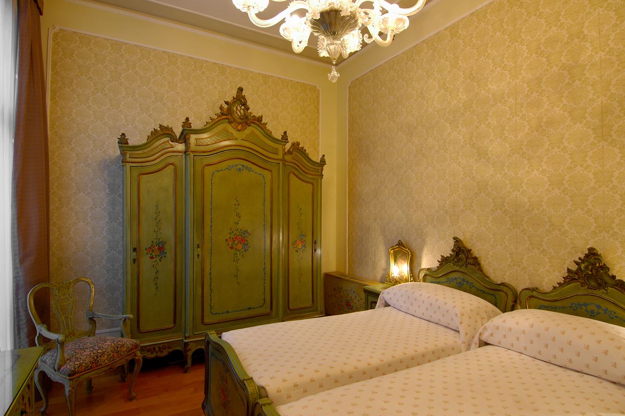 Tutte non fumatori con letto matrimoniale e due letti aggiunti o divano letto; l'arredamento cambia in ogni stanza, e varia da uno stile classico, al tradizionale fino all'Art Decò.