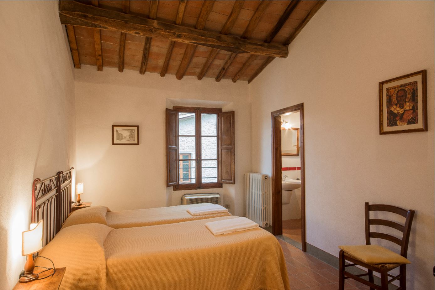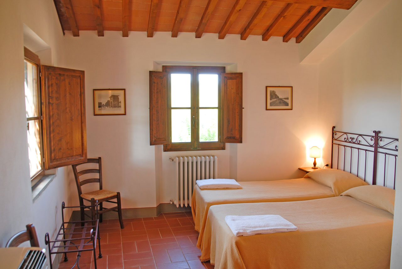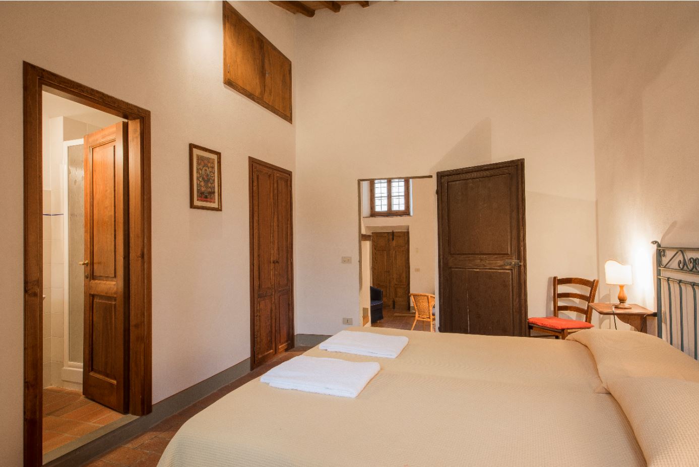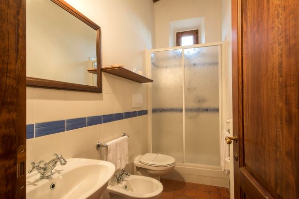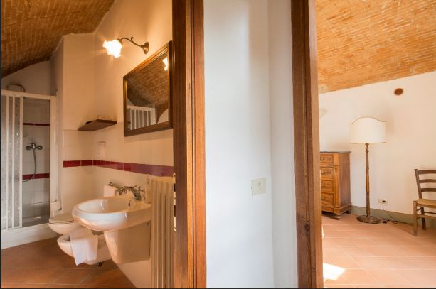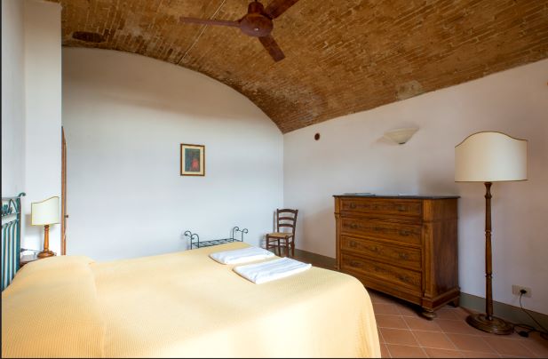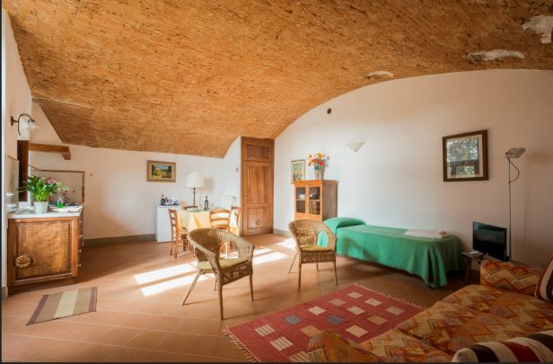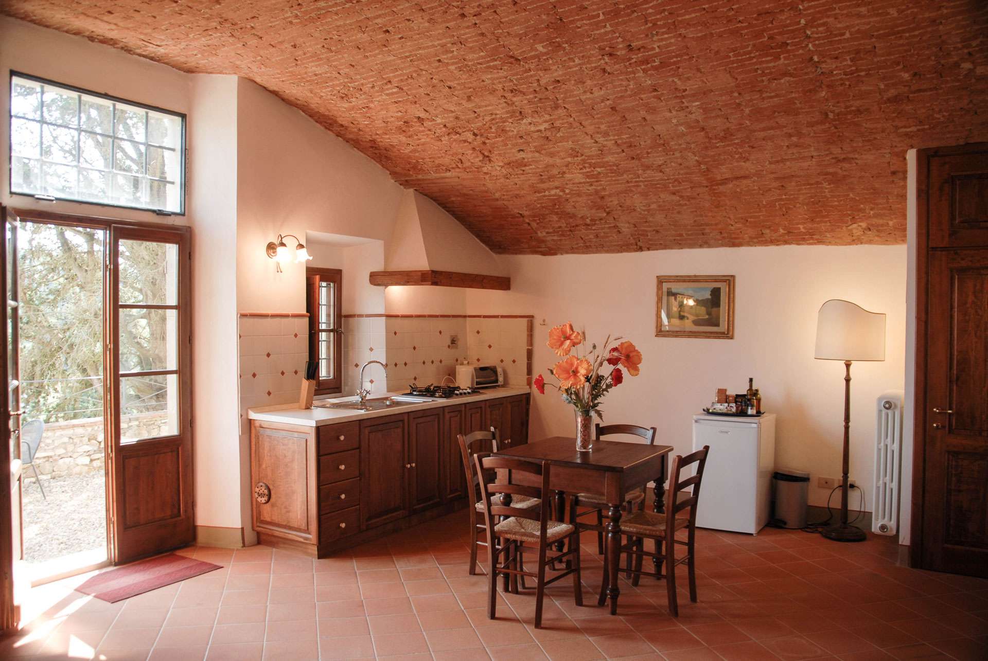 Il Frantoio (65 m2) è un pittoresco appartamento, su un unico livello, con pavimento in cotto dell’Impruneta e l’originario soffitto a volta in mattoncini rossi.