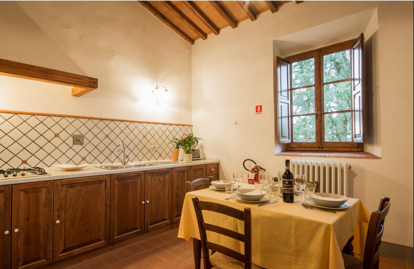 La Cantina (67 m2) è un gradevole appartamento su un unico livello, con pavimento in cotto dell’Impruneta, suggestive travi a vista e caratteristici soffitti a volticciole. L’appartamento si compone di 3 vani.