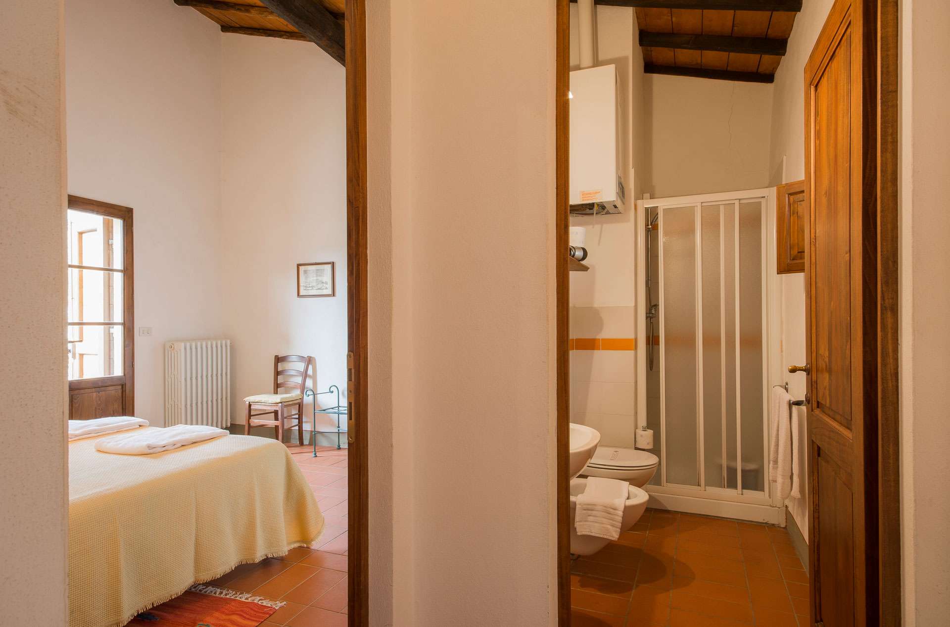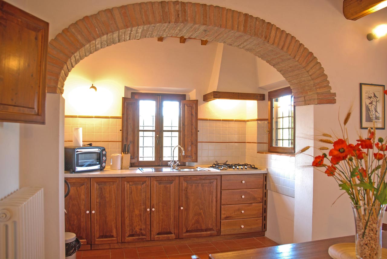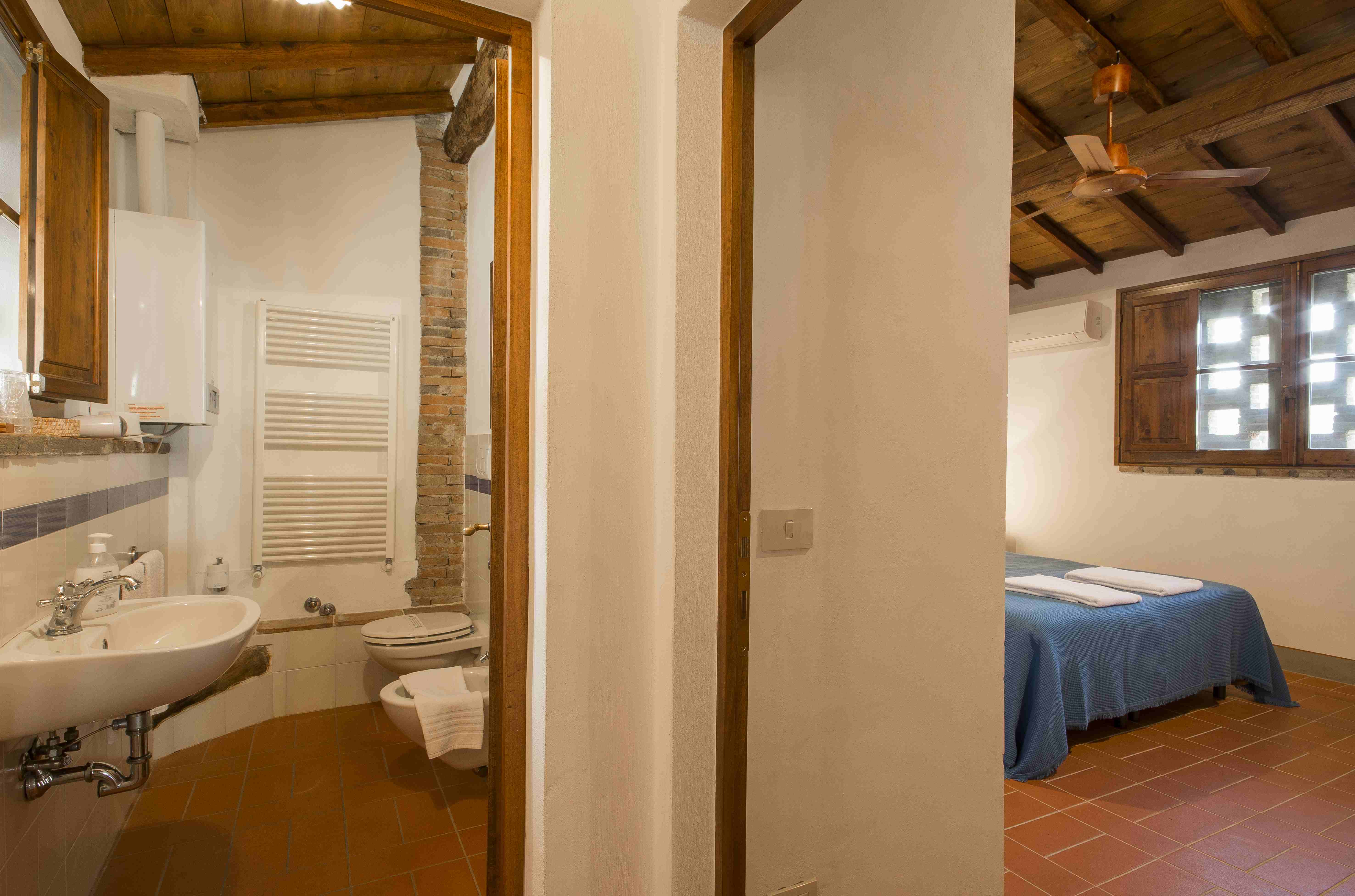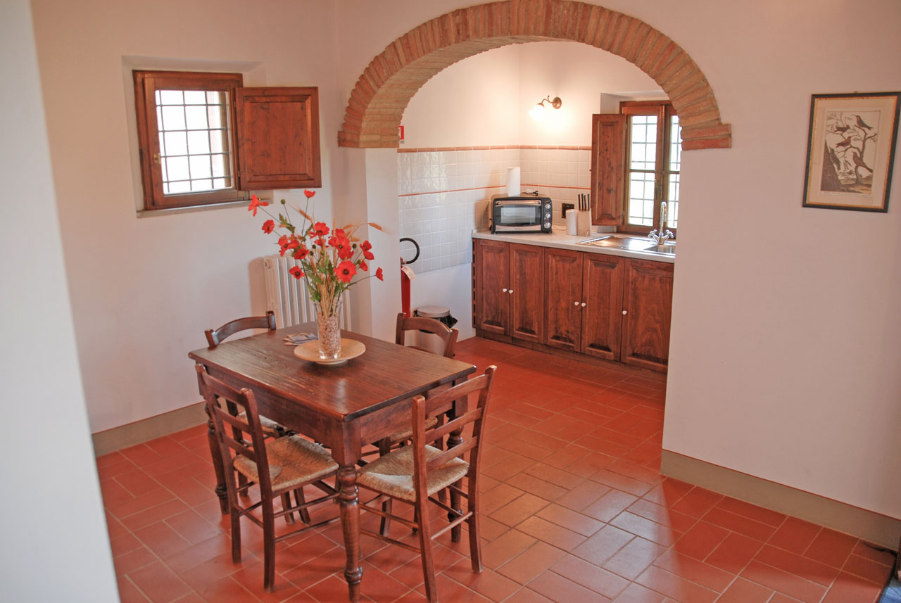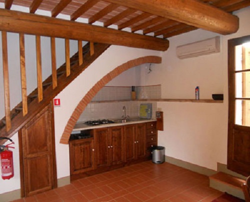 L’Arco (35 m2) è una graziosa casetta indipendente, su un unico livello, con pavimento in cotto dell’Impruneta e travi a vista.