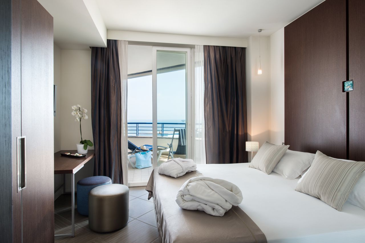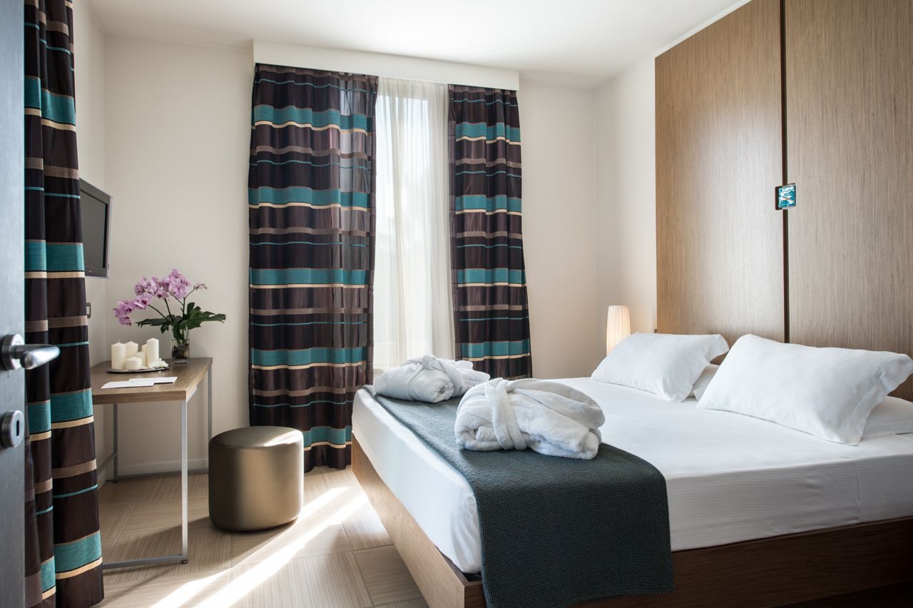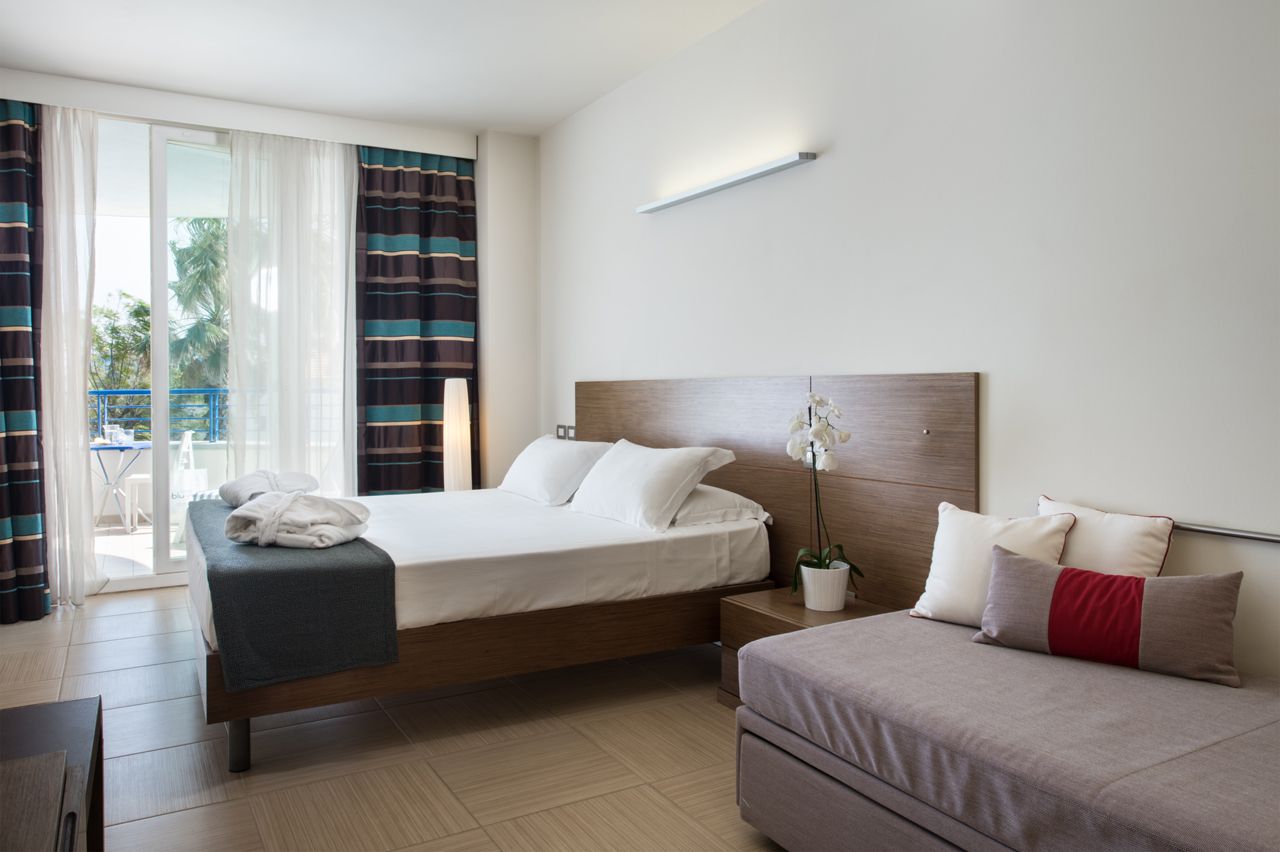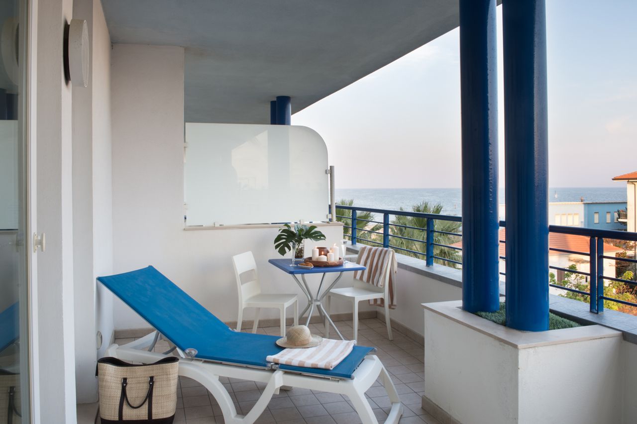 Our Blu Light rooms have a charming, elevated view of the garden andcombine value for money with all the excellent services of the Blu Suite Hotel. Thespacious room, furnished terrace and kitchenette all help to make your stay easy,whether you’re vacationing with family or in the area for work.This room offer: umbrella and sunbeds on our private beach with beach towel (free change every 7 days), access to outdoor pool heated (from Easter to 15th September) , Wi-FiTV with SKYVideo surveilled private parking.