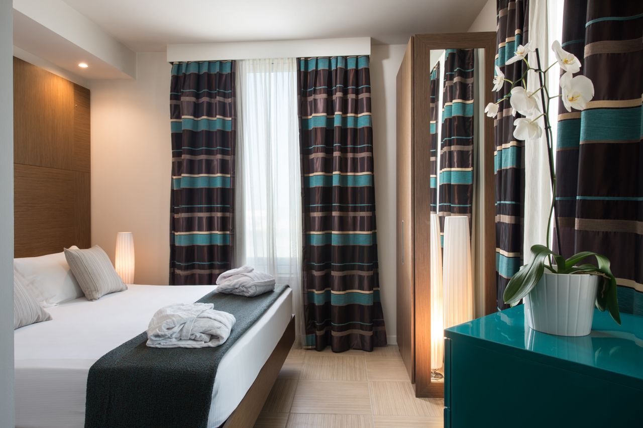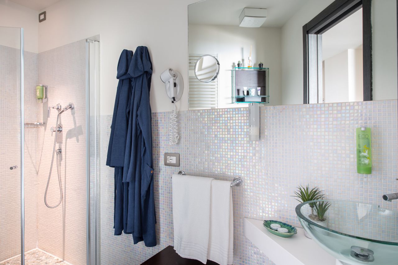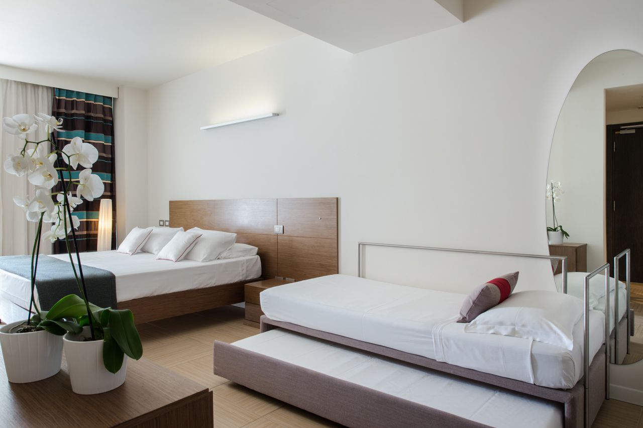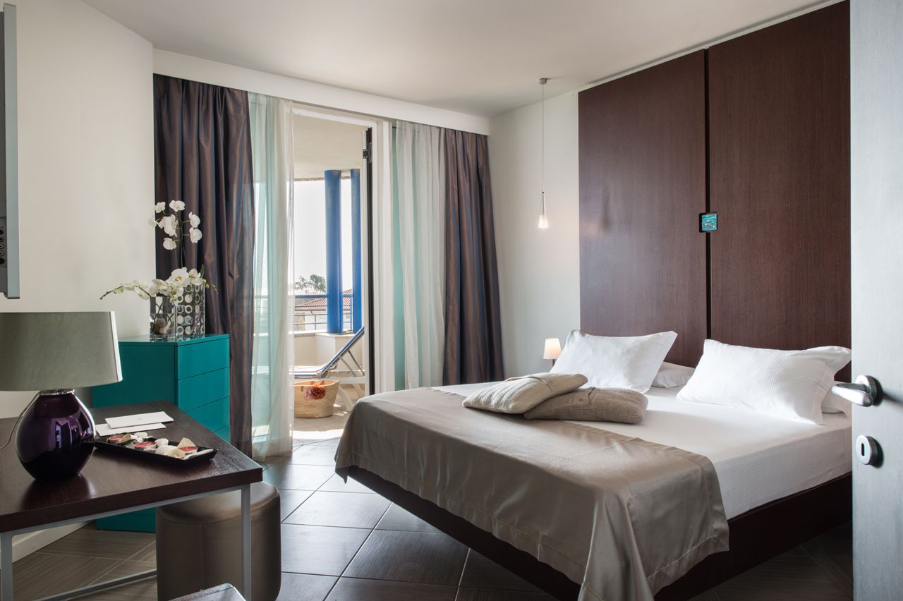 Our Blu Light rooms have a charming, elevated view of the garden andcombine value for money with all the excellent services of the Blu Suite Hotel. Thespacious room, furnished terrace and kitchenette all help to make your stay easy,whether you’re vacationing with family or in the area for work.This room offer: umbrella and sunbeds on our private beach with beach towel (free change every 7 days), access to outdoor pool heated (from Easter to 15th September) , Wi-FiTV with SKYVideo surveilled private parking.