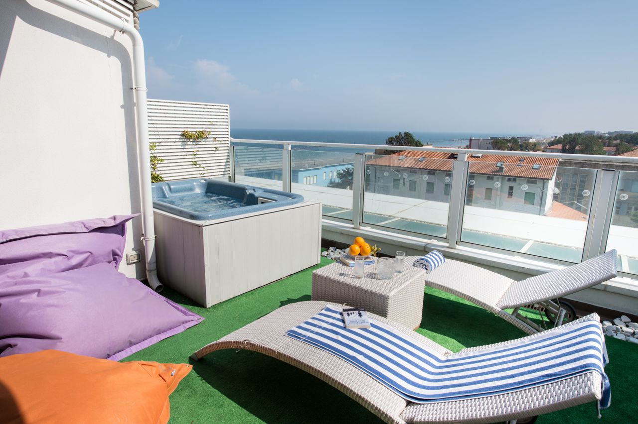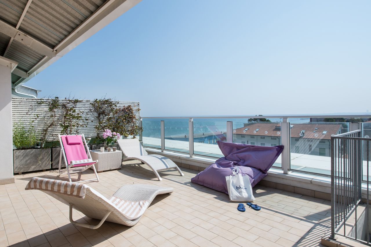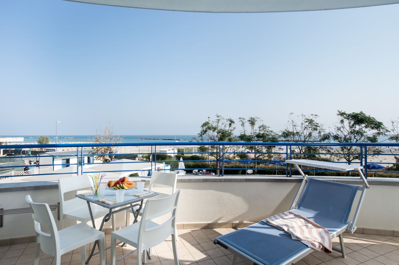 The Penthouse Blue Moon is the ideal choice for couples and for young families.In particular it is very appreciate by young couples who have two babies, because it’spossible to add easily an extra bed for two children up to 9 years.A large terrace overlooking the sea of Bellaria with solarium and Jacuzzi welcomesyou, thought to enjoy a quiet moment away from the crowd. In the Jacuzzi on theterrace you can enjoy pleasant outdoor moments rocked by the sea breeze, whileinside you have all the space to relax and spend your free time.This penthouse offer:Private beach access (from Easter to 15th September) with umbrella in the front row, 2 sunbeds and beach towels (with free change every 7 days) Access to outdoor pool heated (from Easter to 15th September), with umbrellas and sunbedsUnlimited access to spaSpa kit with slippers and robeMini-bar restocked dailyBreakfast served in suite or terraceWi-FiTV with SKYVideo surveilled private parking
