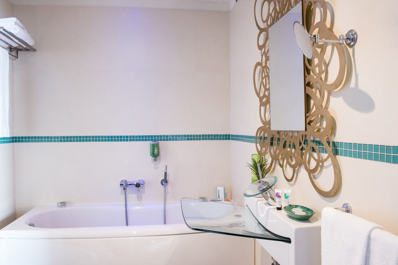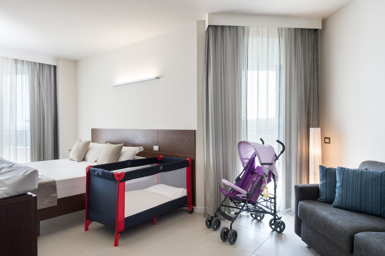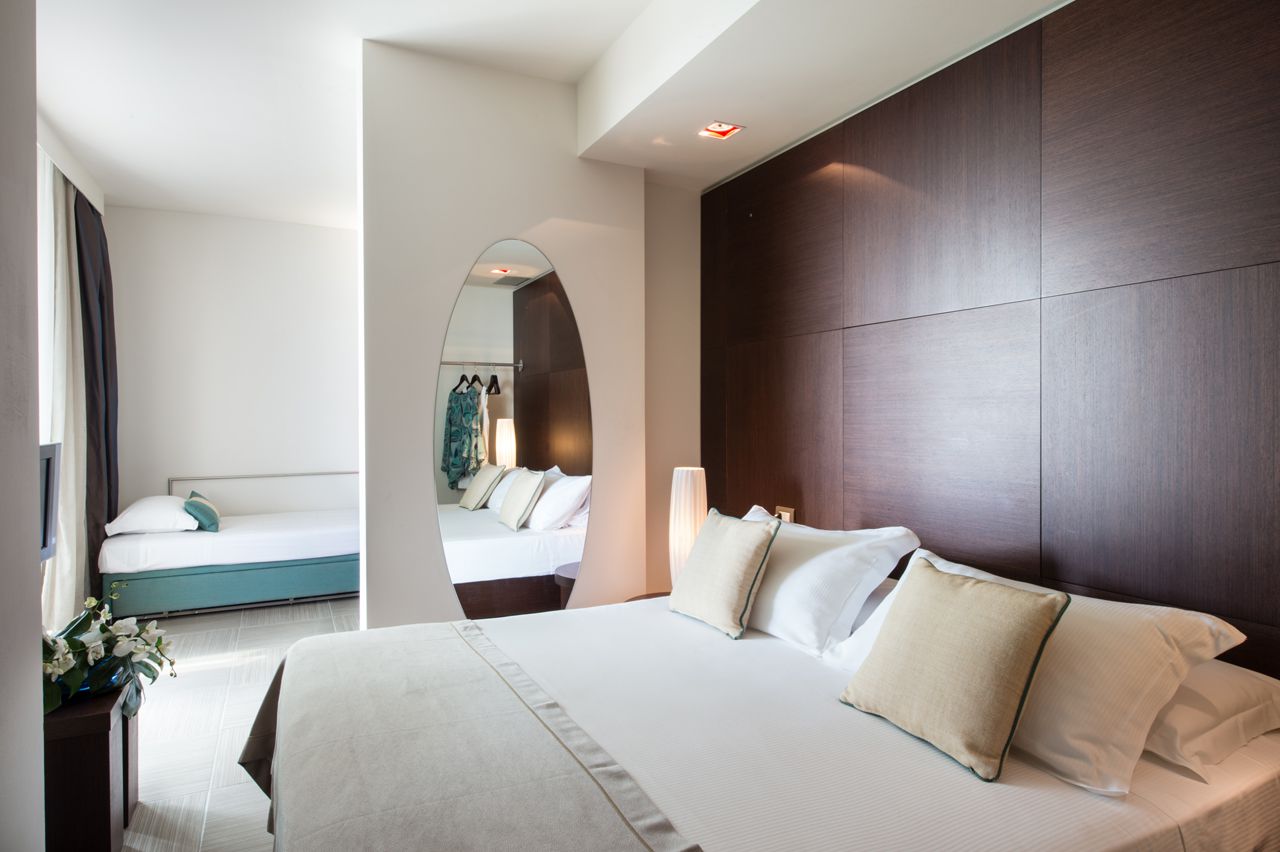 The 3-room suites at Blu Suite Hotel at Bellaria Igea Marina are more than just a luxury room. They’re really mini apartments with separate rooms intended for a familylooking for the utmost space and comfort. Let your children play happily while you relax intotal privacy. Throw together some baby food or a snack in the kitchenette and forrest times there are 2 spacious, furnished balconies to take some sun and admire thesea.This suite offer:Private beach access (from Easter to 15th September) with umbrella, 2 sunbeds and beach towels (with free change every 7 days)Access to outdoor pool heated (from Easter to 15th September) , with umbrellas and sunbedsUnlimited access to spaSpa kit with slippers and robeMini-bar restocked dailyWi-FiTV with SKYVideo surveilled private parking