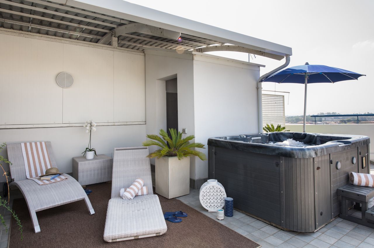 The Blu Paradise penthouse suite is like a small private paradise: 35 m2 of airysunshine on a private rooftop over 30 m2 with jacuzzi. Ideal for a couple cravingintimacy or for a family needing some space and comfort at the highest level. Soak inthe hot tub under the stars, take in the fading sun far from the glance of others andmake full use of the modern kitchenette in the separate sea-facing living roomThis Penthouse offer:Private beach access (from Easter to 15th September) with