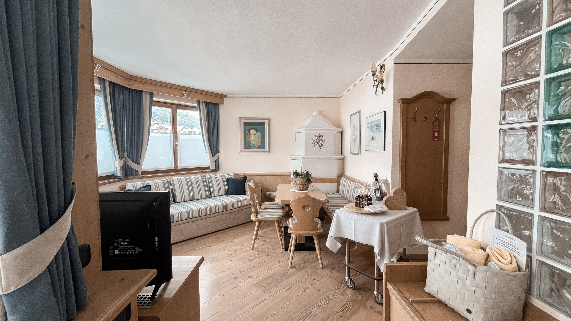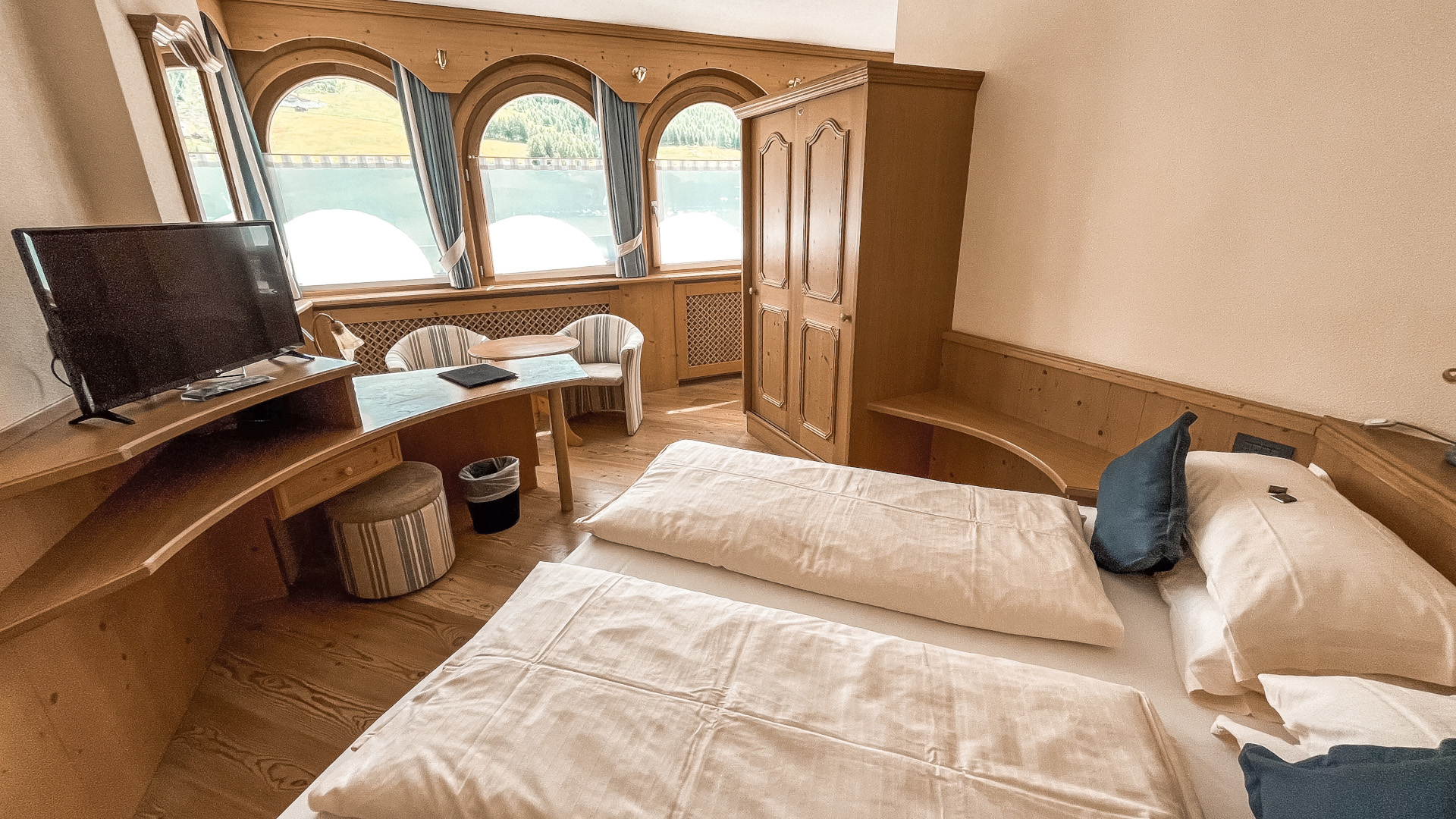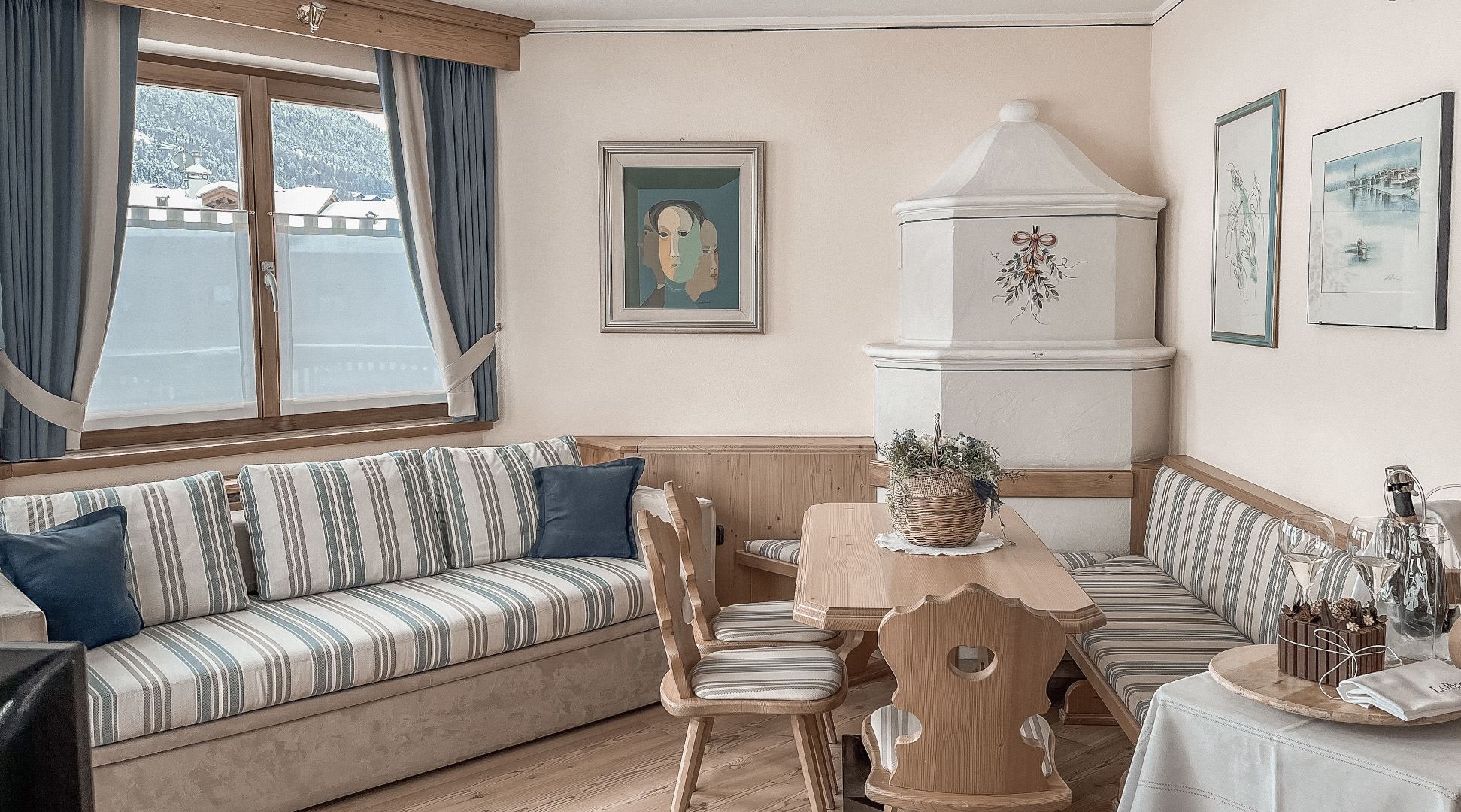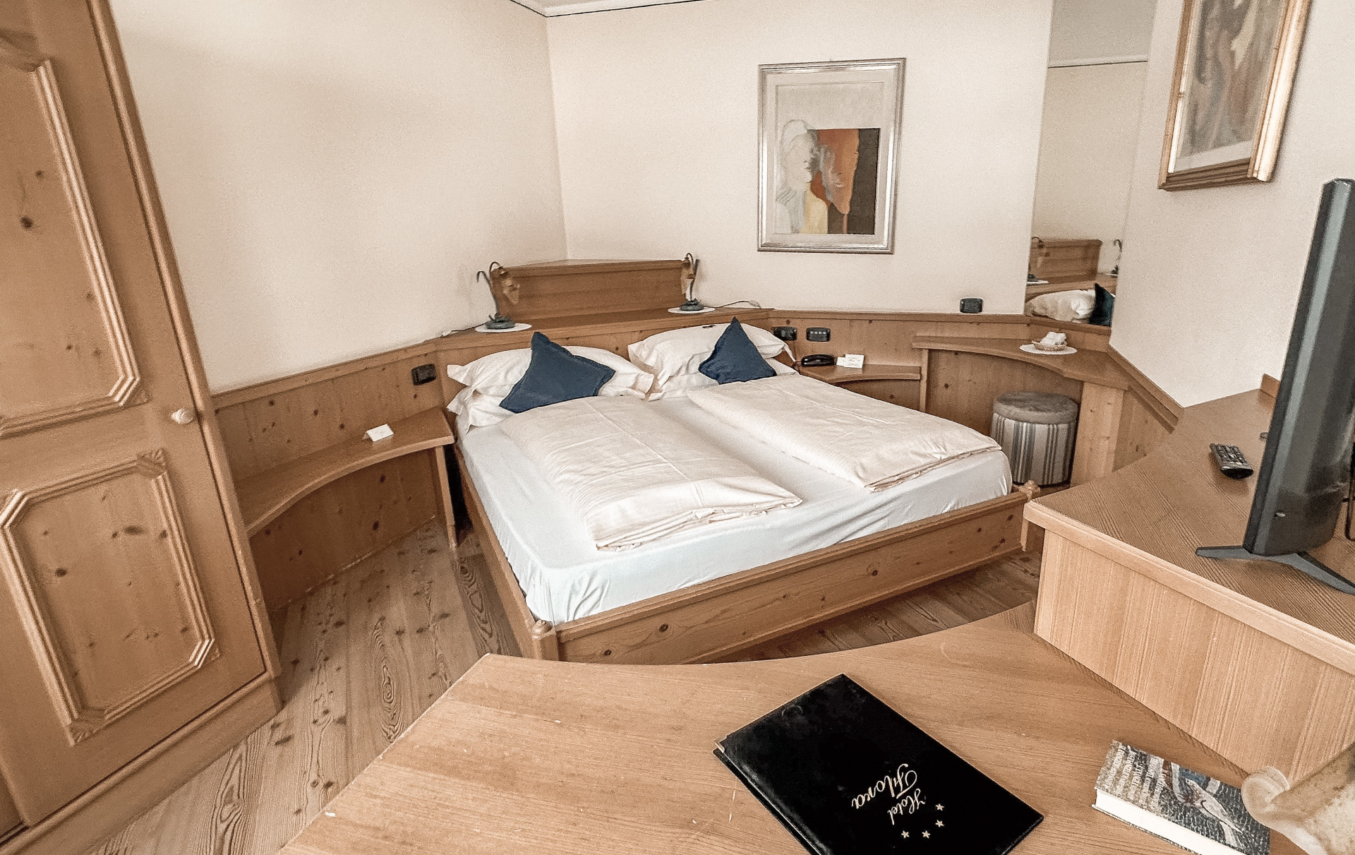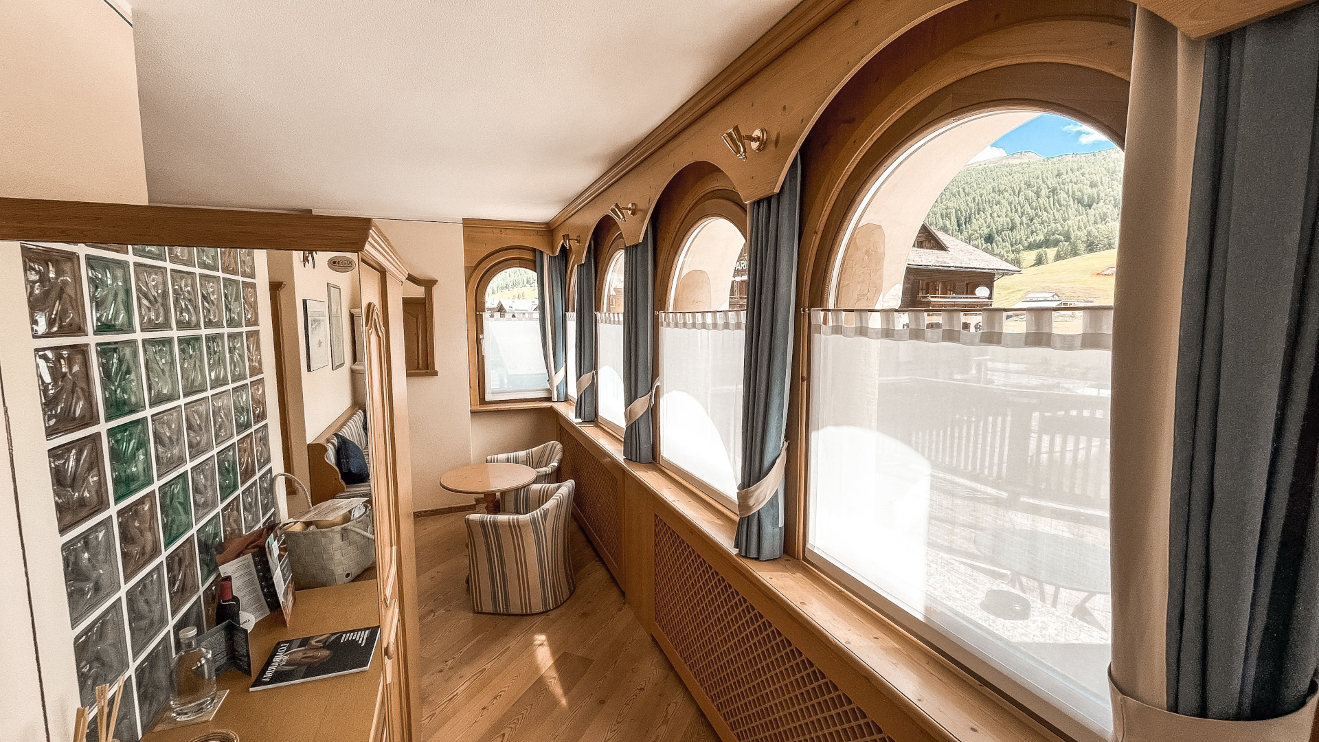Caratteristica stanza giorno e notte con balcone panoramico esposto a sud. Goditi il lusso di una Junior Suite su due livelli (35mq) arredata con cura in stile montano. A renderla unica le travi a vista e un curato arredamento classico. Ideale per chi desidera spazi ampi e la possibilità di ammirare la bellezza della montagna godendo di uno spazio intimo e riservato.