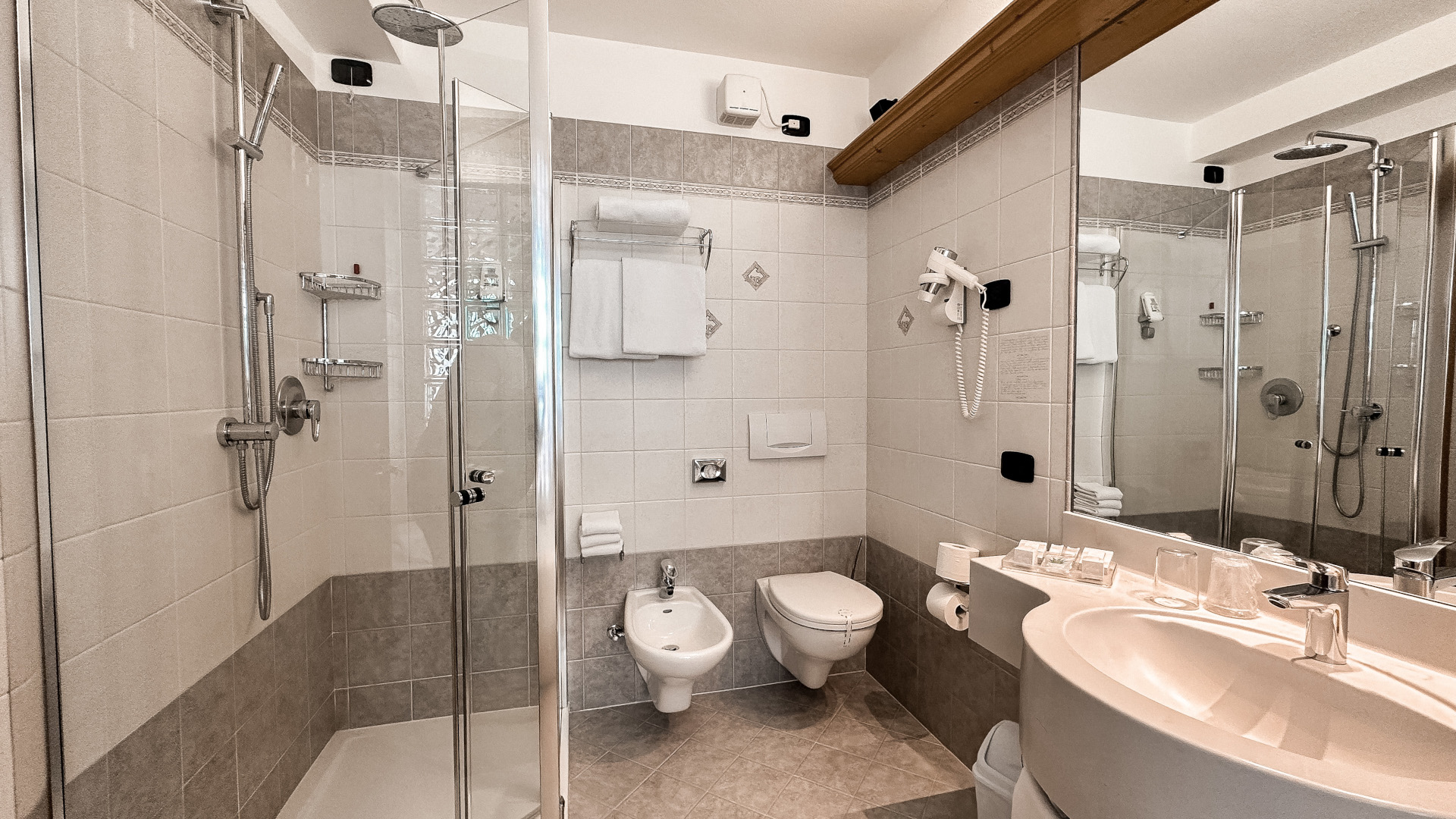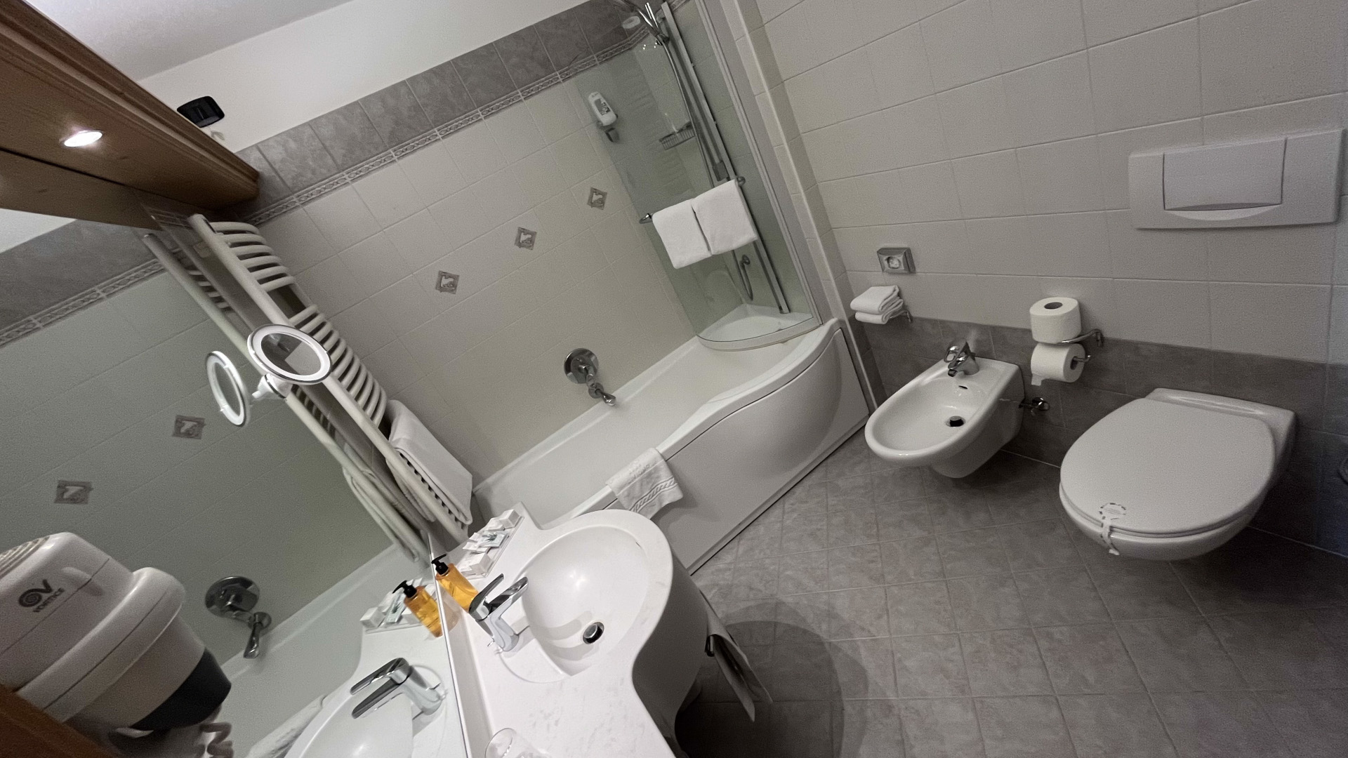 Ideale per chi cerca una maggiore comodità o per chi trascorre una vacanza più lunga. Il bagno è dotato di bidet e sia di vasca che di doccia, e il balconcino esposto a nord o sud permette di ammirare il paesaggio alpino.