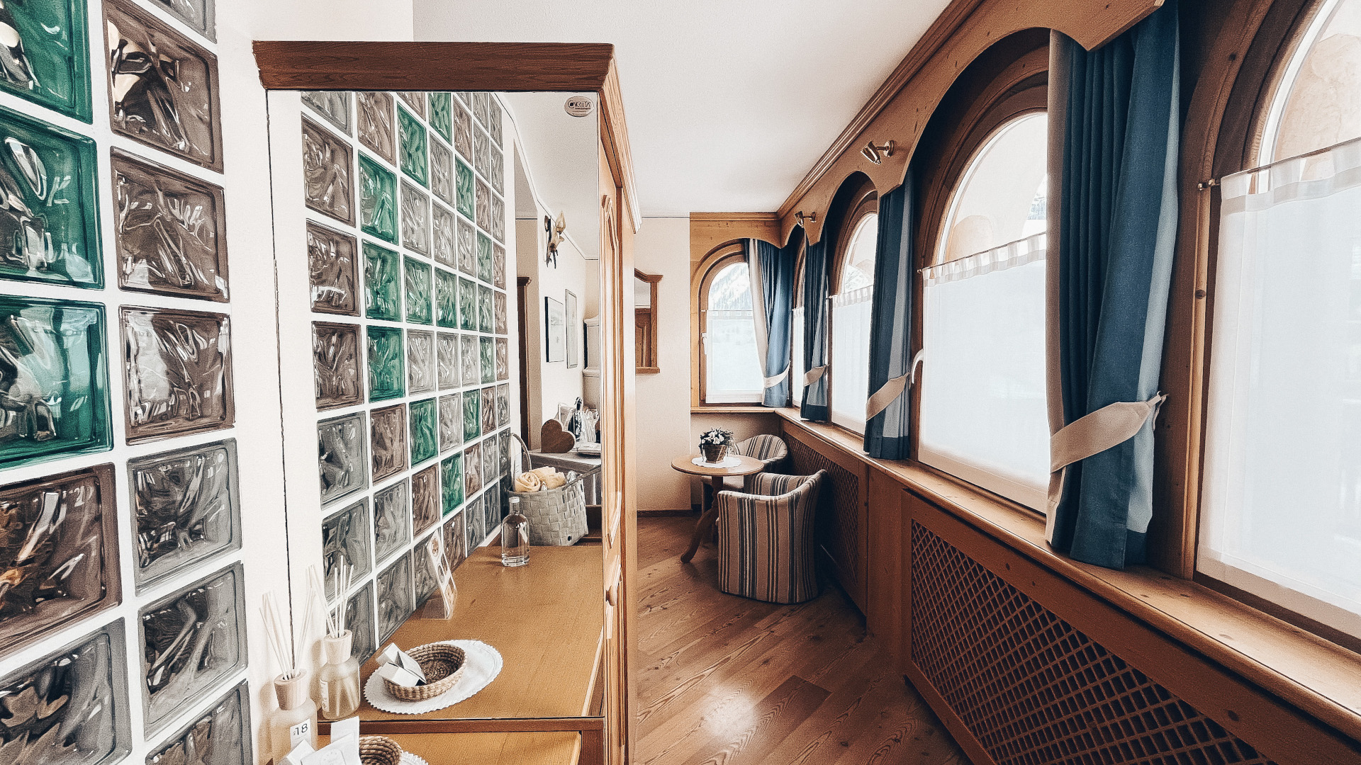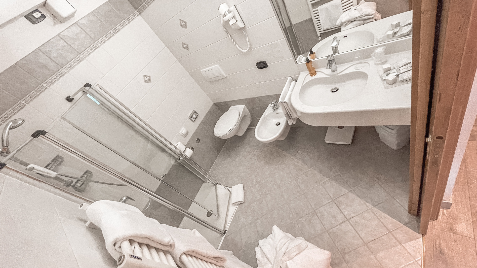 Troverai a tua disposizione per tutto il soggiorno: morbidi asciugamani e accappatoi, vanity set, diffusore di essenze, asciugacapelli, Wi-Fi, acqua di montagna energizzata, zaino per le tue passeggiate in montagna, borsa SPA con asciugamani e ciabatte per scendere in qualunque momento nella zona benessere con sauna, bagno turco, docce tropicali, area relax e piscina con idromassaggio e lama cervicale.