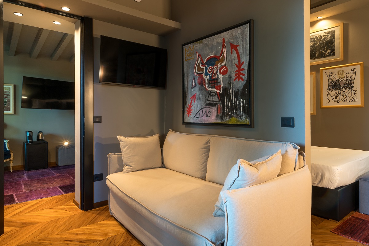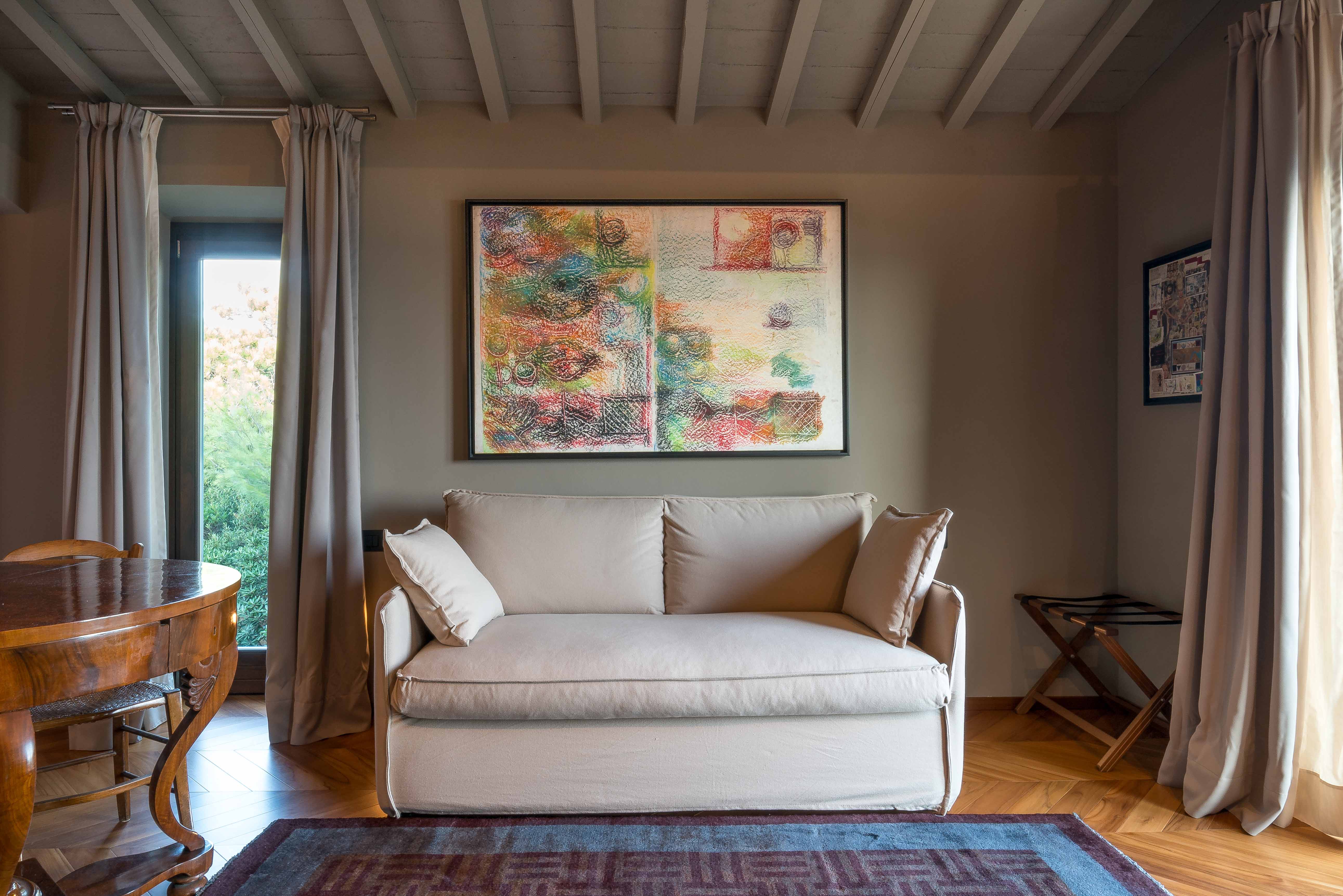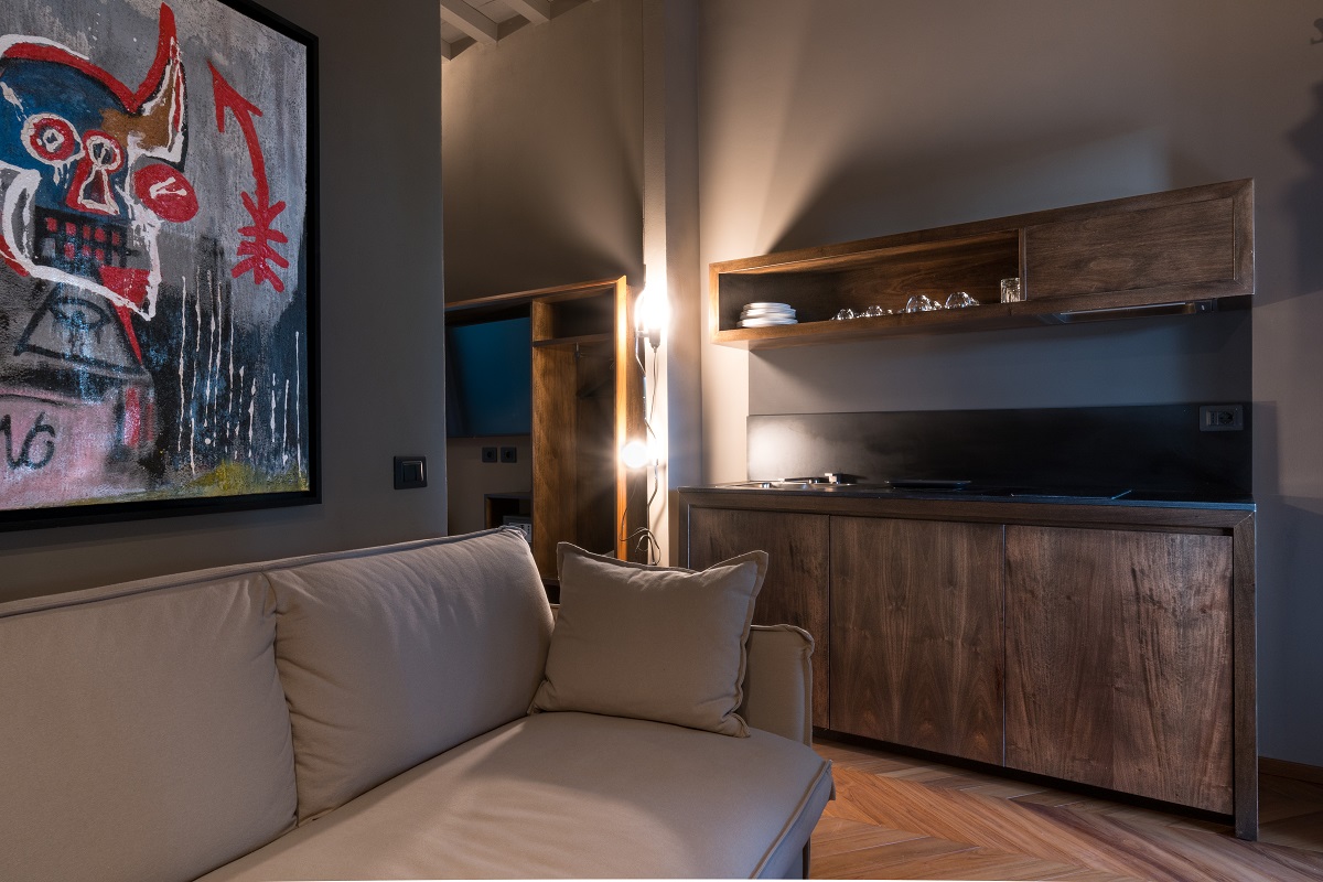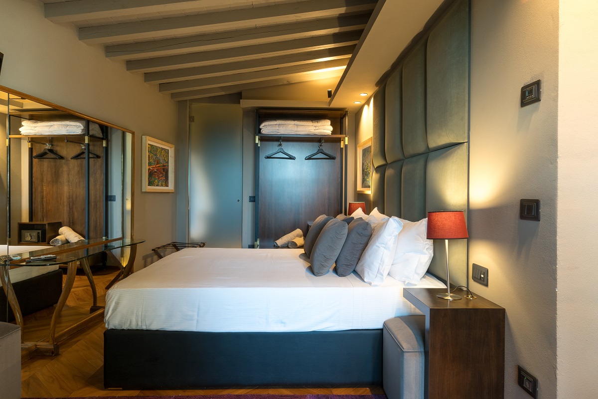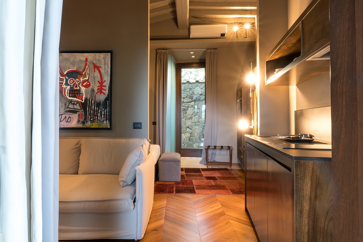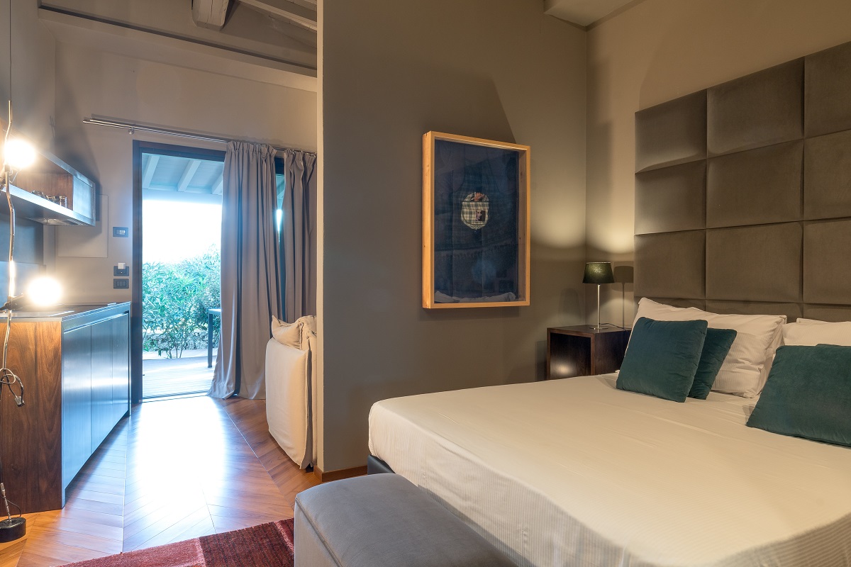 Con i suoi 45 mq, la Suite regala un ambiente spazioso e confortevole che si contraddistingue per l'attenzione ai dettagli, l'unicità dell'arredo, la sobrietà delle tinte, in perfetta armonia con la natura circostante.