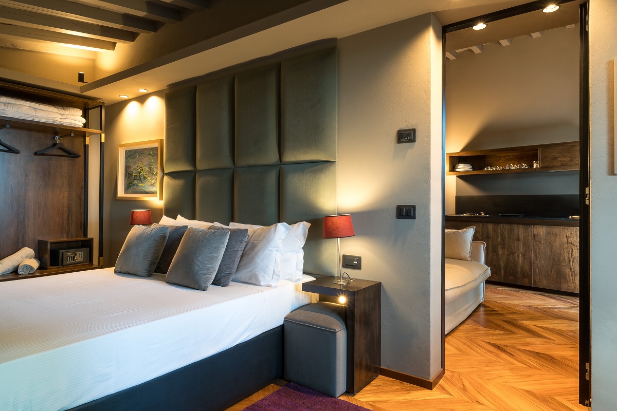 Gli ambienti regalano una piacevole sensazione di benessere e riposo, grazie anche alla sobrietà dei colori dei tessuti made in Italy, la tecnologia funzionale, i servizi taylor made.