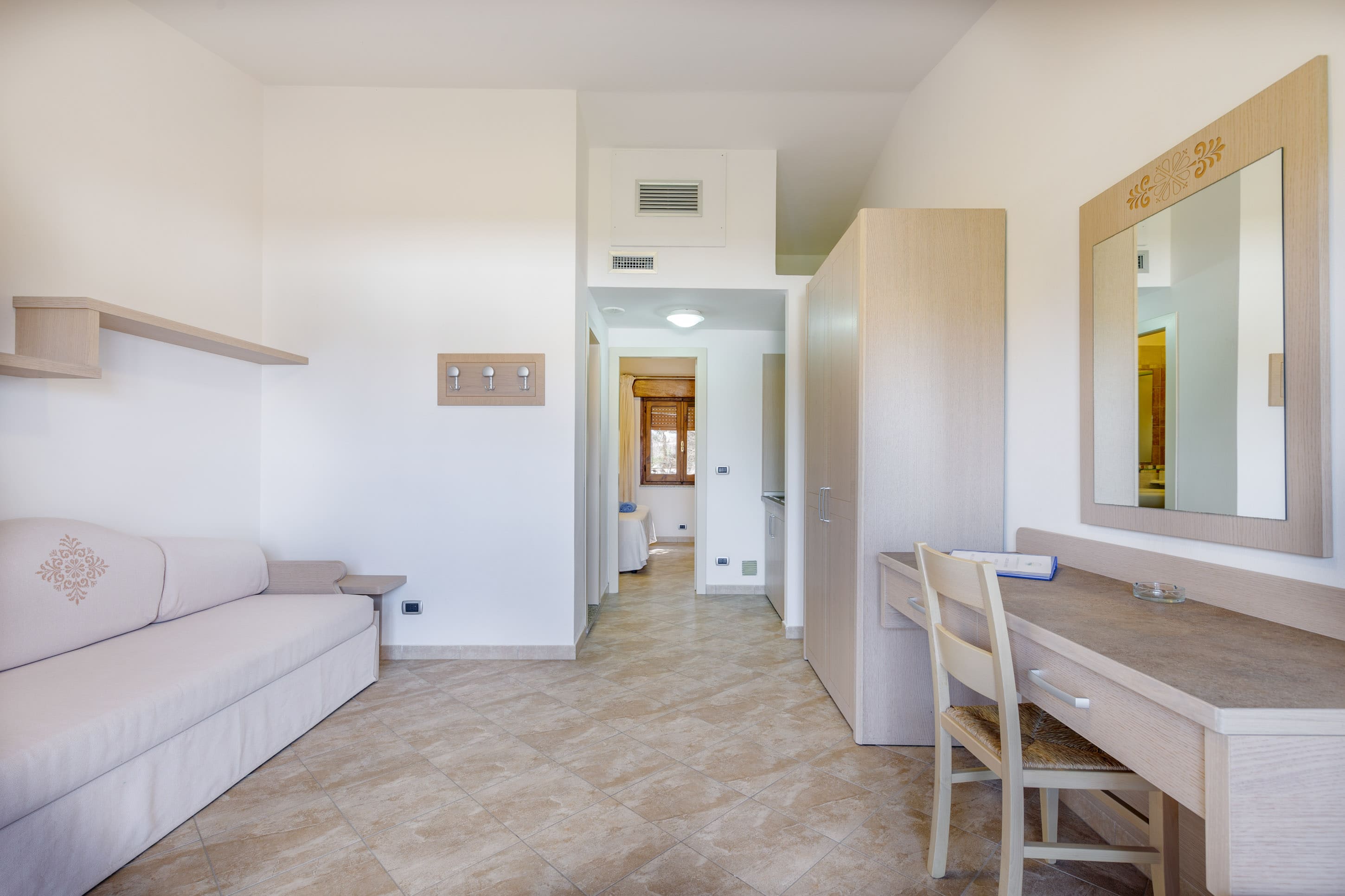 Le suite Superior sono distribuite su due ambienti: una zona notte per due persone (letto cm 160 x cm 190)e una zona soggiorno con divano letto e due letti singoli. E' dotata di uno spazio esterno (patio se la suite è ubicata al piano terra; balcone se la suite è ubicata al piano superiore). E' disponibile un angolo cottura, attivabile ad un costo aggiuntivo e solo in presenza di bambini entro i 2 anni di età. L'angolo cottura consente di riscaldare latte e/o pappe a disposizione del cliente, ed è fornito pentolino e stoviglie. L'aria condizionata è inclusa nella tariffa. Sono presenti asciugacapelli e cassaforte.