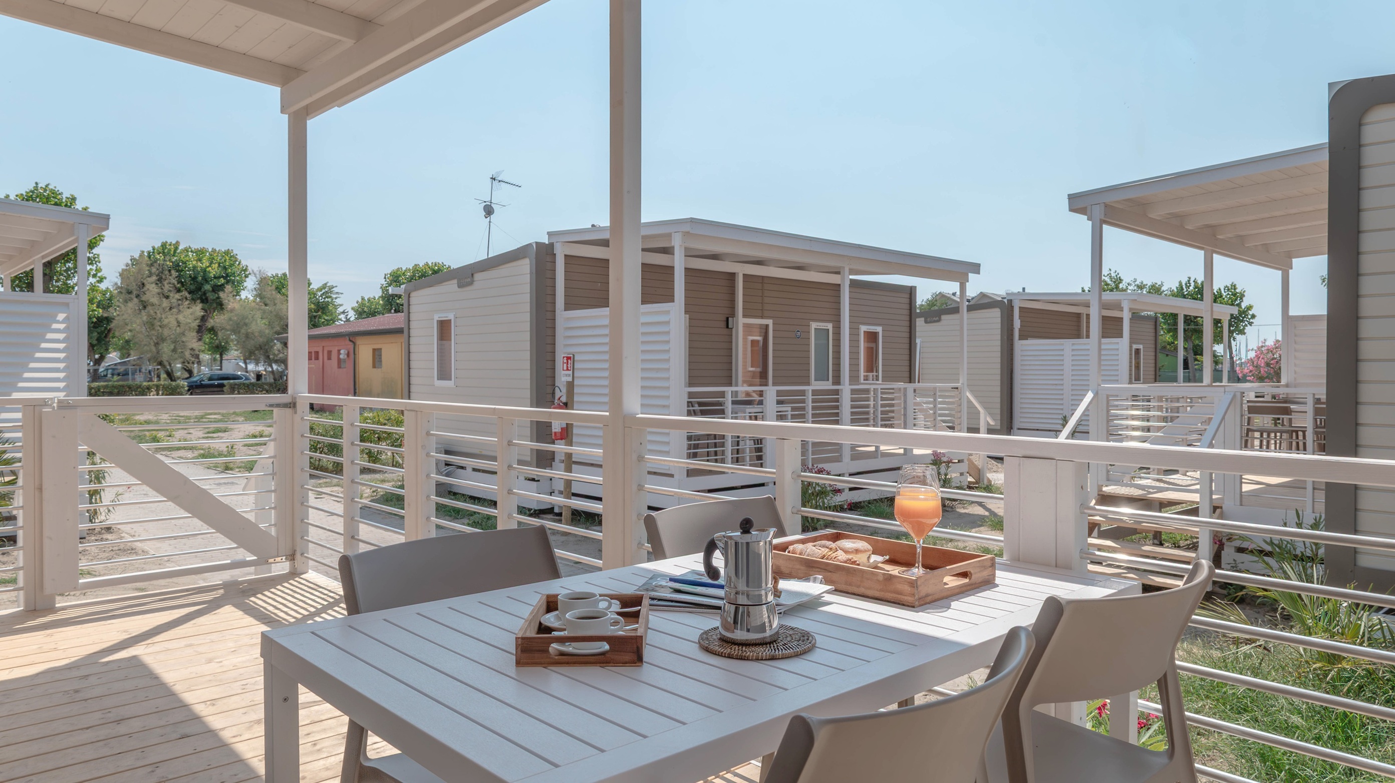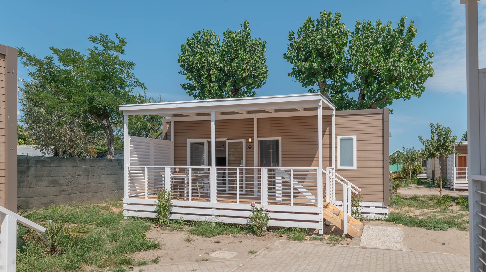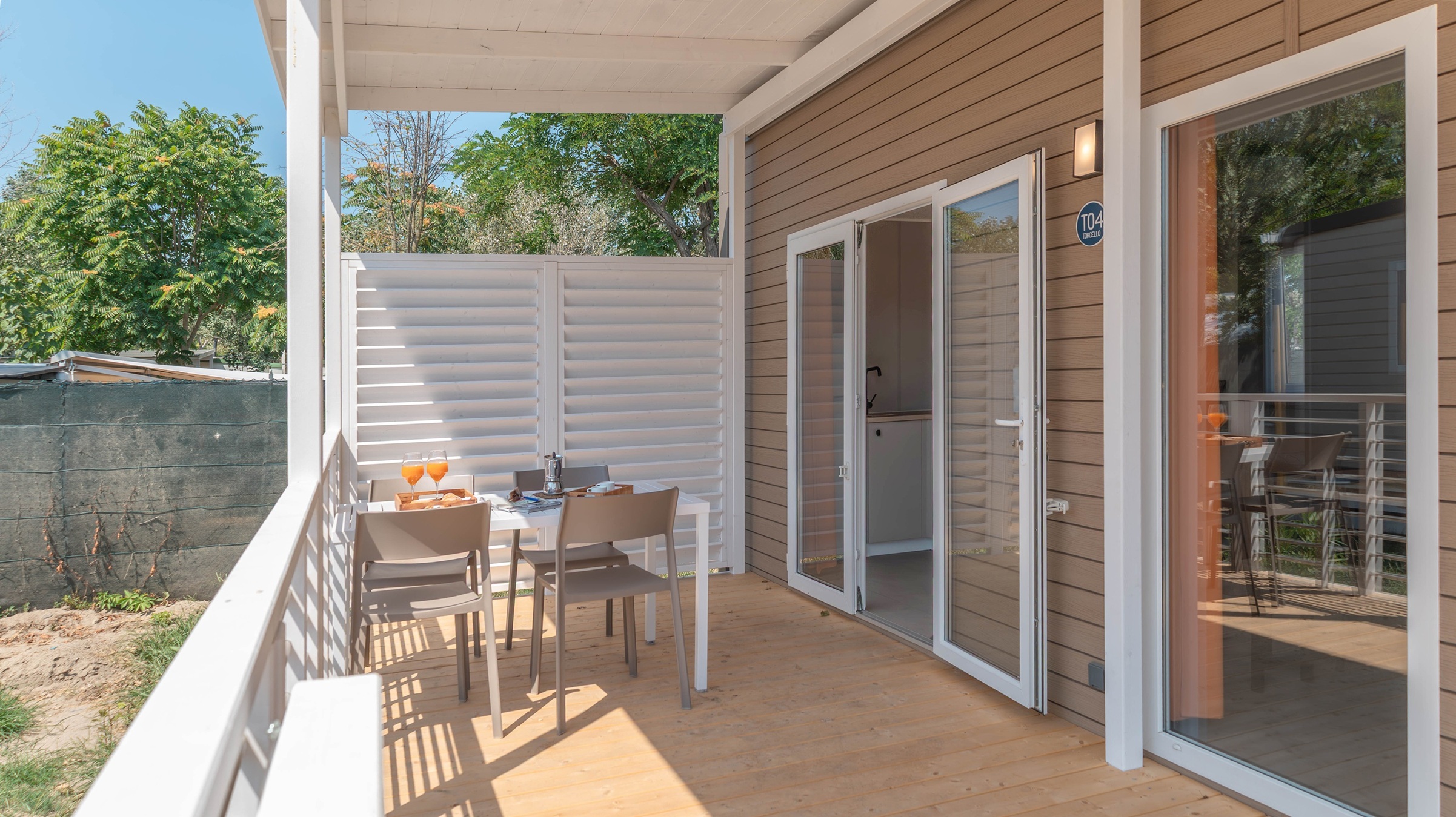 Le Mobile Home Giudecca pet friendly sono perfette per coppie e famiglie che desiderano un soggiorno tranquillo in compagnia dei loro amici a quattro zampe. Spaziose e molto moderne, dai colori naturali e design elegante: godono di soggiorno con cucina attrezzata. Tre camere con 5 letti totali (1 matrimoniale e 4 singoli) e un bagno con sanitari moderni e doccia. La veranda in legno offre uno spazio ideale per rilassarsi a contatto con la natura con comode sedie. Nel prezzo sono inclusi i consumi di acqua, luce e gas, aria condizionata 1 ombrellone e 2 lettini nella nostra spiaggia privata nell’area dog, 1 posto auto.