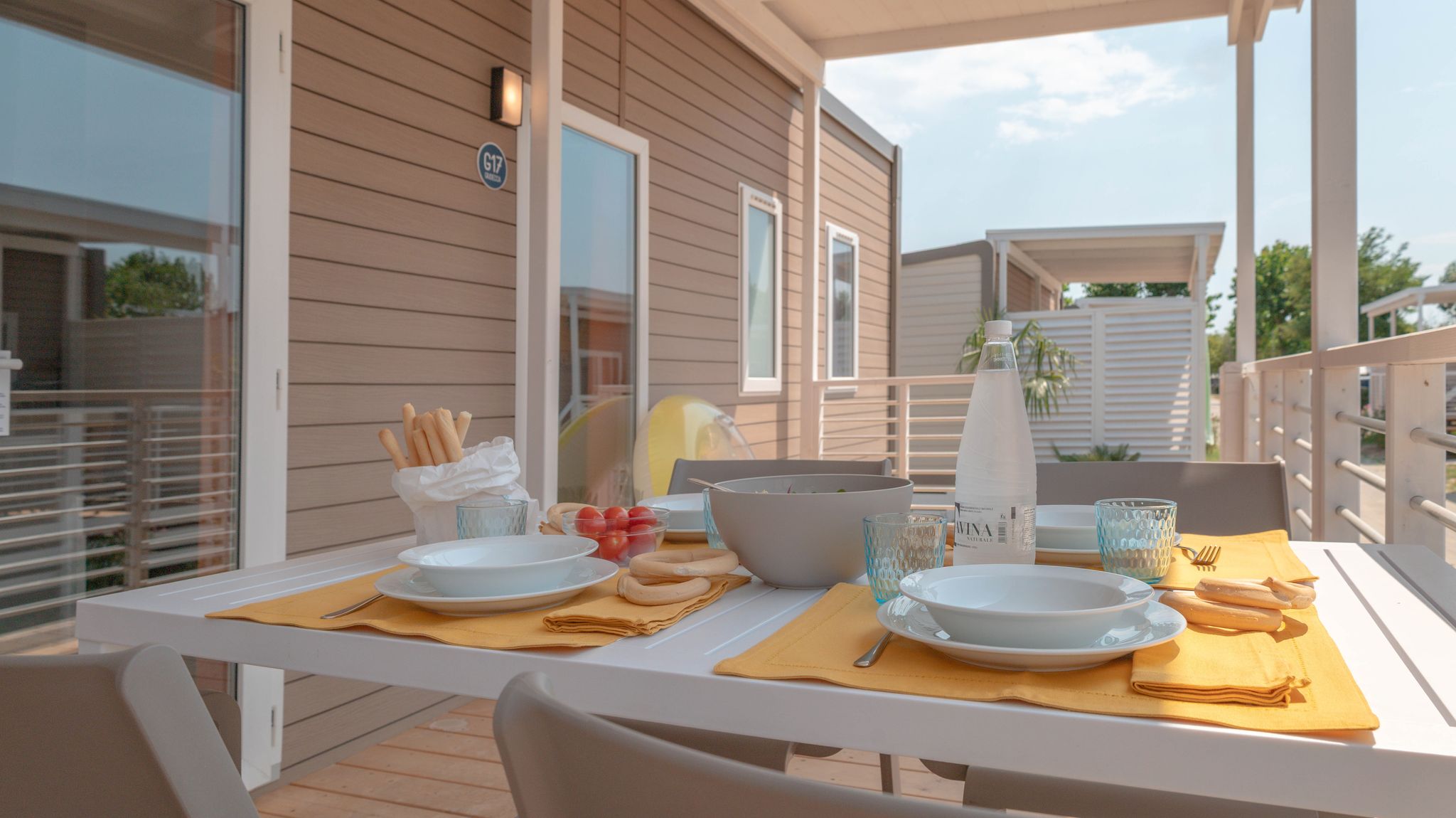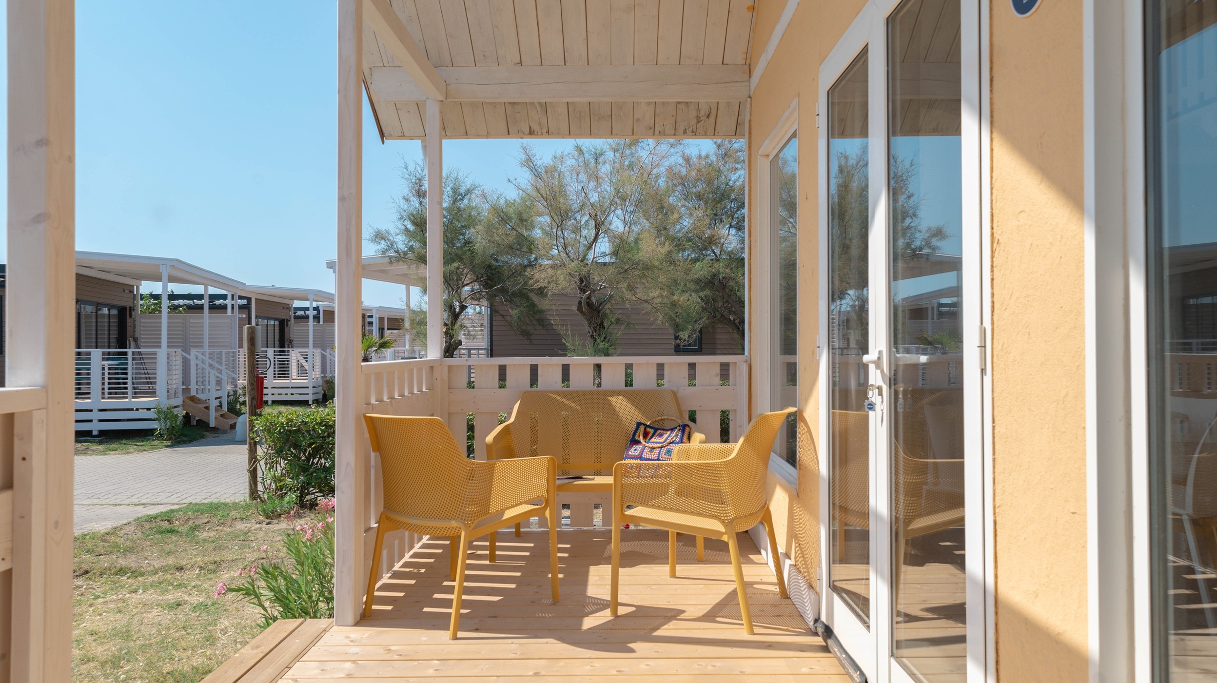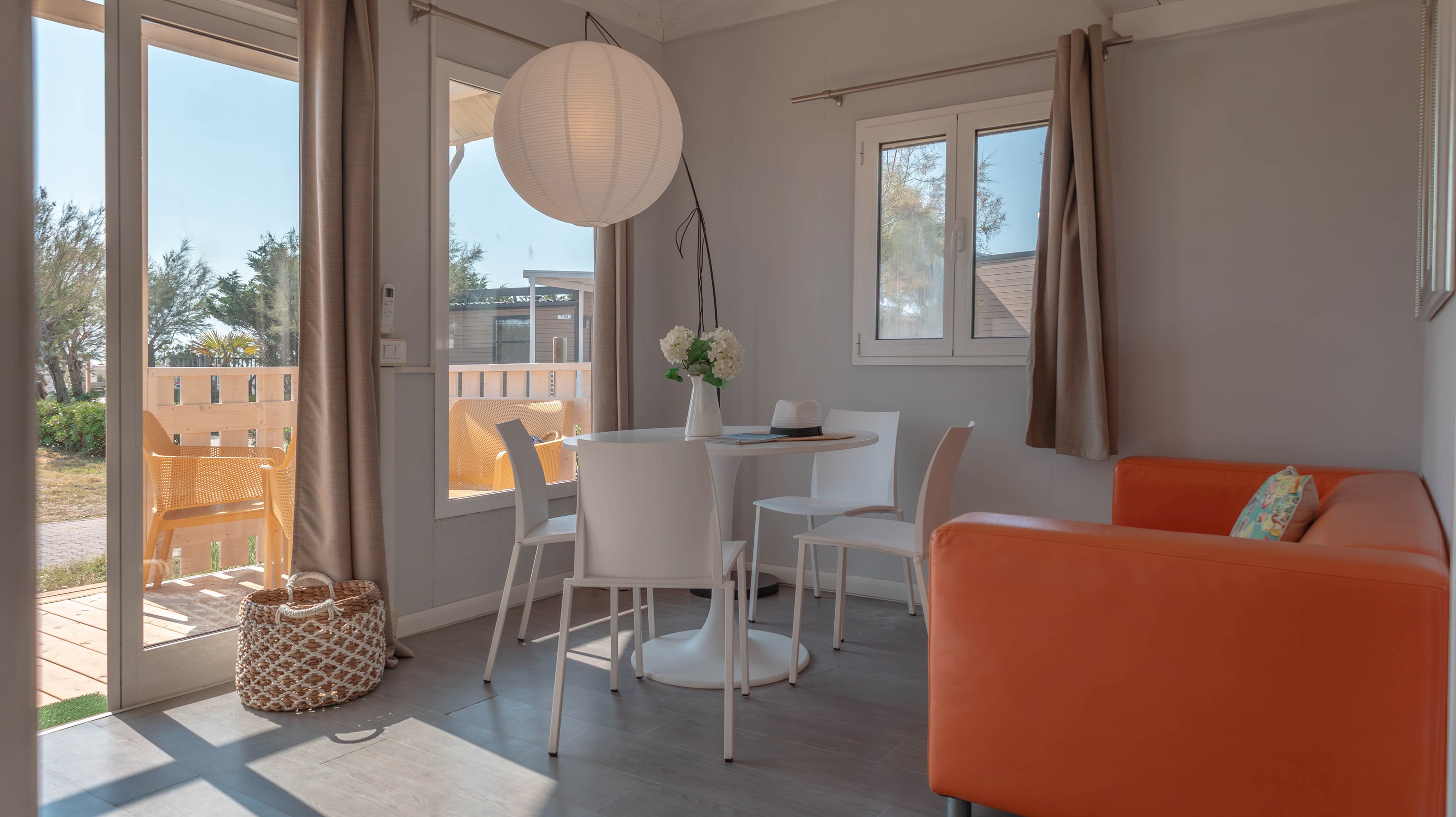 Le Mobile Home Giudecca pet friendly sono perfette per coppie e famiglie che desiderano un soggiorno tranquillo in compagnia dei loro amici a quattro zampe. Spaziose e molto moderne, dai colori naturali e design elegante: godono di soggiorno con cucina attrezzata. Tre camere con 5 letti totali (1 matrimoniale e 4 singoli) e un bagno con sanitari moderni e doccia. La veranda in legno offre uno spazio ideale per rilassarsi a contatto con la natura con comode sedie. Nel prezzo sono inclusi i consumi di acqua, luce e gas, aria condizionata 1 ombrellone e 2 lettini nella nostra spiaggia privata nell’area dog, 1 posto auto.