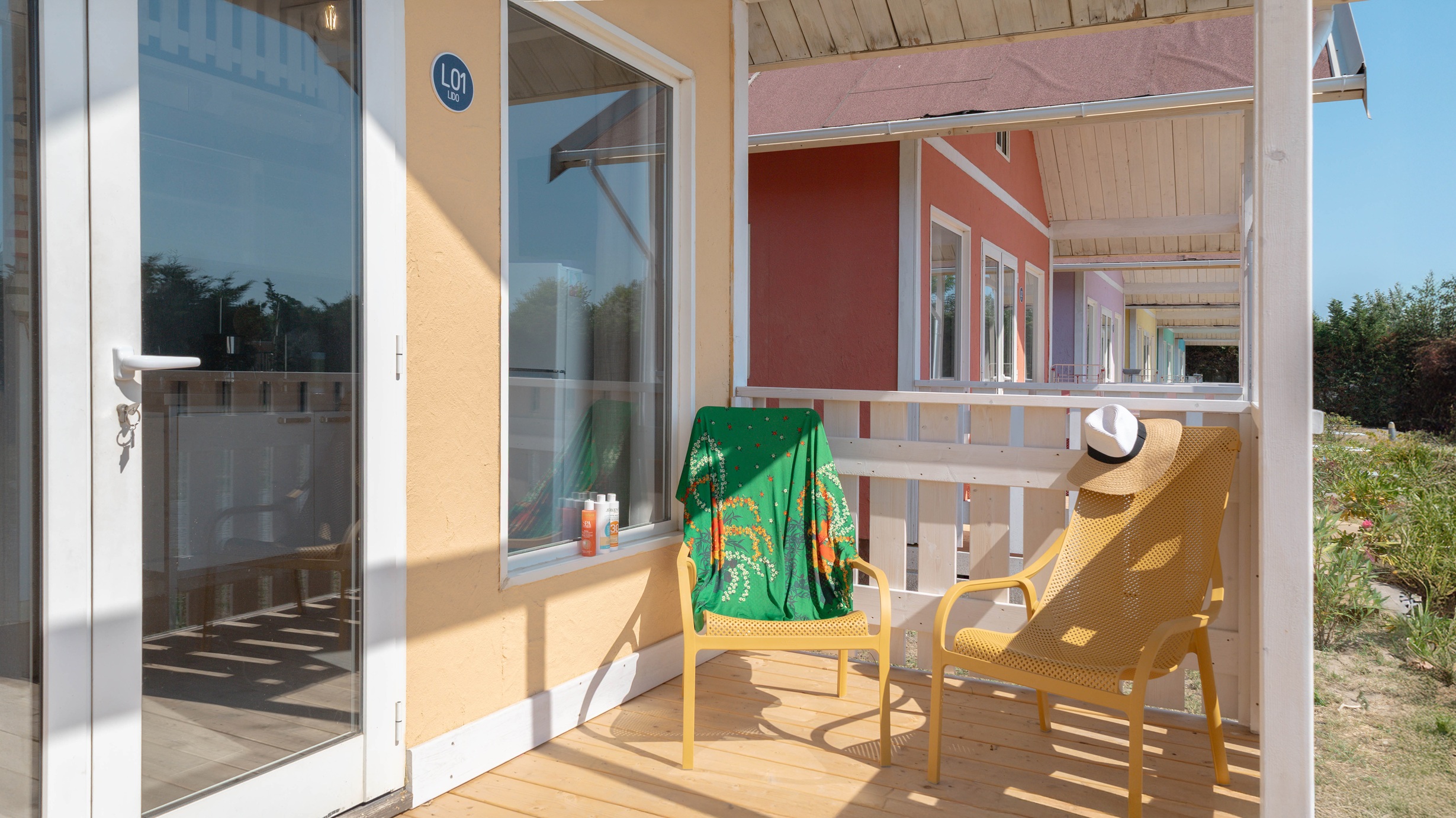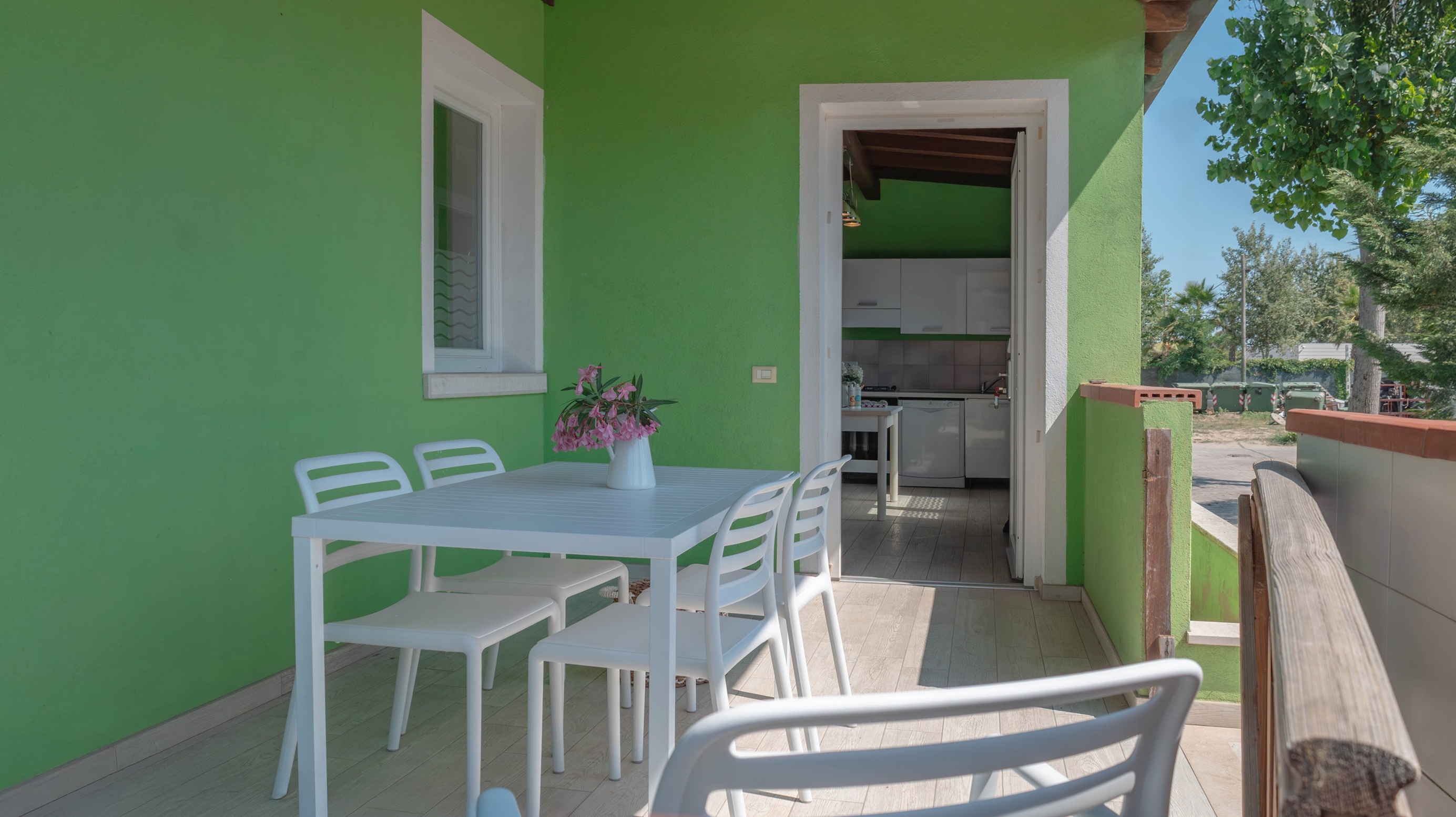 privata, accesso alla piscina e 1 posto auto. Su richiesta e in base a disponibilità: cancello per chiudere la veranda, culla, spondina da letto e