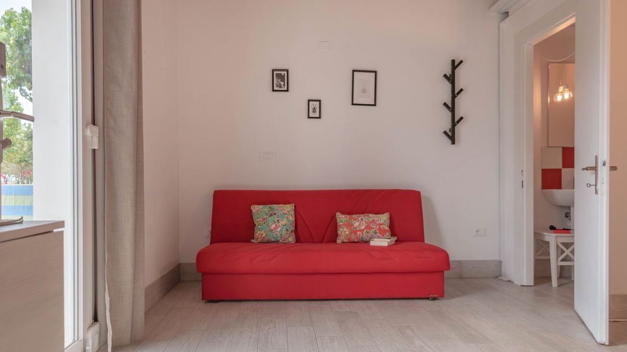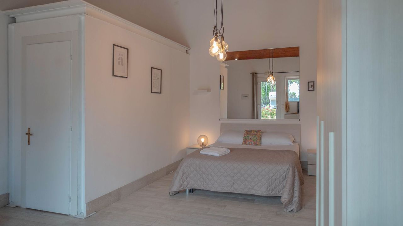 Ampissima camera da letto, elegantemente arredata con tonalità neutre per un'atmosfera rilassante e raffinata. Include una deliziosa zona relax con divano per i tuoi momenti di tranquillità, un terrazzino esterno arredato per goderti l'aria aperta e un bagno privato che completa il comfort della tua esperienza. Nel prezzo sono inclusi i consumi di acqua, luce e gas, lenzuola, aria condizionata , 1 ombrellone e 2 lettini nella nostra spiaggia privata, accesso alla piscina e 1 posto auto. Su richiesta e in base a disponibilità: culla, spondina da letto e seggiolone.