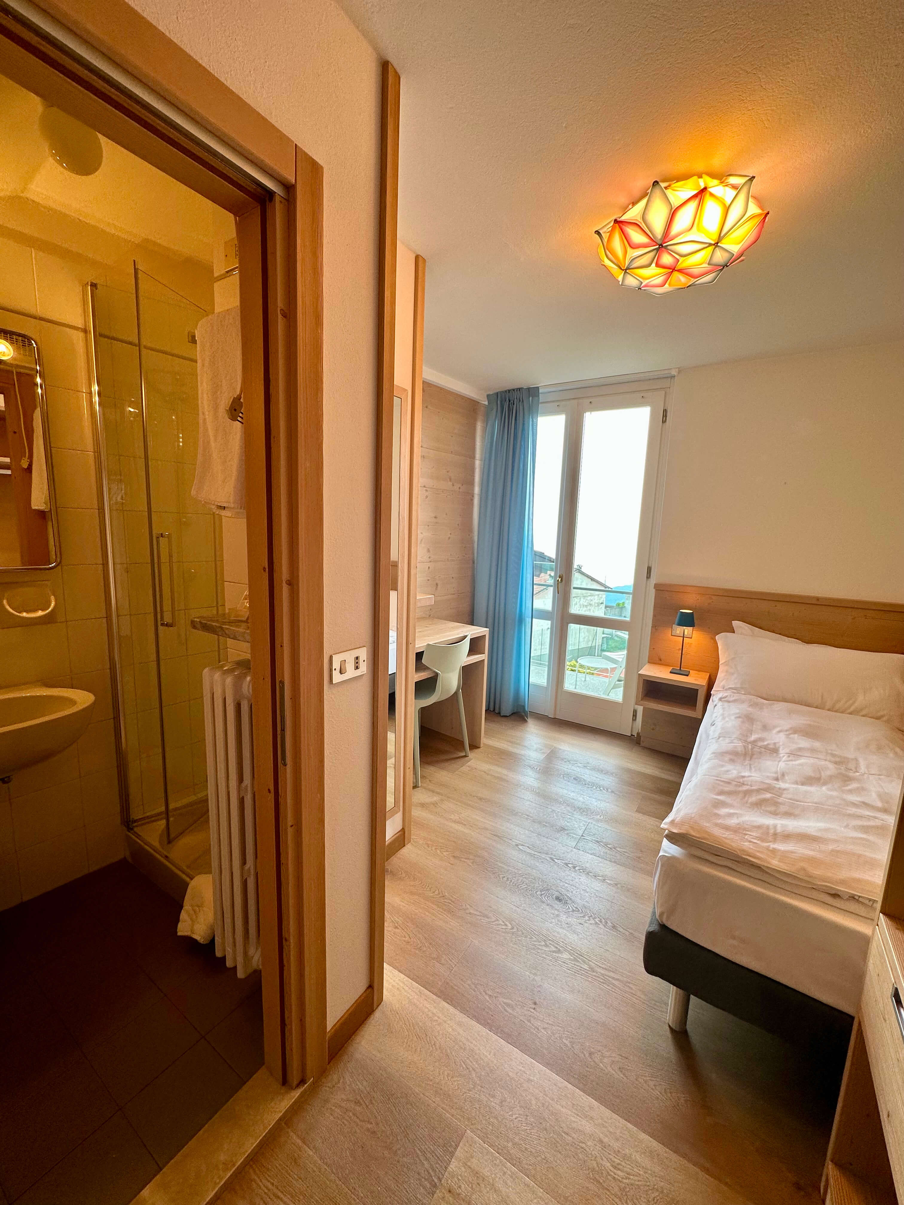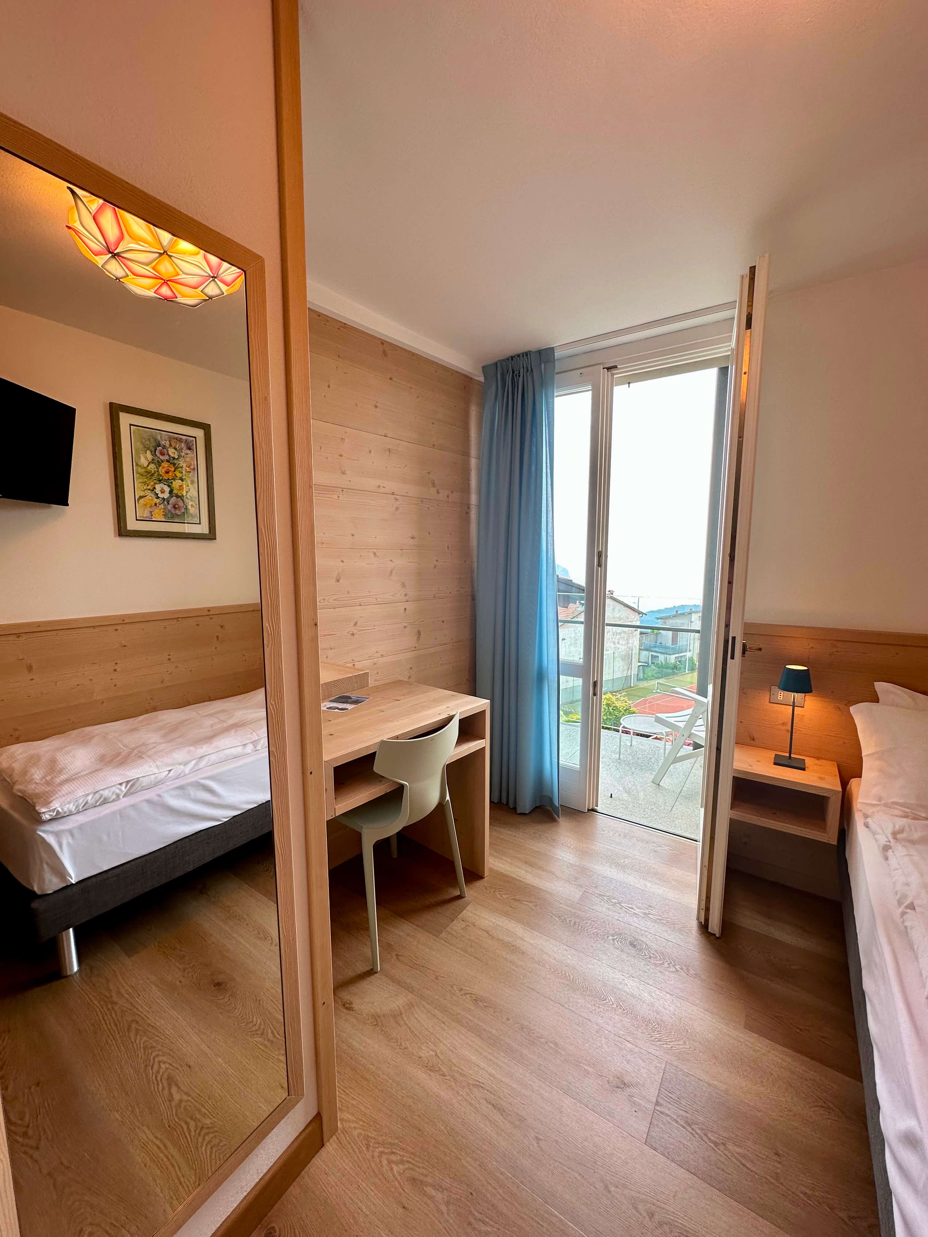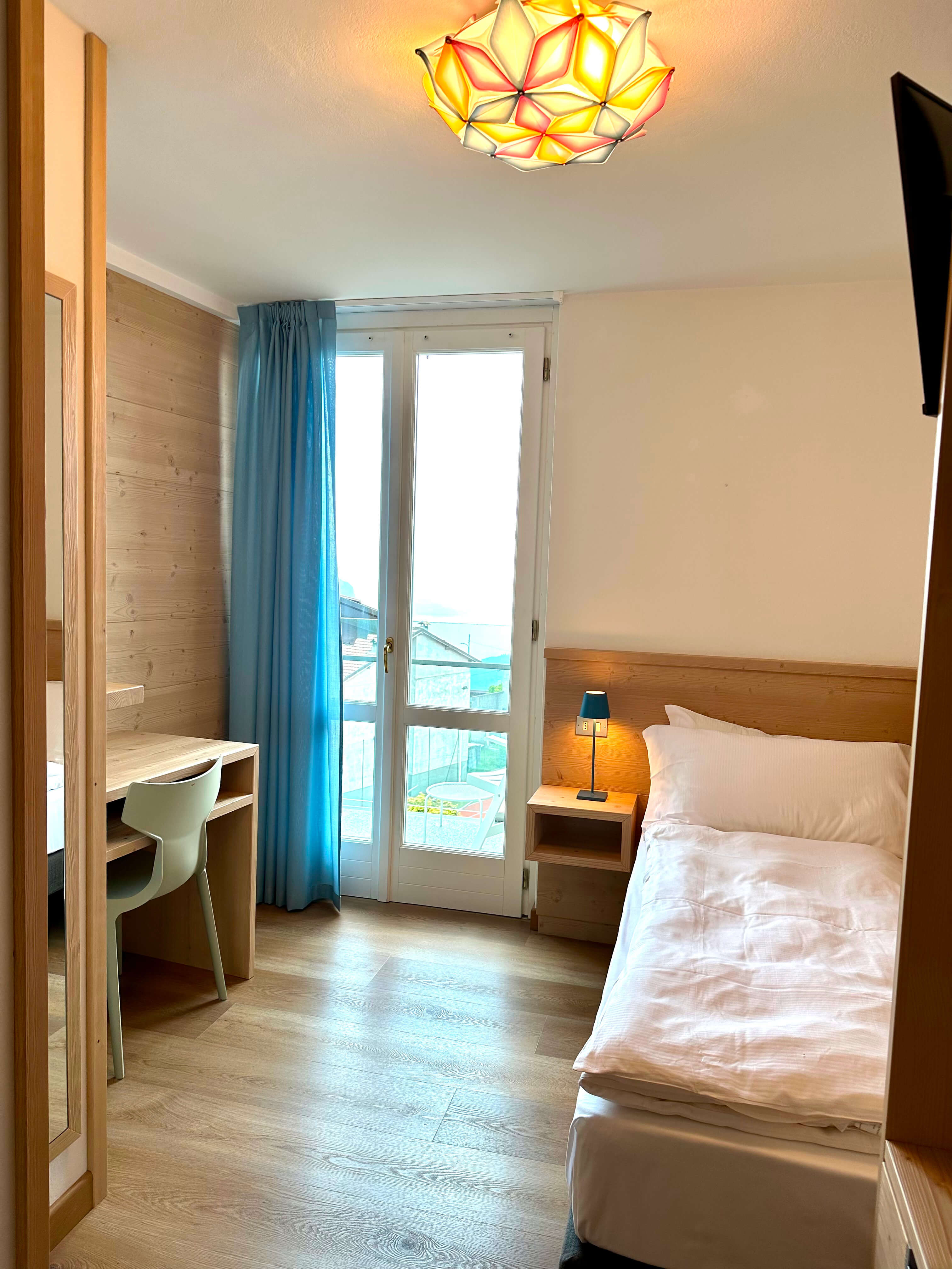 La camera standard è una camera doppia non dotata di balcone e rivolta verso il centro del paese di Bossico.