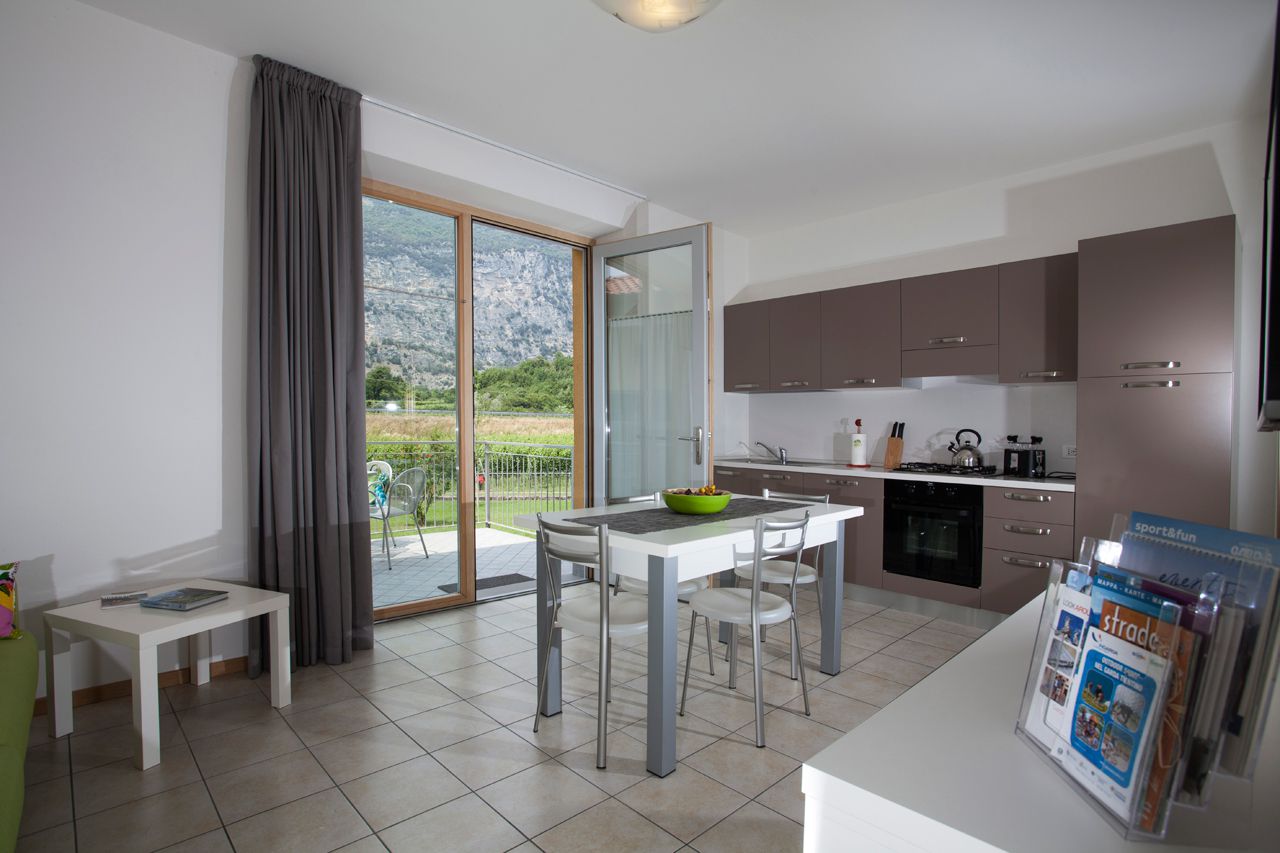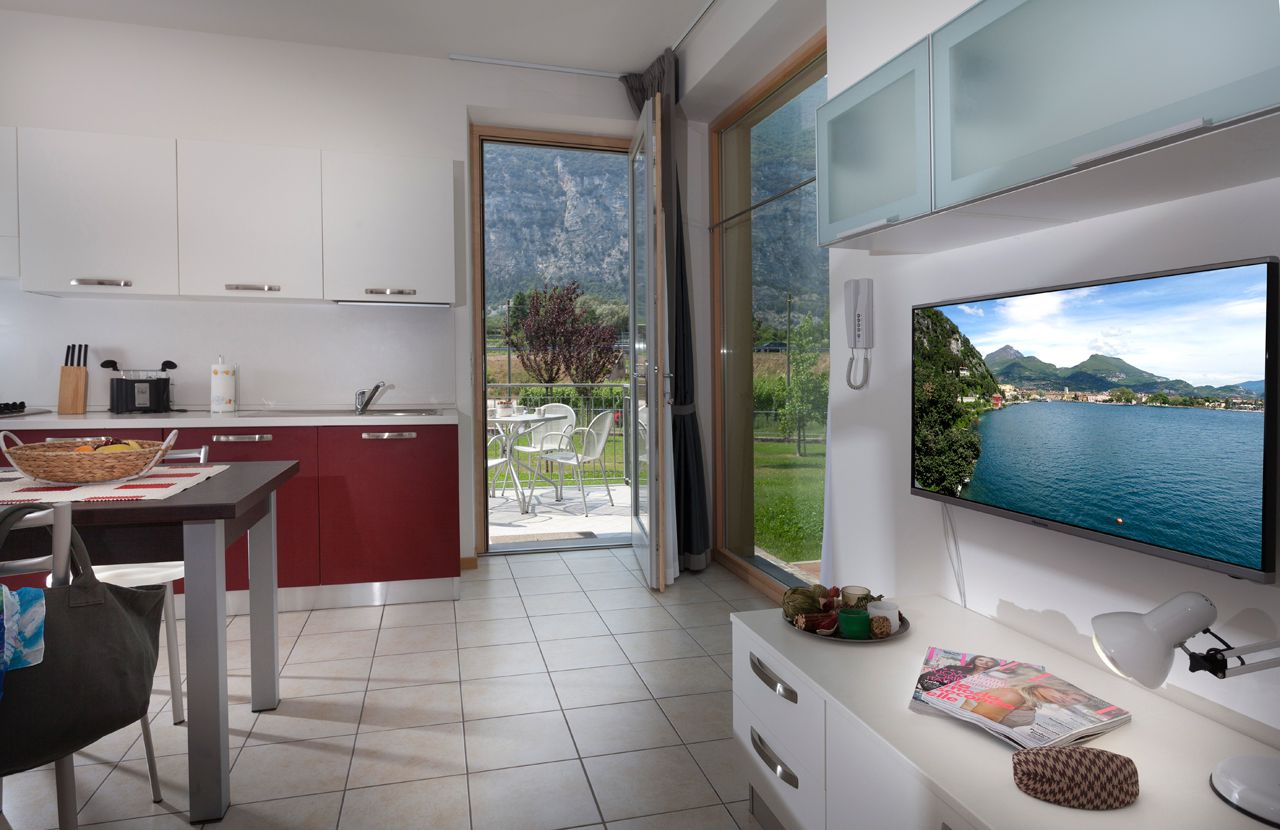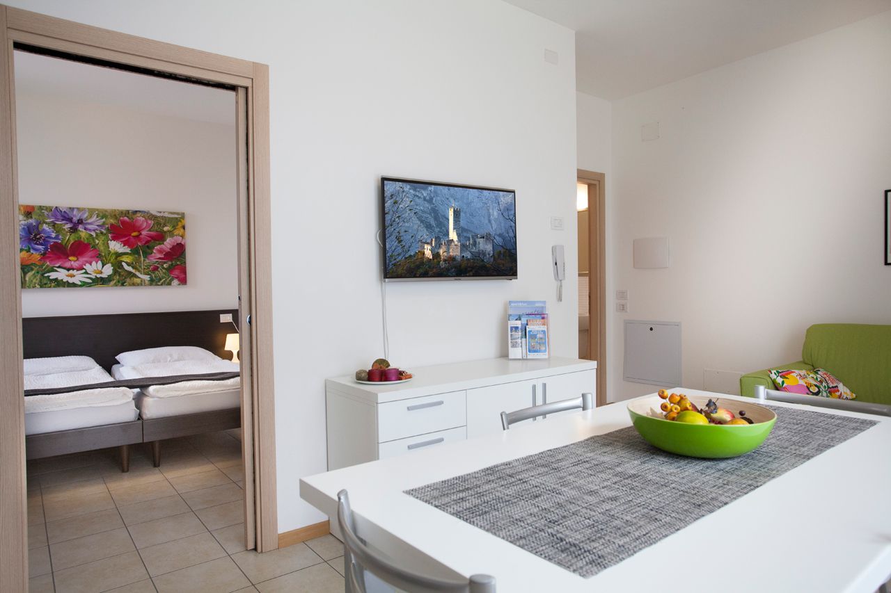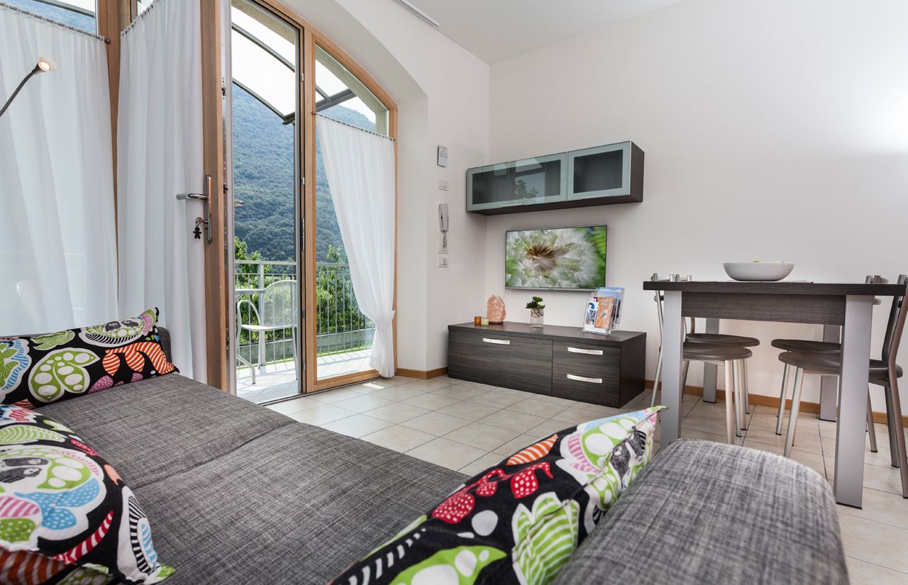 L' appartamento è composto da un soggiorno con angolo cottura, divano letto, camera da letto, bagno con doccia e ripostiglio.