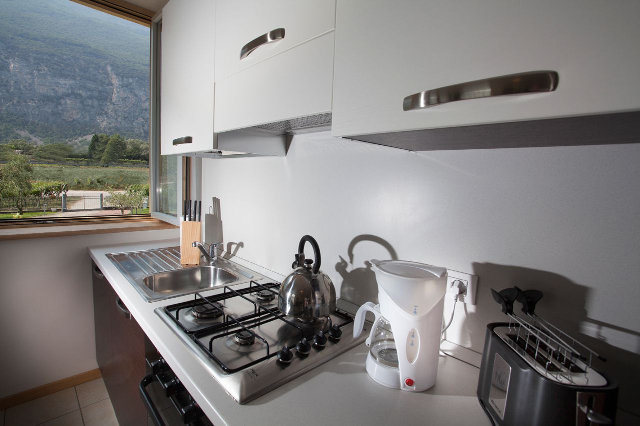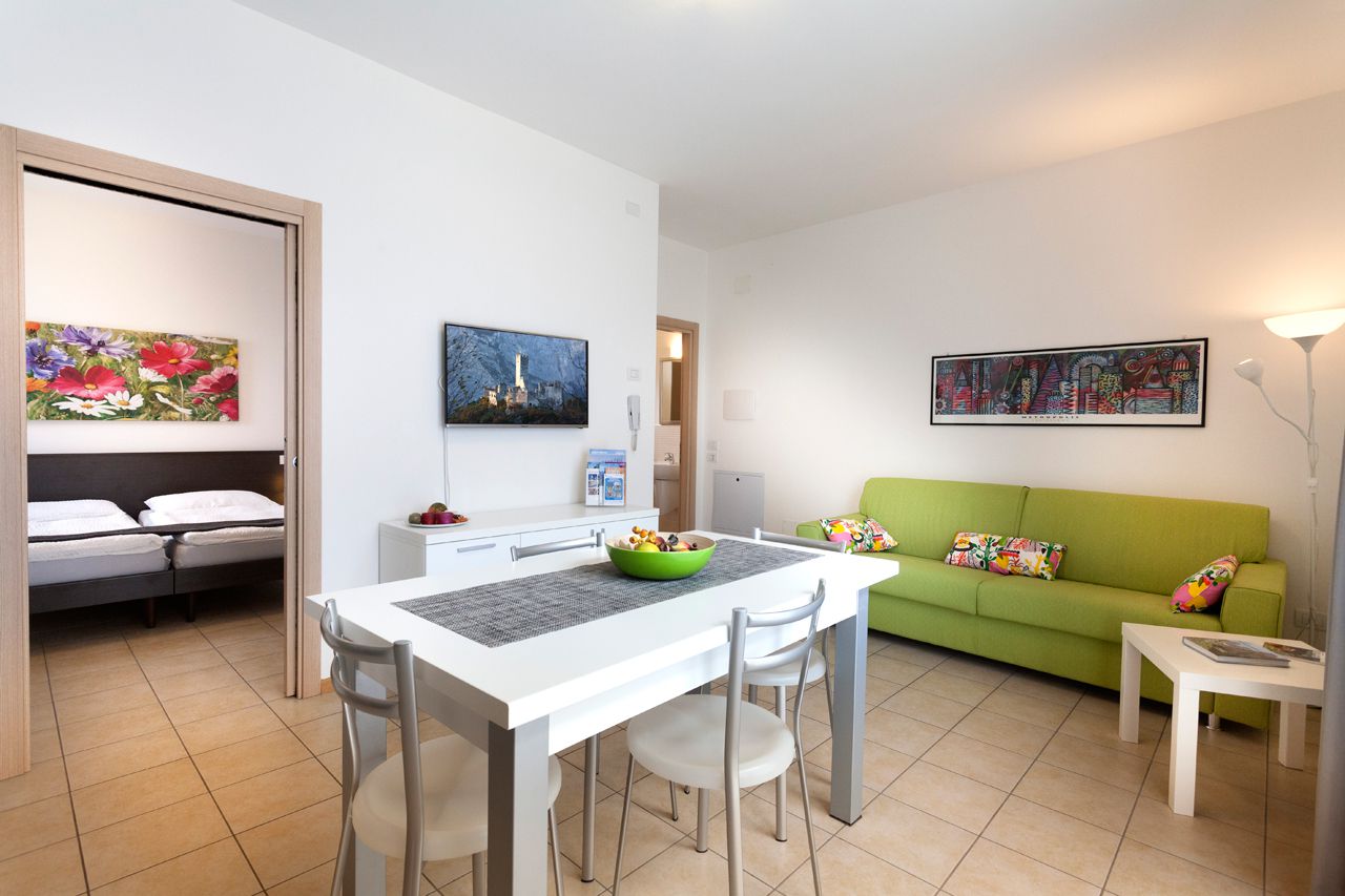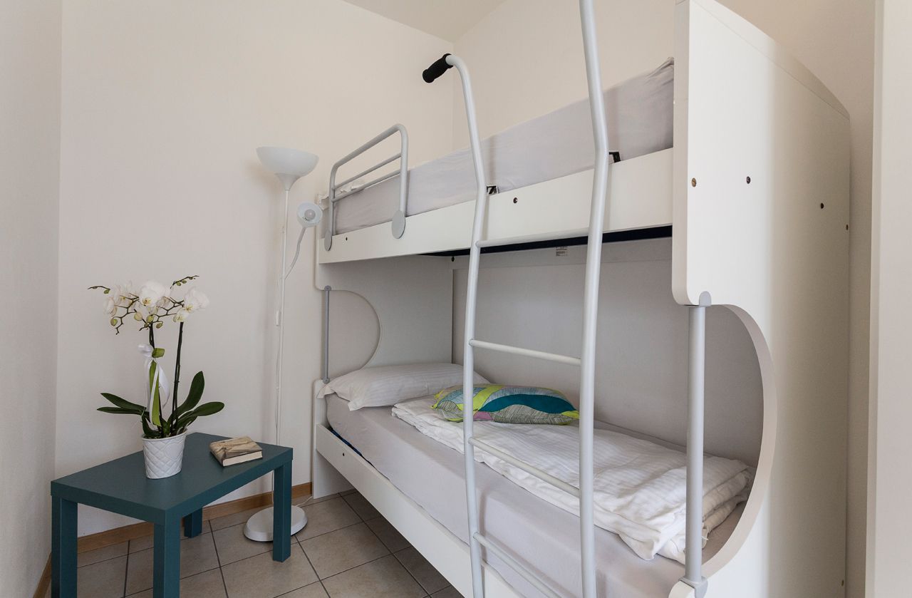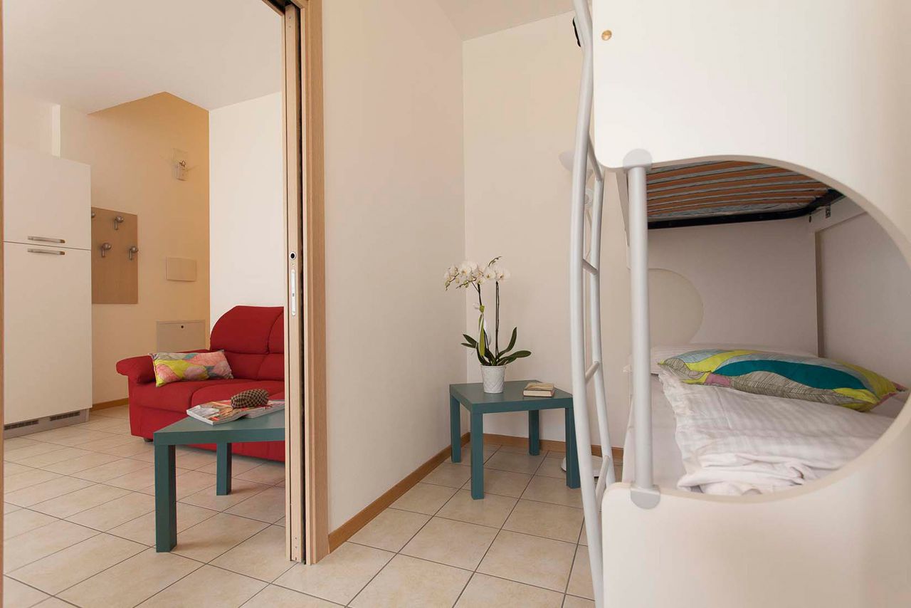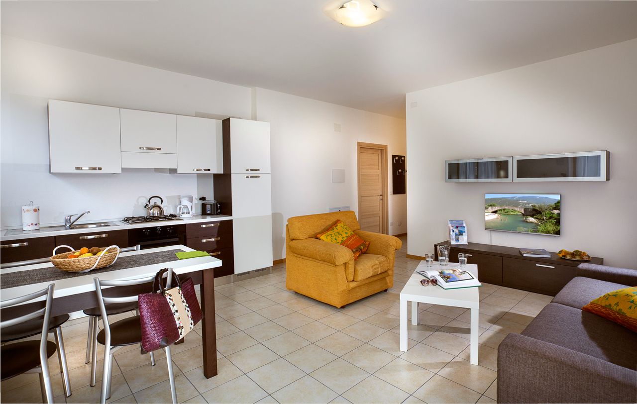 L' appartamento è composto da un soggiorno con angolo cottura, divano letto, camera da letto, bagno con doccia e ripostiglio.