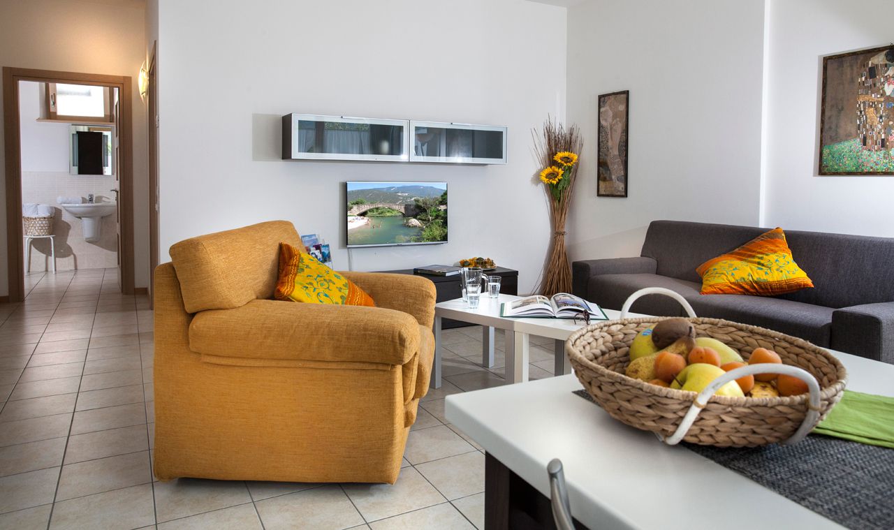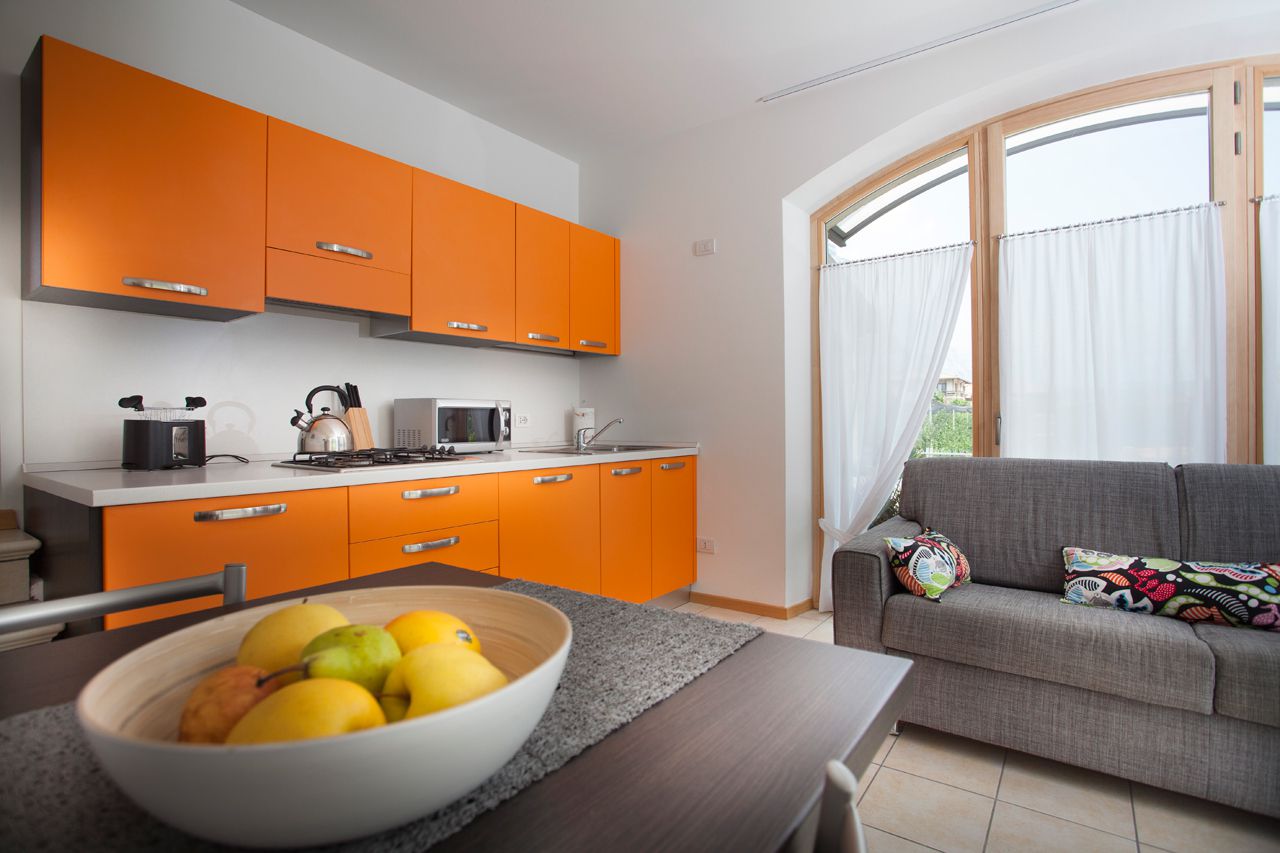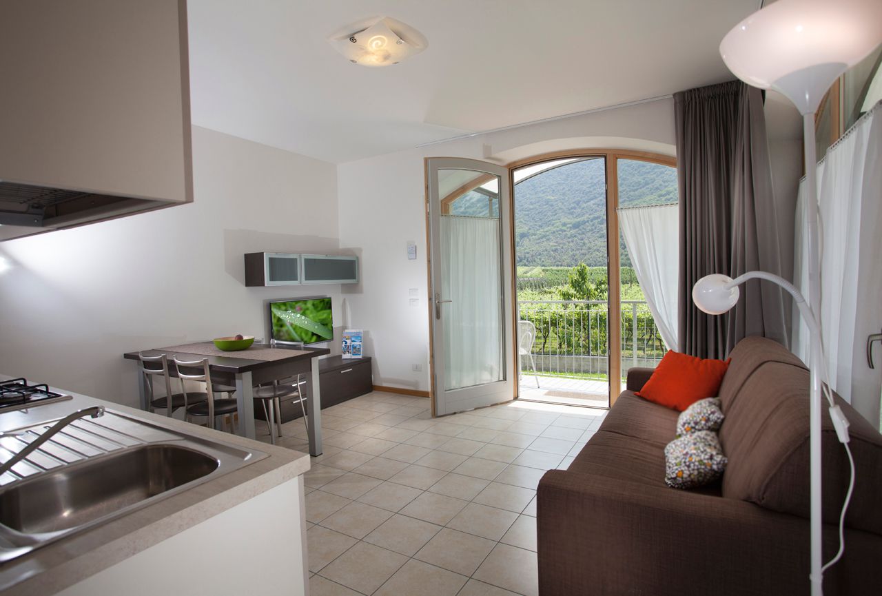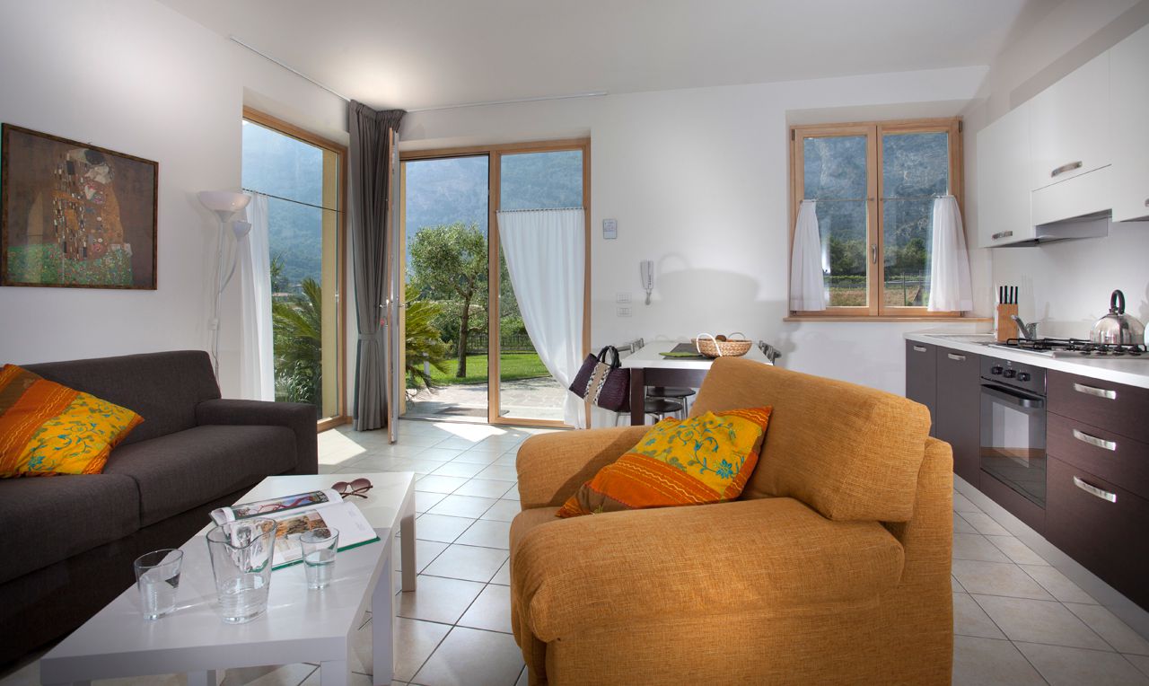L' appartamento è composto da un soggiorno con angolo cottura, divano letto, camera da letto e bagno. Accesso indipendente dal giardino.